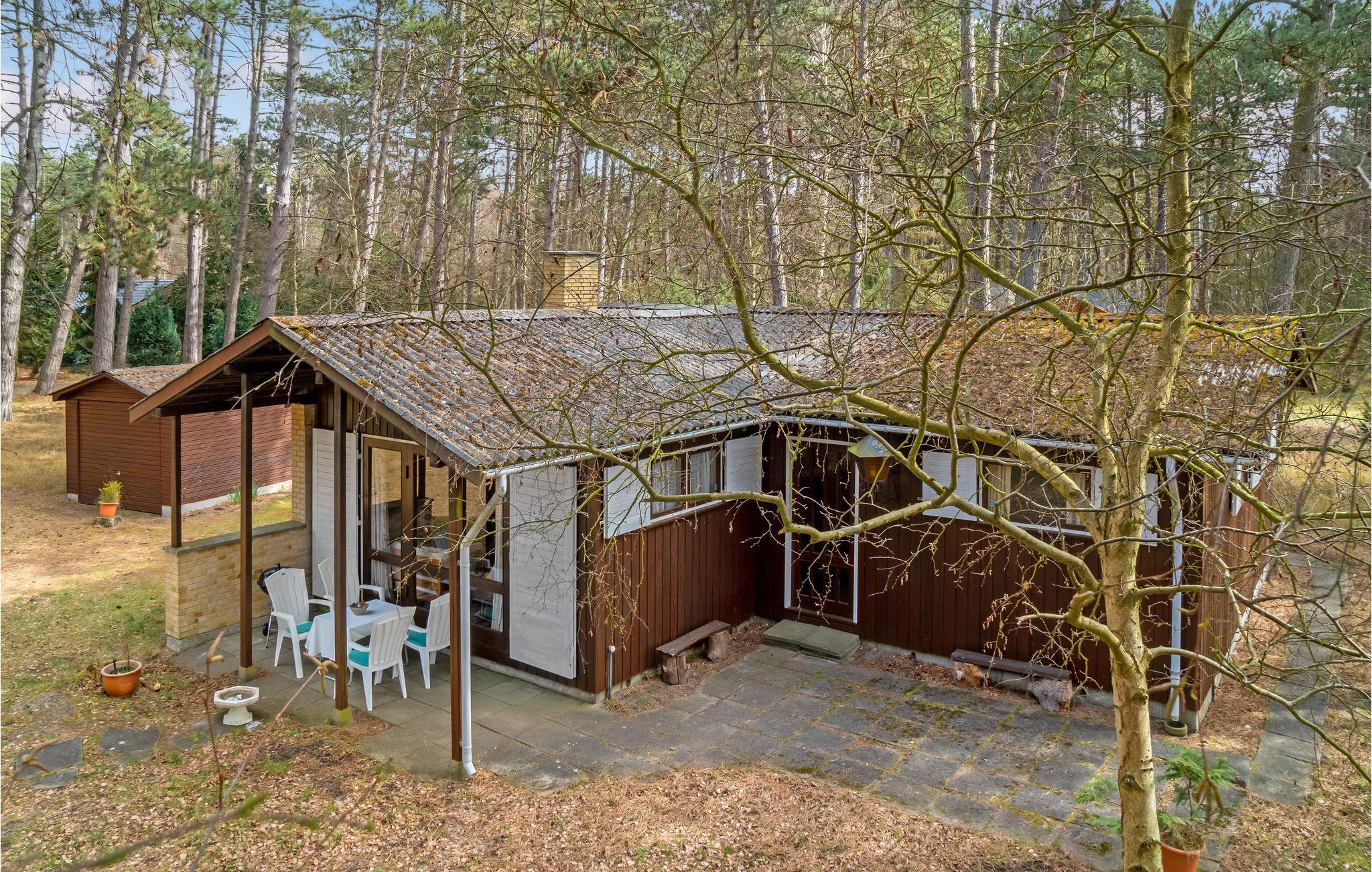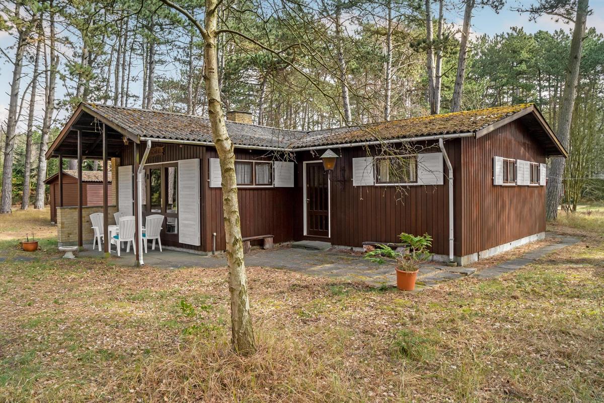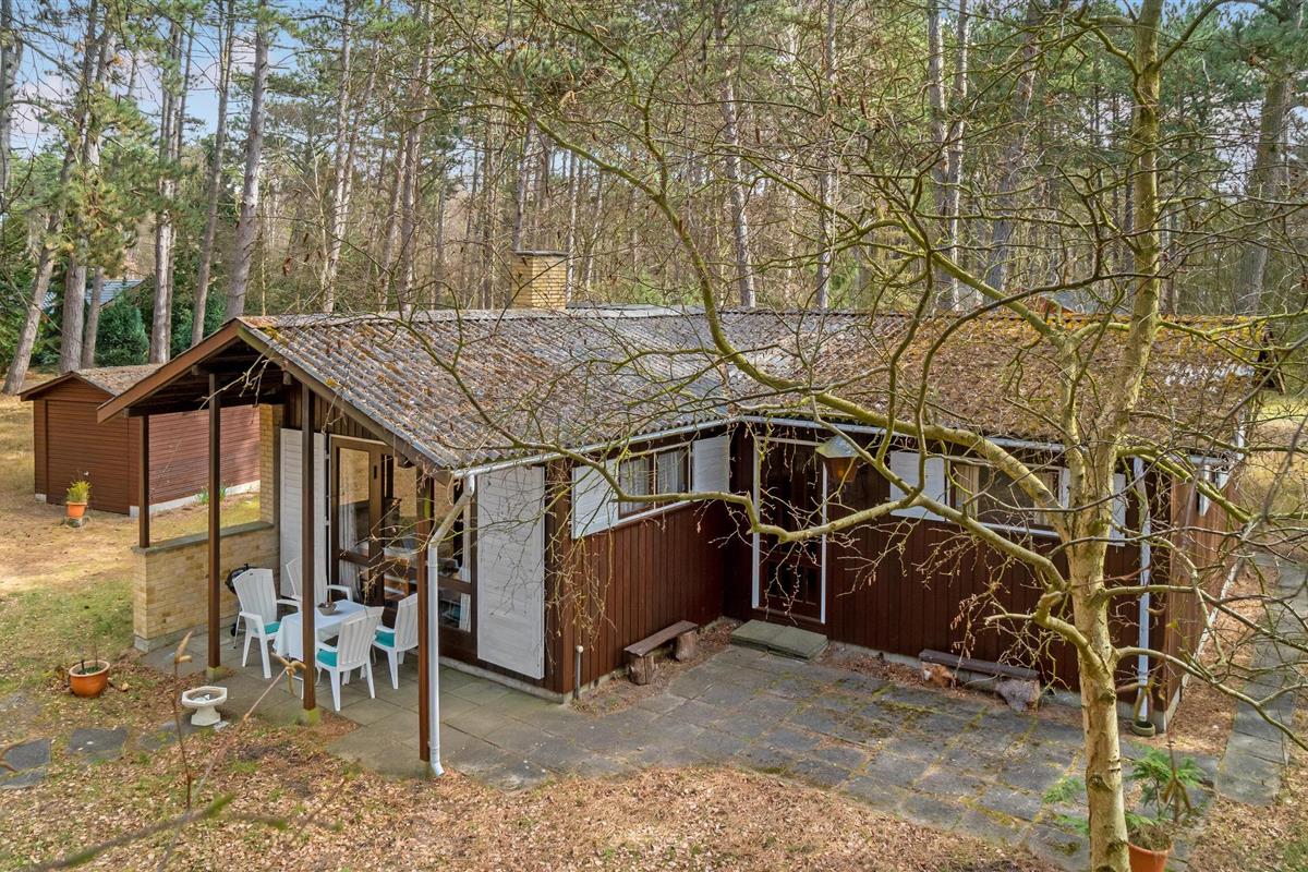 Niet ver van Bjerge Sydstrand verwelkomt dit praktische vakantiehuis u op een bebost perceel.