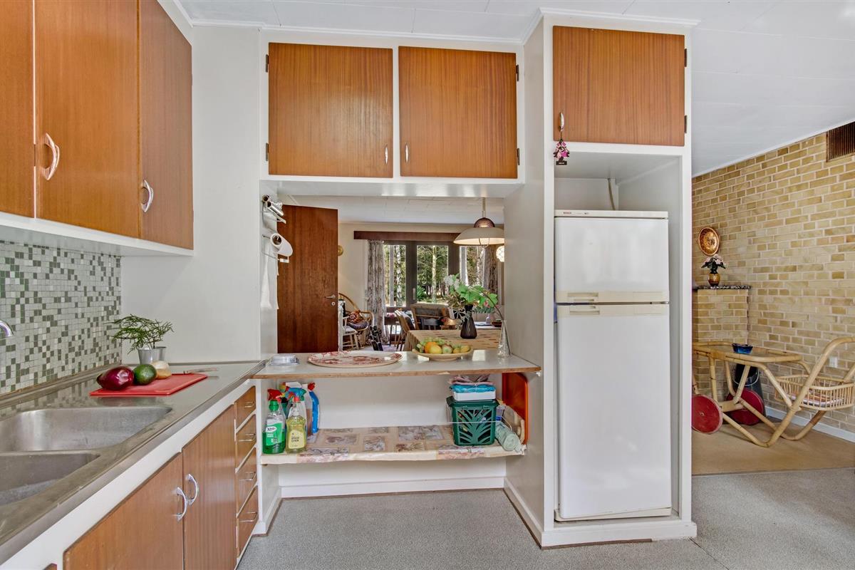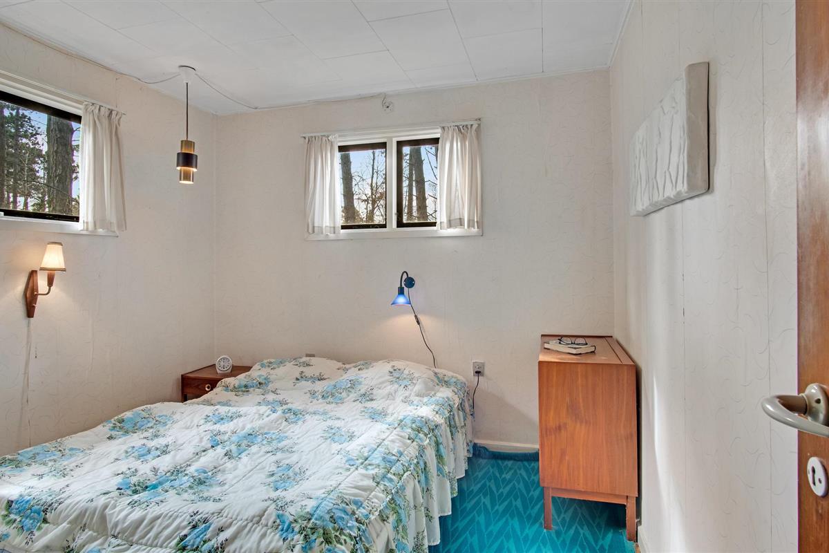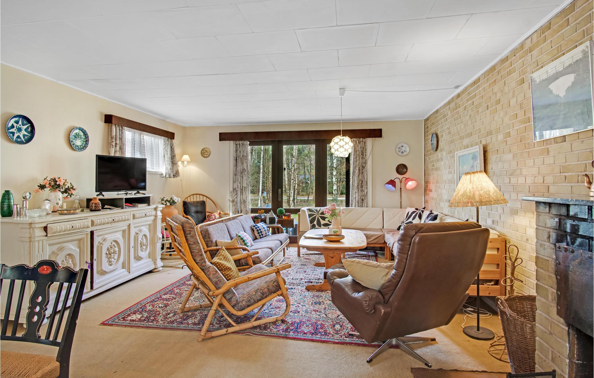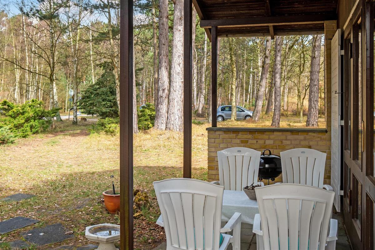 Niet ver van Bjerge Sydstrand verwelkomt dit praktische vakantiehuis u op een bebost perceel.