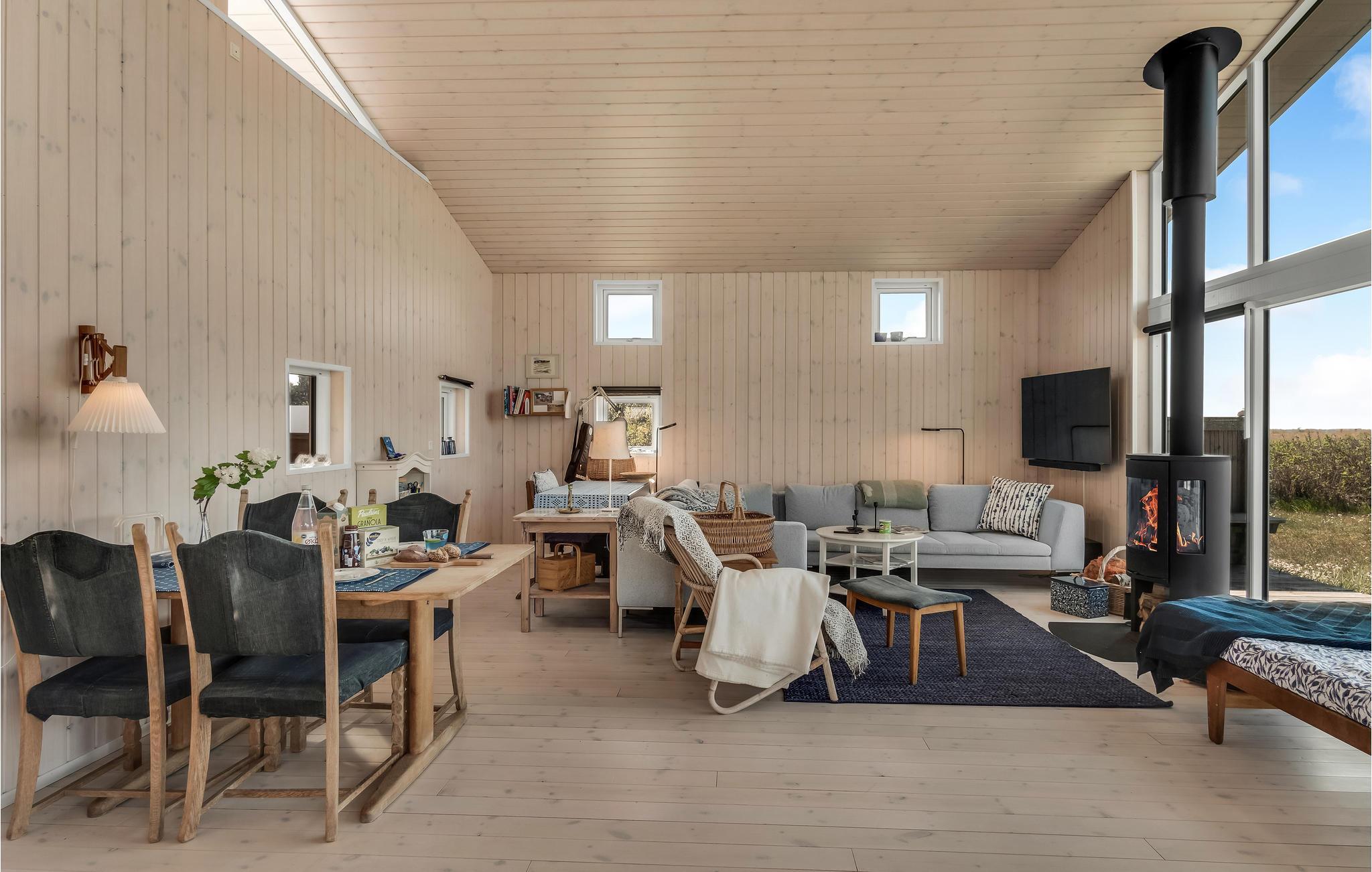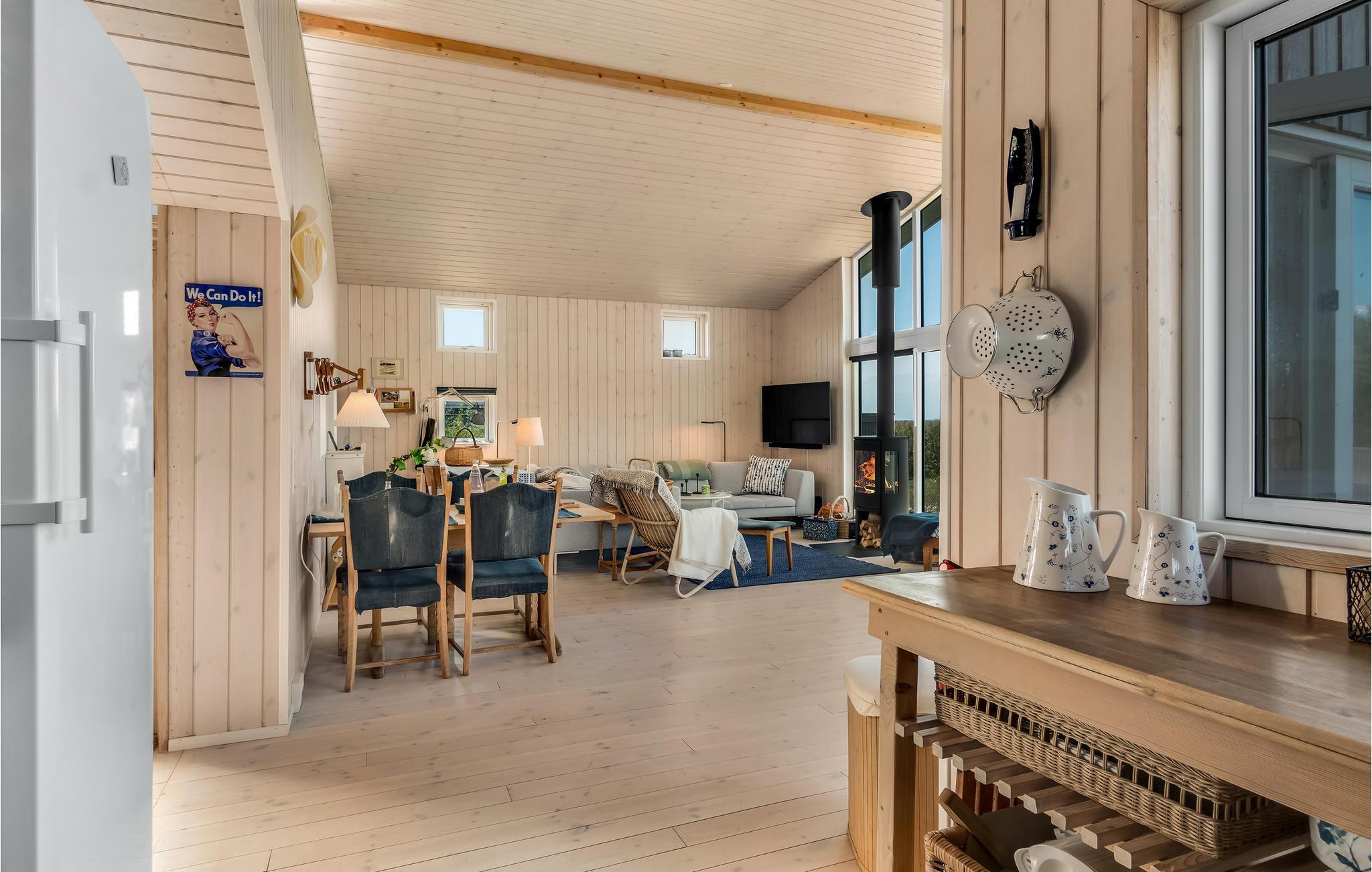 Op een prachtige locatie aan het water, verwelkomt dit charmante en huiselijke vakantiehuis u in Bjerge Sydstrand.