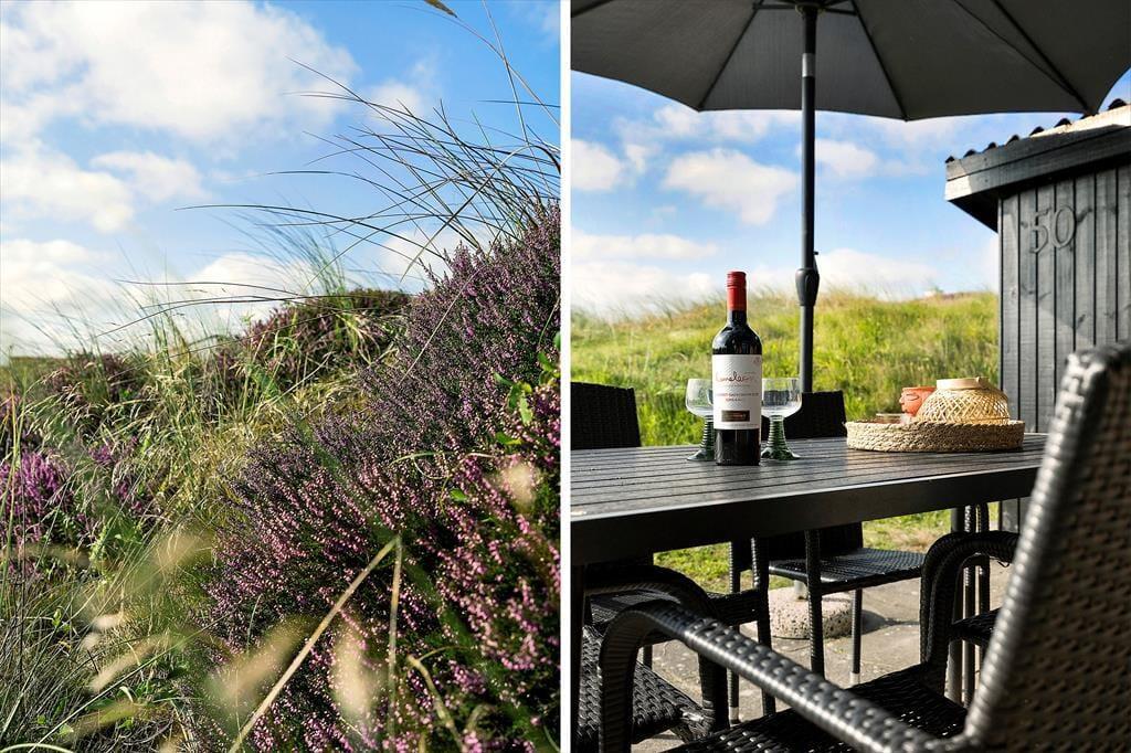 Sobald die Sommersonne vom Himmel lacht, wird es Sie hinaus auf die sonnenverwöhnte Terrasse ziehen. Diese ist nach Süden ausgerichtet, teilweise überdacht und gegen den meist vorherrschenden Westwind abgeschirmt. Die kleinen Urlauber dürfen sich auf eine Sandkiste freuen. Sie wohnen auf einem großen Naturgrundstück, das Ihre entspannten Stunden im Freien mit einem reizvollen Blick auf lila blühende Heide und anderen typischen Dünenbewuchs untermalt.
