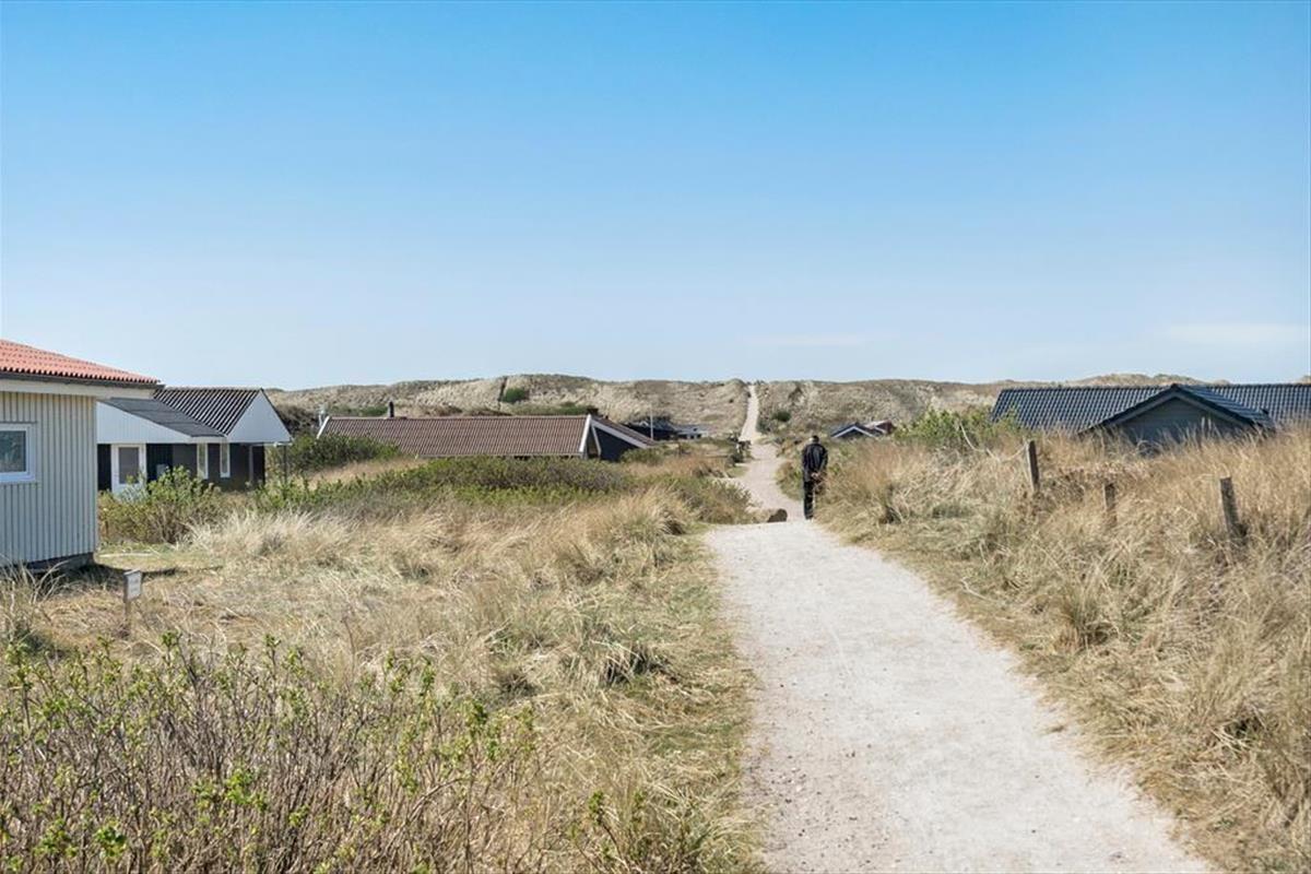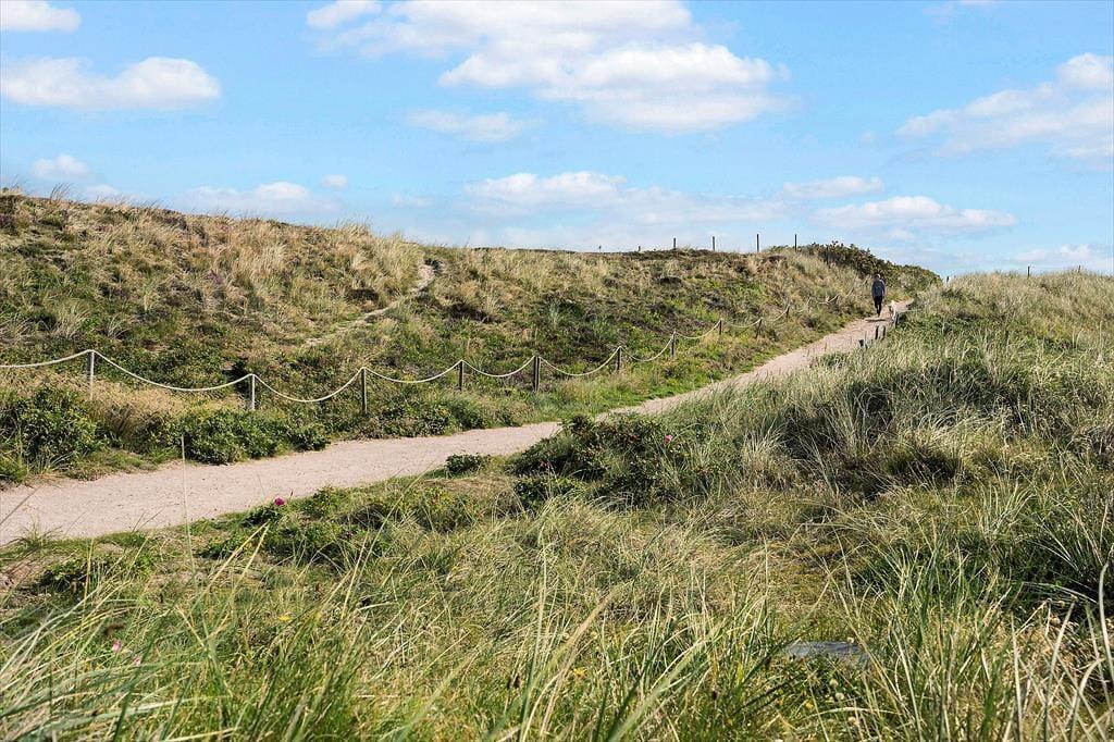 Sie wohnen am Ende einer kleinen Sackgasse, nur 500 Meter vom Bjerregård Strand entfernt. Nachdem Sie die Dünen überquert haben, stehen Sie bereits am Strand vor der mächtigen Nordsee. Hier können Sie nach Herzenslust baden, Ihren Drachen in ungeahnte Höhen aufsteigen lassen, ausgedehnte Sonnenbäder genießen oder zu langen Strandspaziergängen aufbrechen. In Bjerregård befindet sich ein kleines Lebensmittelgeschäft. Größere Einkäufe erledigen Sie im nordwärts gelegenen, beliebten Fischereihafenort Hvide Sande, den Sie nach einer schönen Fahrt über die Nehrung Holmsland Klit erreichen. Auf Ihrem Weg nach Hvide Sande passieren Sie das Freilichtmuseum Abelines Gård und die guten Surfspots am Ufer des Ringkøbing Fjords.