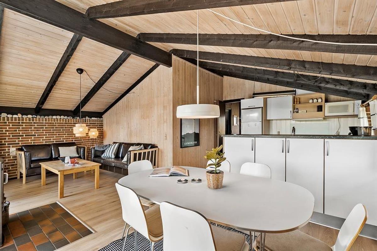 Das 72 m² große Urlaubsdomizil ruht seit dem Jahr 1980 inmitten der Dünenlandschaft Bjerregårds. Wohnraum und Küche sind offen miteinander kombiniert und laden zu vielen gemütlichen Stunden im Kreise Ihrer Lieben ein. Während Sie es sich abends auf den Sofas gemütlich machen, sorgt der Kaminofen für Wärme und typisch dänische Ferienhausatmosphäre. Unterhaltung und Abwechslung verspricht der im Wohnraum platzierte Fernseher. Am gegenüberliegenden Ende des Hauses erwarten Sie drei Schlafzimmer mit insgesamt fünf Schlafplätzen. Ein Badezimmer mit einer dazugehörigen Sauna ist ebenfalls vorhanden. Neben der Eingangstür steht Ihnen ein kleiner Waschraum mit einer Waschmaschine und einem Wäschetrockner zur Verfügung. Das Haus wurde in den letzten Jahren teilweise renoviert, mit einem neuen Boden, einer neuen Küche und neuen Möbeln, darunter neue Betten und neue Sofas.