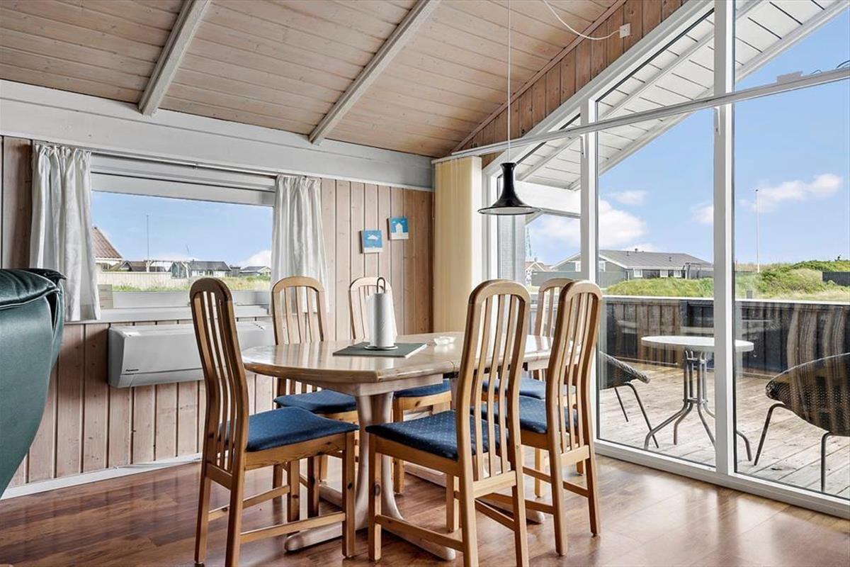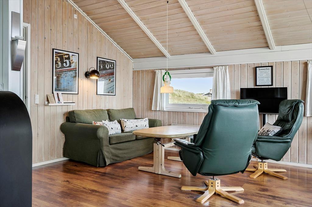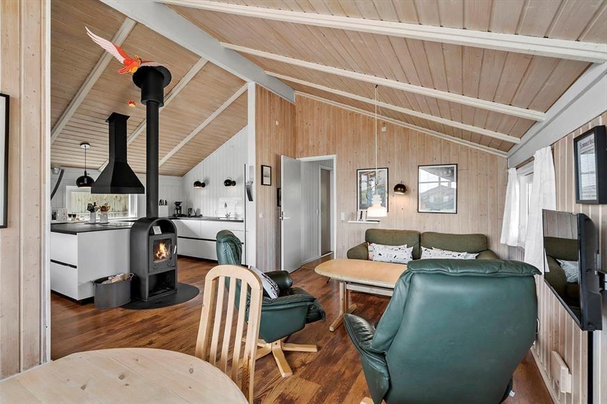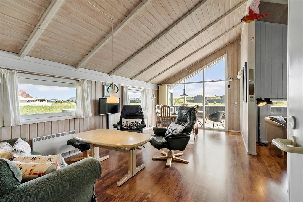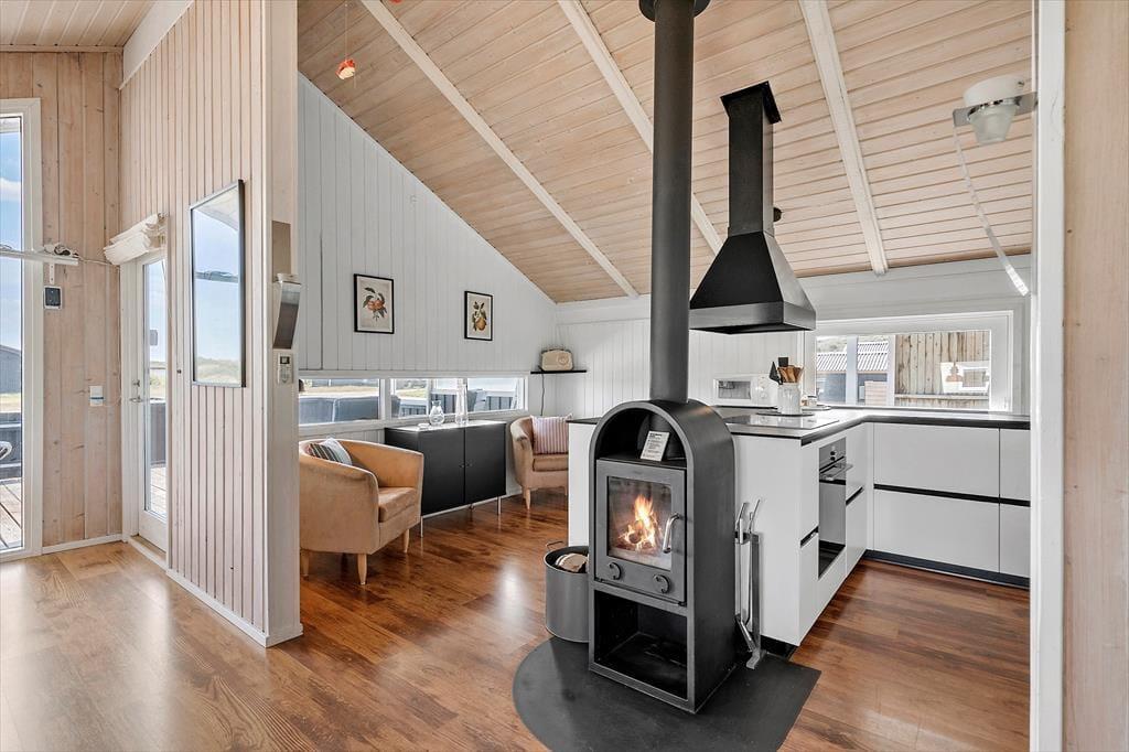 Dieses schön renovierte Ferienhaus liegt so nah am Bjerregård Strand, dass Sie gerade einmal 200 Meter zurücklegen müssen, bis Sie auf der ersten Dünenreihe stehen und hinunter auf die mächtige Nordsee blicken. Sie genießen daher beste Möglichkeiten für erholsame Urlaubstage an der Wasserkante. Alternativ laden der behaglich wärmende Kaminofen und die sonnenverwöhnte Holzterrasse zu stimmungsvollen Stunden im Familienkreis ein.