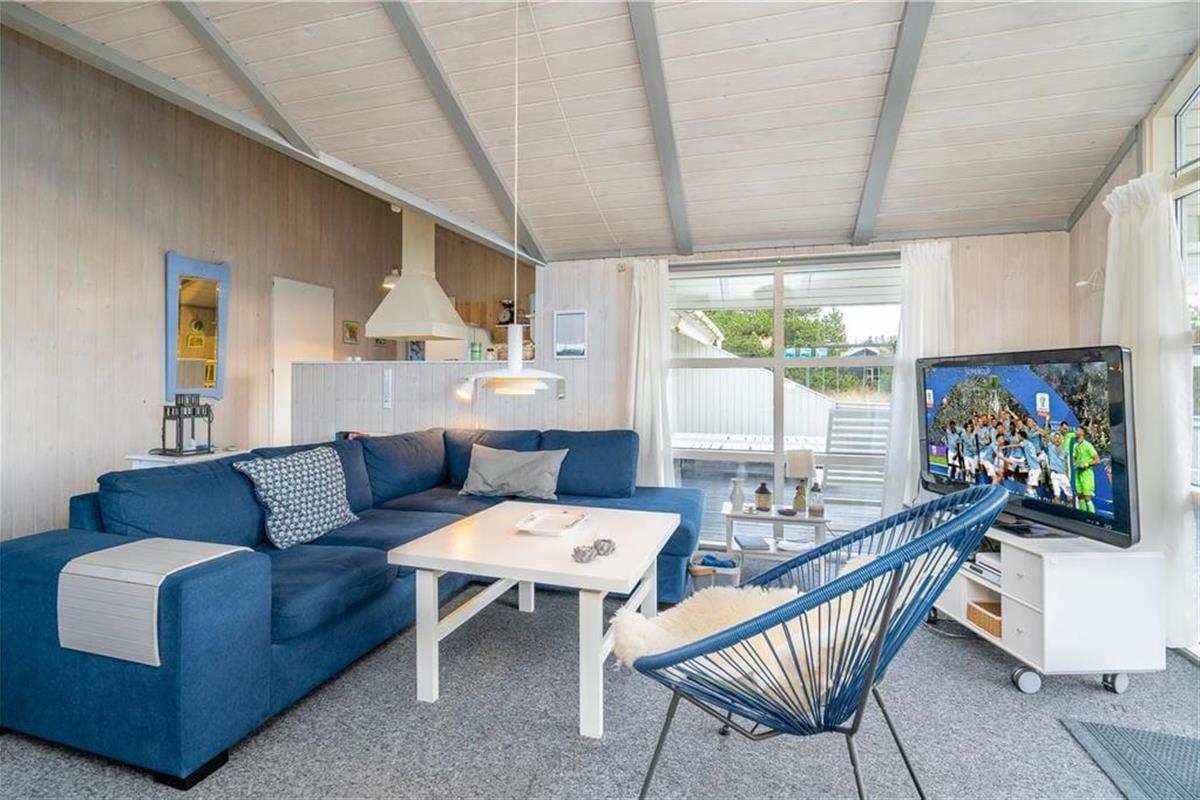 Das Innere dieses 92 m² großen Urlaubsdomizils beherbergt bis zu fünf Personen. Ihnen stehen drei Schlafräume zur Verfügung. Im Laufe des Tages bildet der große Aufenthaltsraum den sozialen Sammelpunkt aller Mitreisenden. Die gut ausgestattete Küche ist offen in den Wohnraum integriert. Letzterer umfasst einen Essplatz und ein komfortables Sofa. Für Unterhaltung und Abwechslung sorgt ein Flachbild-TV mit dänischer Streamingmöglichkeit über Chromecast und deutschen Sendern, die über Parabol empfangen werden. Behagliche Wärme und Gemütlichkeit verströmen der Kaminofen und die Wärmepumpe. Mit purer Erholung verwöhnt Sie das Badezimmer, in dem neben einer Waschmaschine, einer Dusche und einer Fußbodenheizung auch ein Whirlpool und eine Sauna platziert sind.