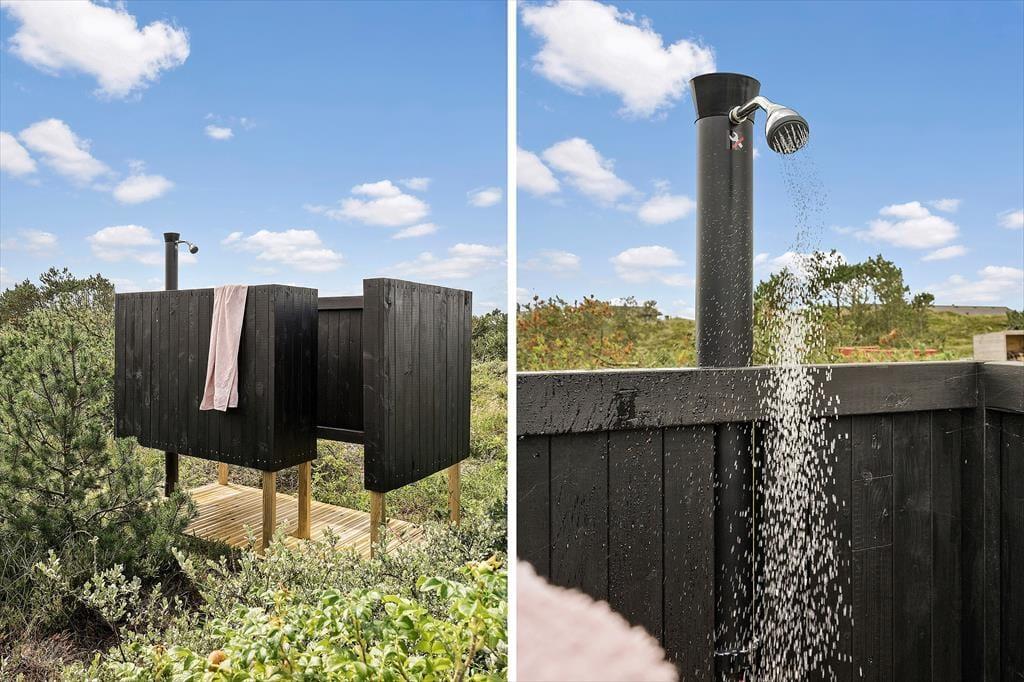 Außerdem gibt es eine Außendusche mit solarbeheiztem Warmwasser (ansonsten kalt) zum Abspülen an einem heißen Tag nach einem Bad im Meer oder nach einem Saunagang.