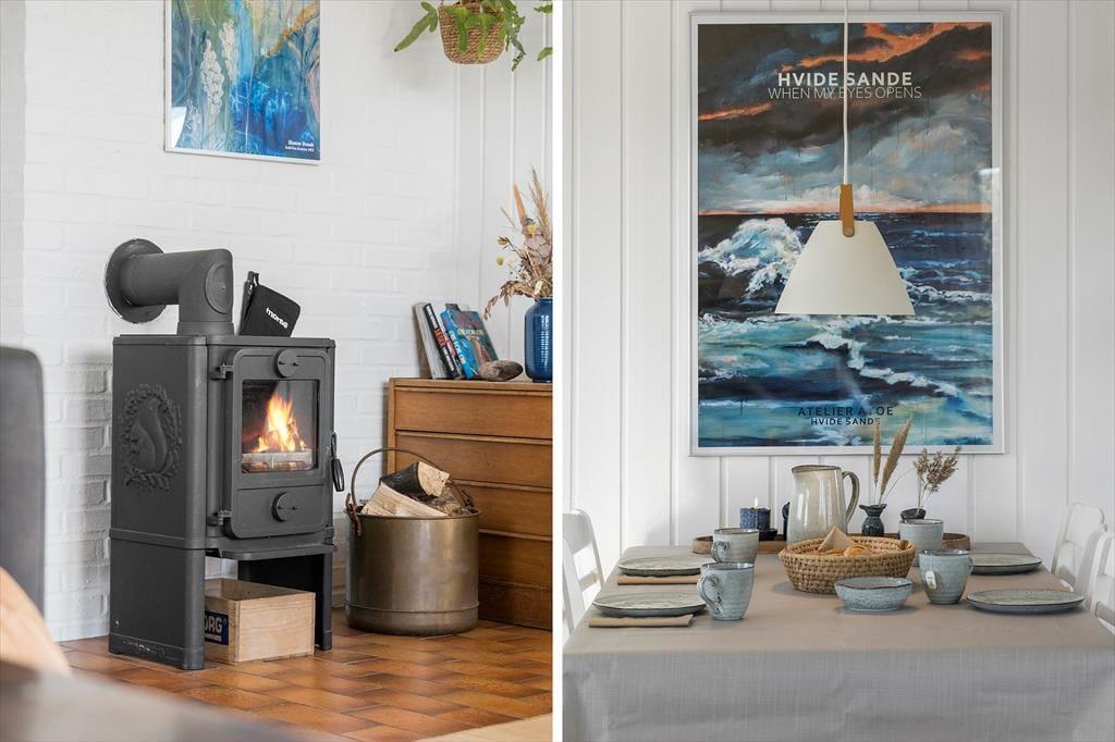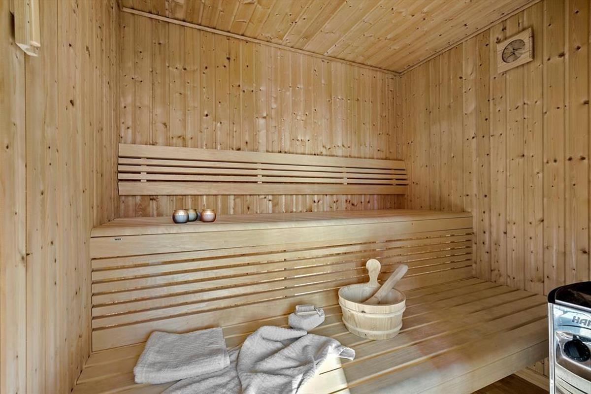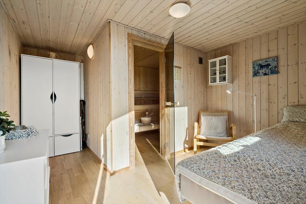 Die Räumlichkeiten des Ferienhauses bieten eine warme und einladende Atmosphäre. Im offenen Wohnbereich, wo Küche und Wohnzimmer miteinander verschmelzen, kannst du gemütliche Momente mit deinen Liebsten verbringen. Der Kamin knistert im Hintergrund und du kannst die Wärme fast spüren, während du dich mit einem guten Buch entspannst oder dir einen Film ansiehst. Die hellen Farben und die einfache Einrichtung sorgen dafür, dass du dich schnell wie zu Hause fühlst – in diesem Ferienhaus - das Platz zum Zurückziehen sowie auch Platz, um gemeinsame Zeit zu verbringen bietet. Für zusätzlichen Luxus kannst du dich mit einem entspannenden Saunaaufenthalt im kleinen Anbau verwöhnen. An kühlen Tagen ist es angenehm mit Wärme für den Körper.