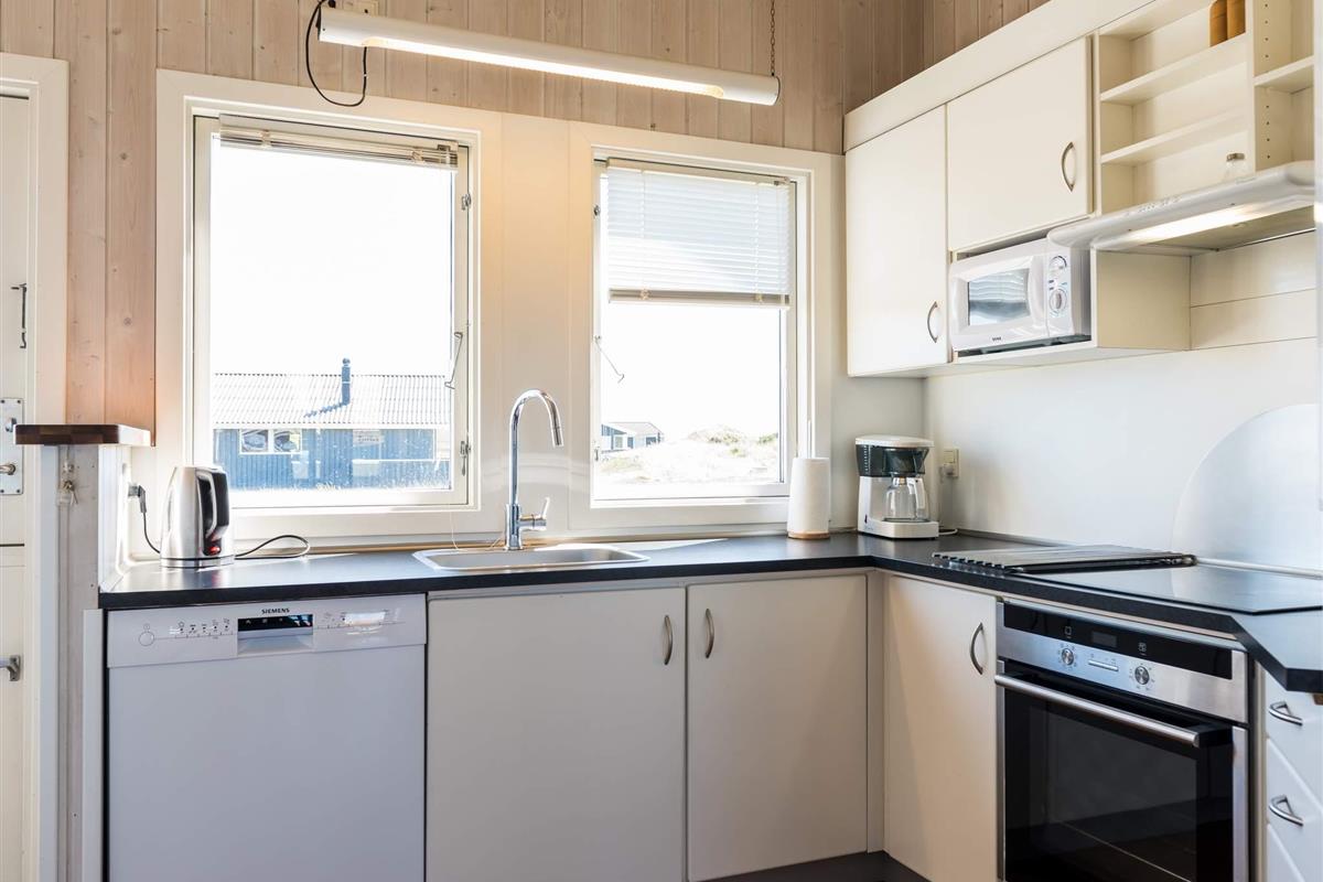 Nicht weit vom schönen Strand in Bjerregård entfernt liegt dieses helle, guterhaltene Ferienhaus mit allen modernen Bequemlichkeiten. Vom Wohnzimmer aus, das in offener Verbindung mit der Küche steht, haben Sie eine schöne Aussicht auf die großen Dünen, die das Ferienhaus vom Strand trennen. Vom Wohnzimmer, das auch einen Kaminofen hat, gelangen Sie direkt auf eine schöne, teilweise überdachte Terrasse. Gemütliches Ferienhaus in Bjerregaard! Endreinigung ist im Preis enthalten!