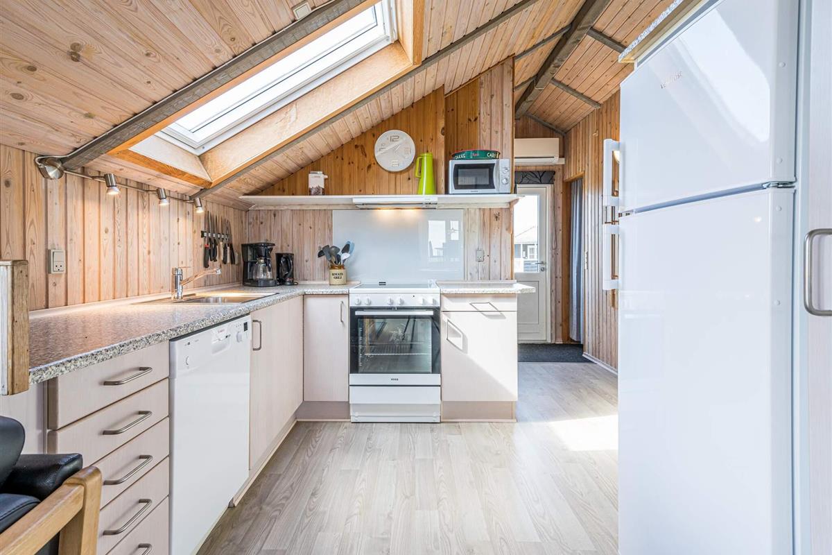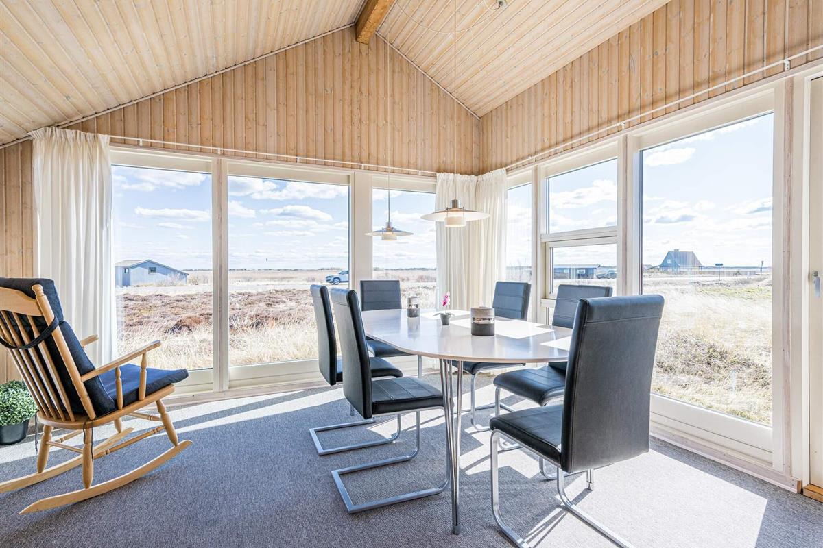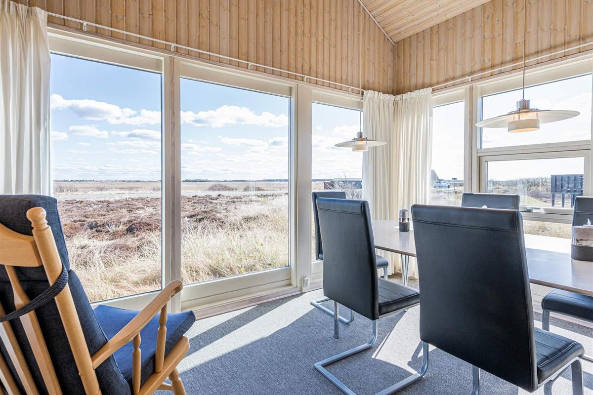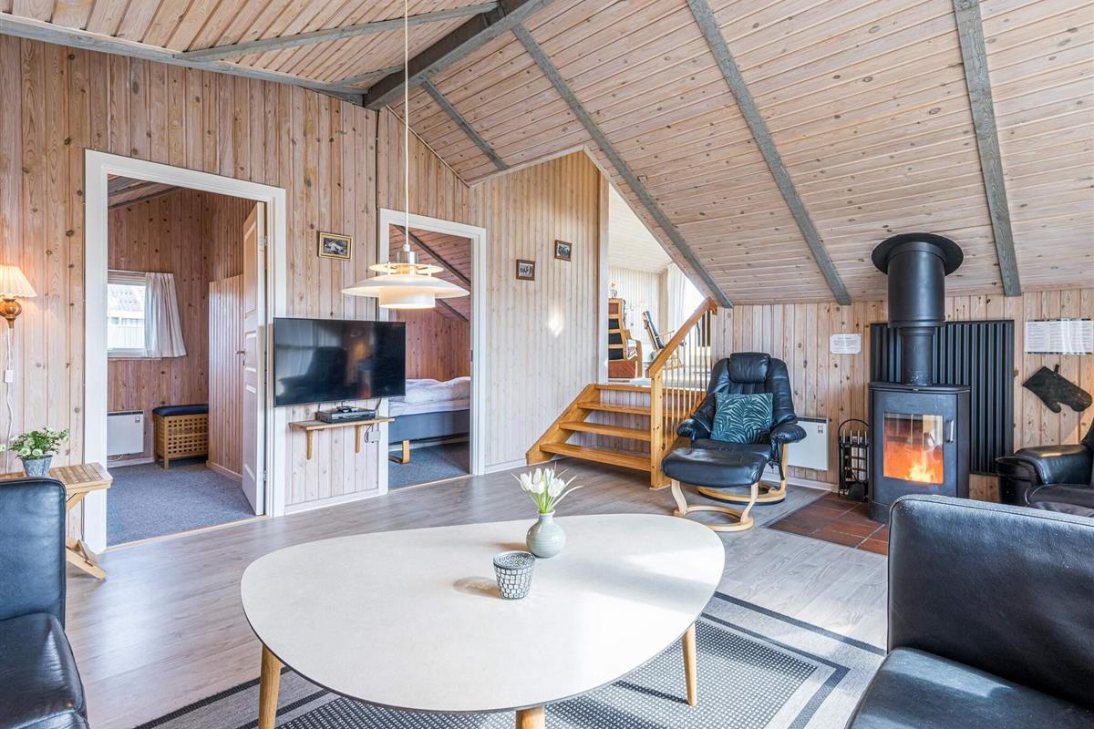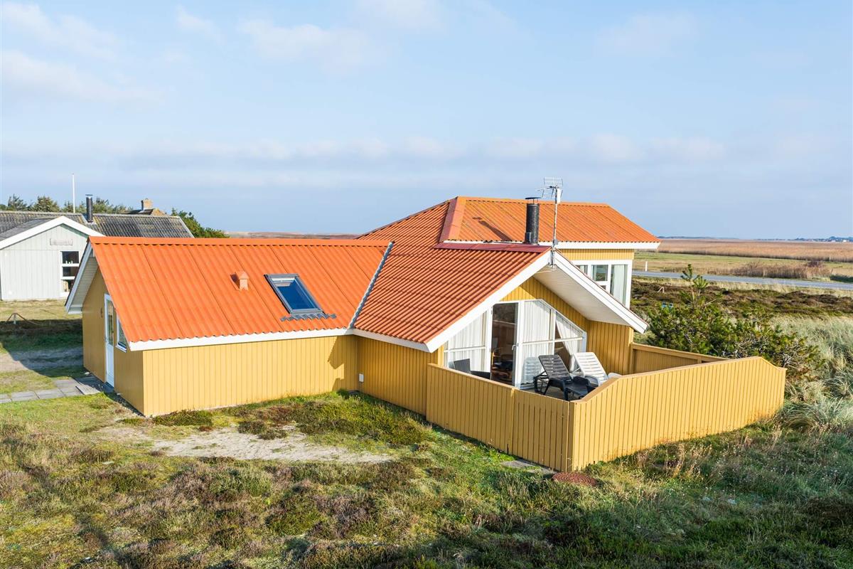 Schönes Ferienhaus mit Aussicht über den Ringkøbing Fjord und nur einen Spaziergang von der Nordseeküste entfernt. Die helle Küche mit ihren Dachfenstern liegt in offener Verbindung mit dem Wohnzimmer, wo auch der Kaminofen platziert ist. Vom Wohnzimmer gelangen Sie über ein paar Stufen ins Esszimmer, von dem aus Sie herrlichen Fjordblick genießen können. Zur Unterhaltung stehen auch einige deutsche TV-Sender zur Auswahl. Alle Zimmer sind geräumig und gut eingerichtet. Ein gemütliches Ferienhaus mit Sauna in Bjerregard an der Nordsee! Die Endreinigung ist im Mietpreis enthalten!