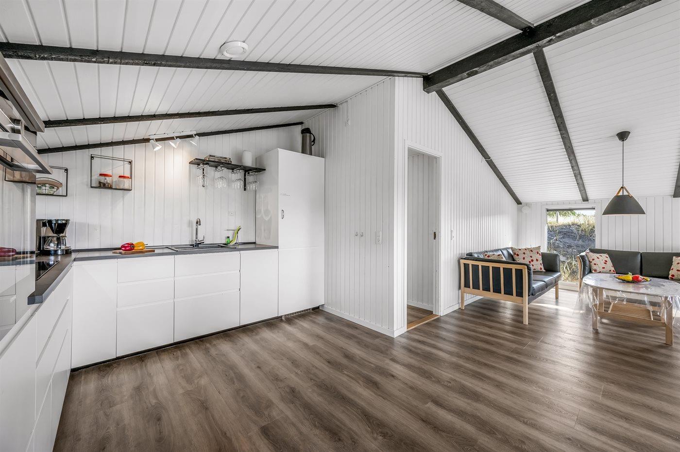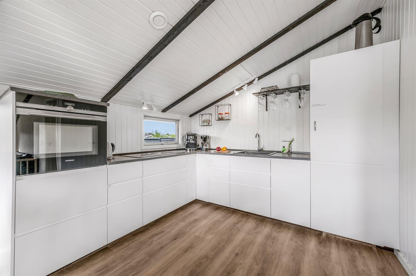 De keuken is uitgerust met koelkast Er is 4 inductiekookplaten, heteluchtoven, magnetron en vaatwasser.