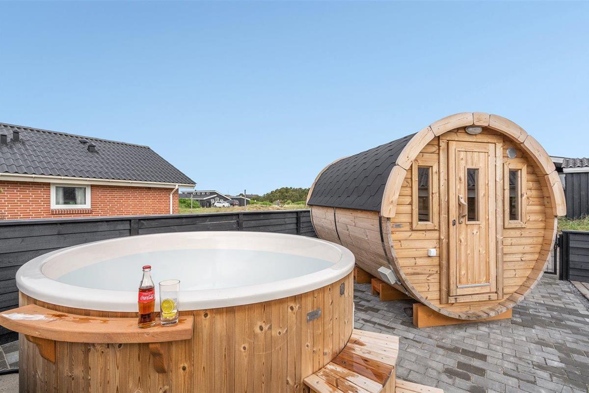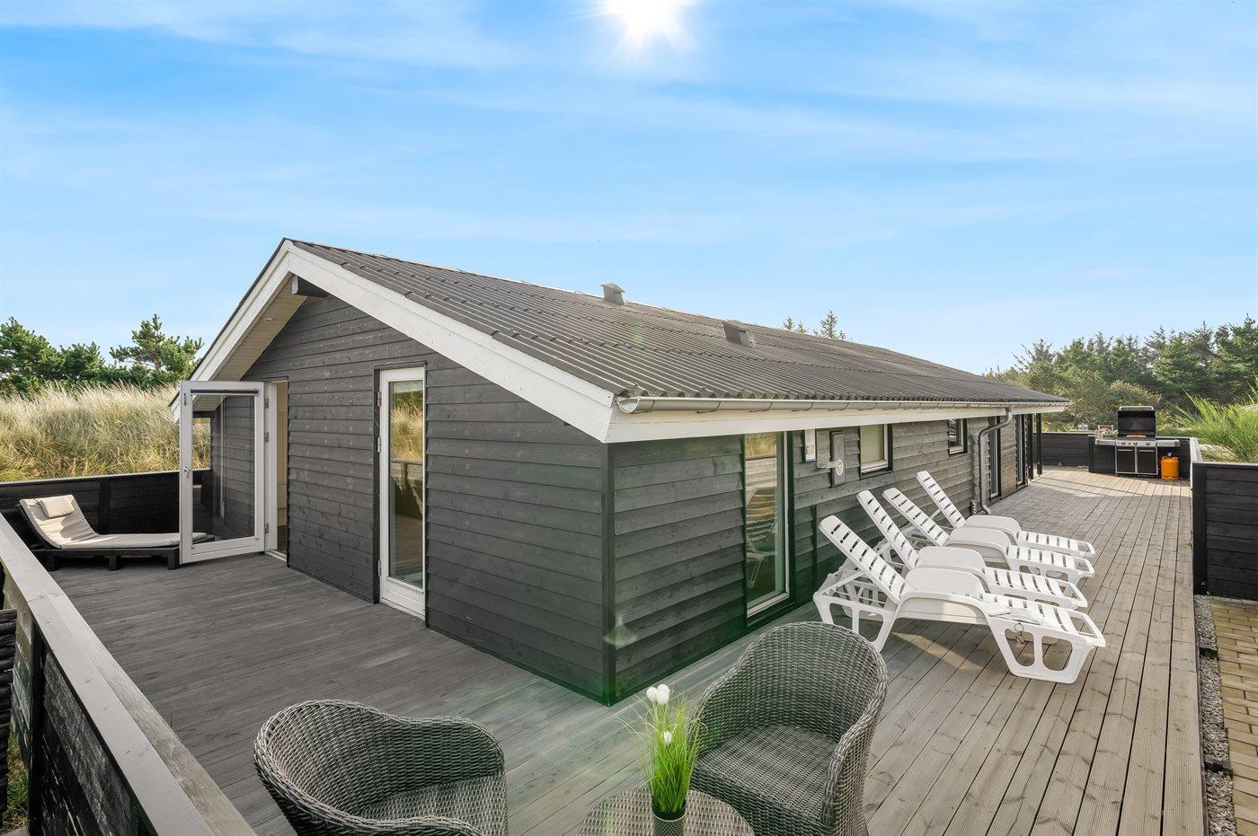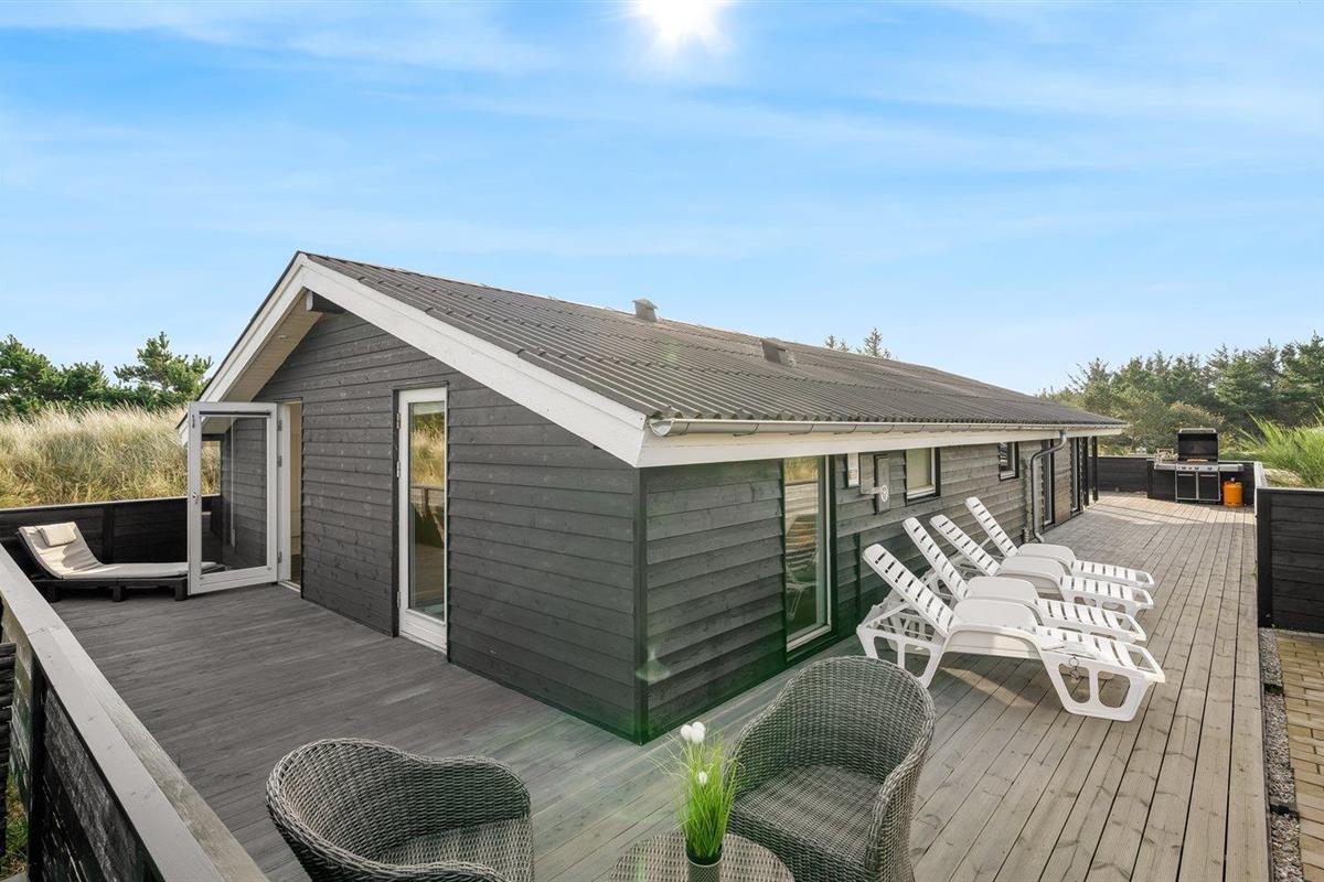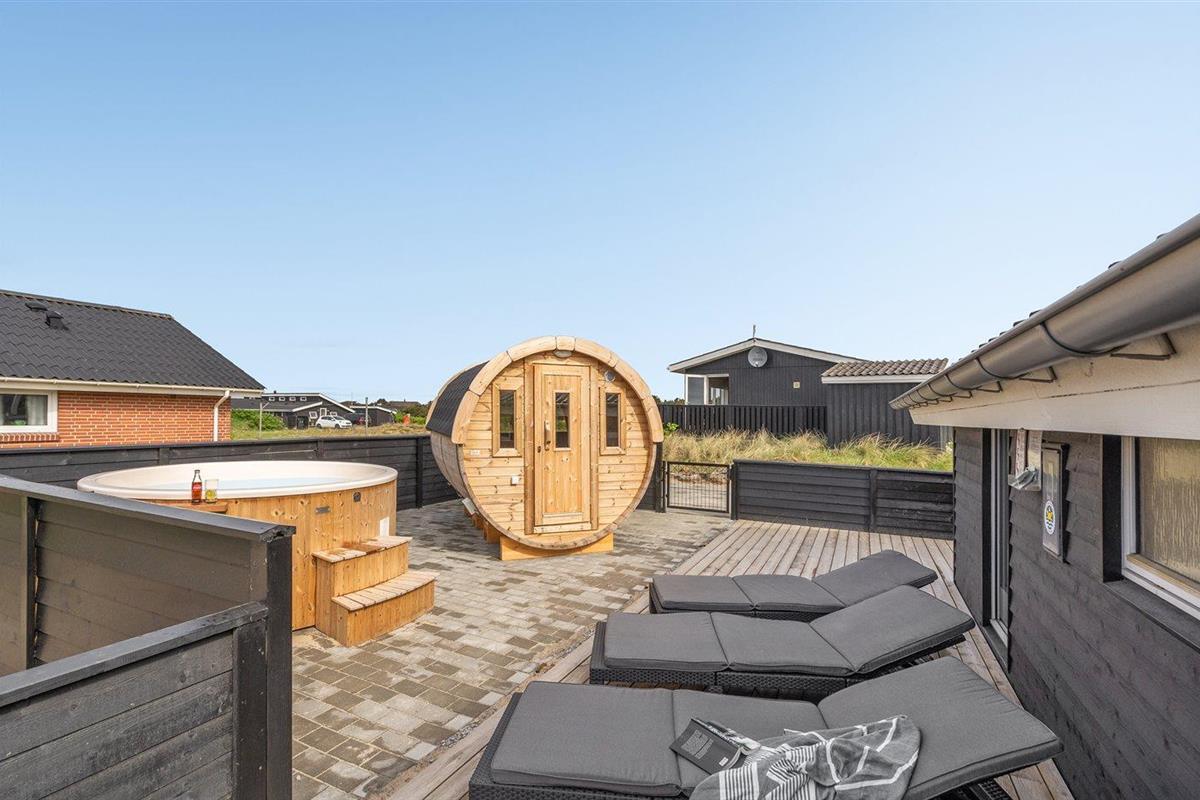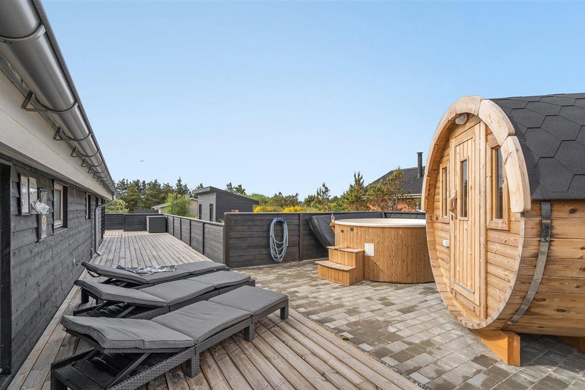 Ruim vakantiehuis in Hvide Sande met sauna, hot tub en groot terras op natuurrijk terrein.