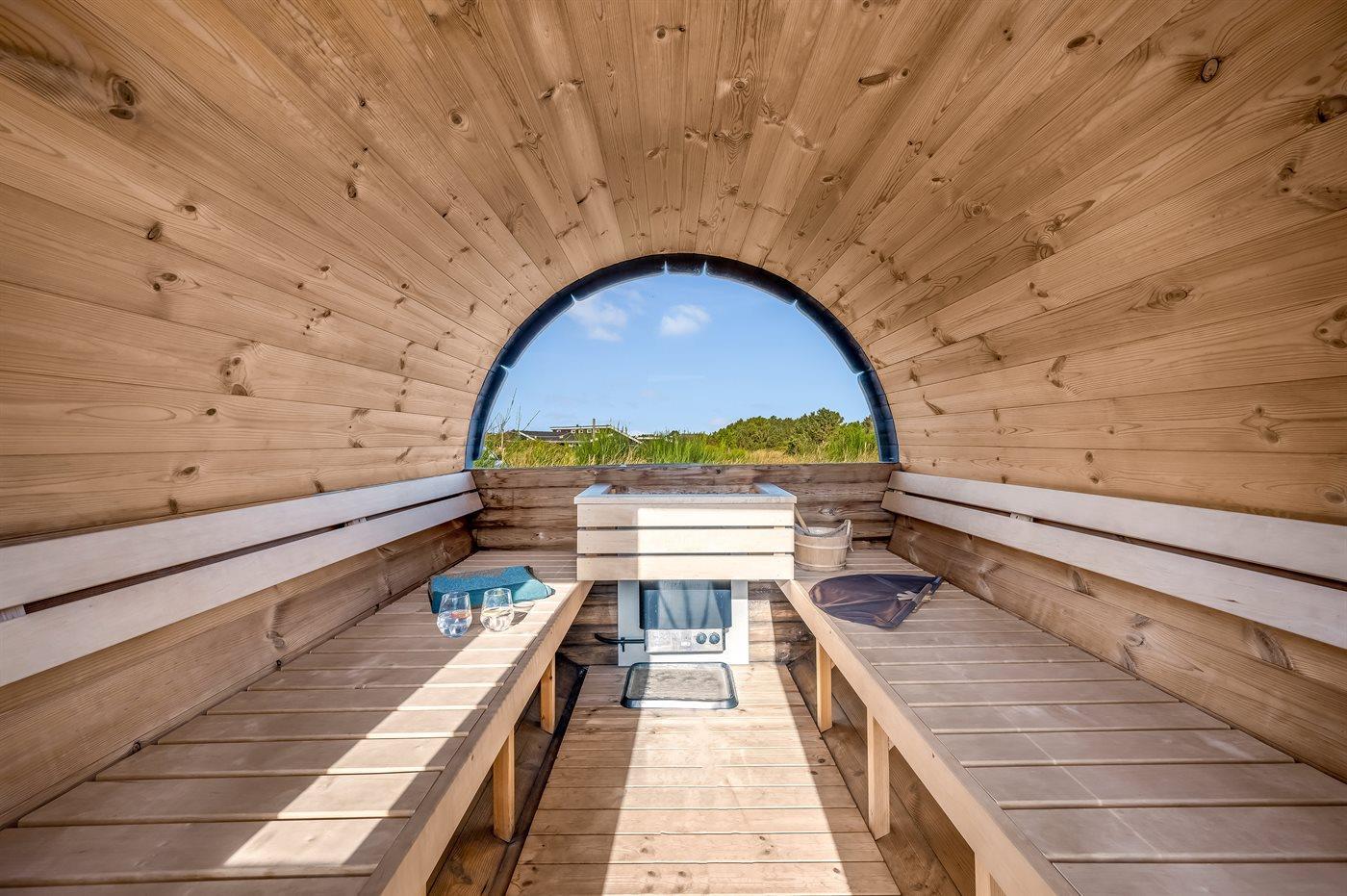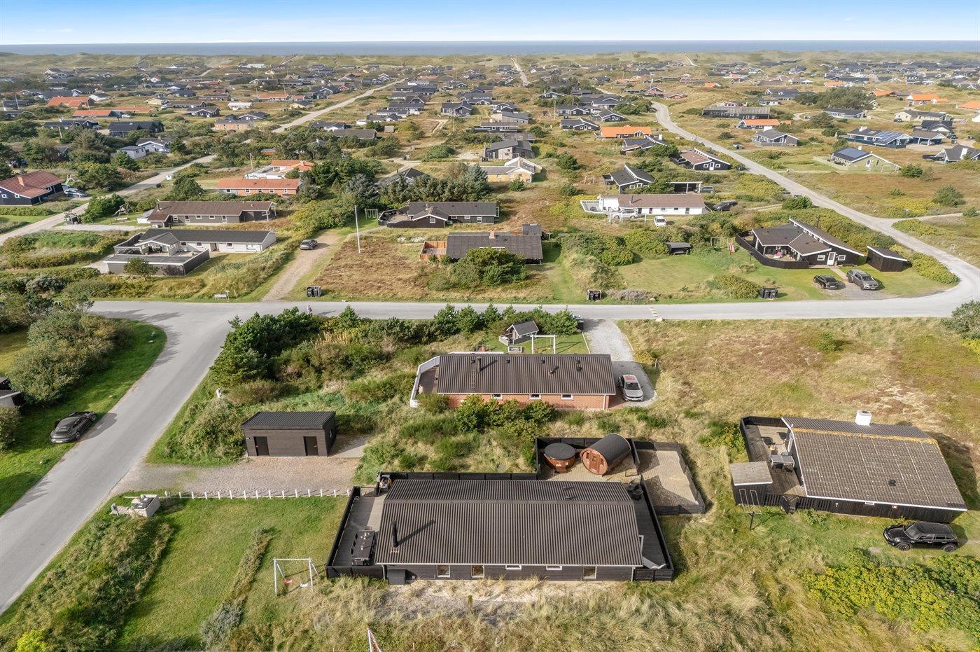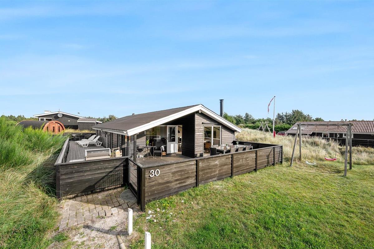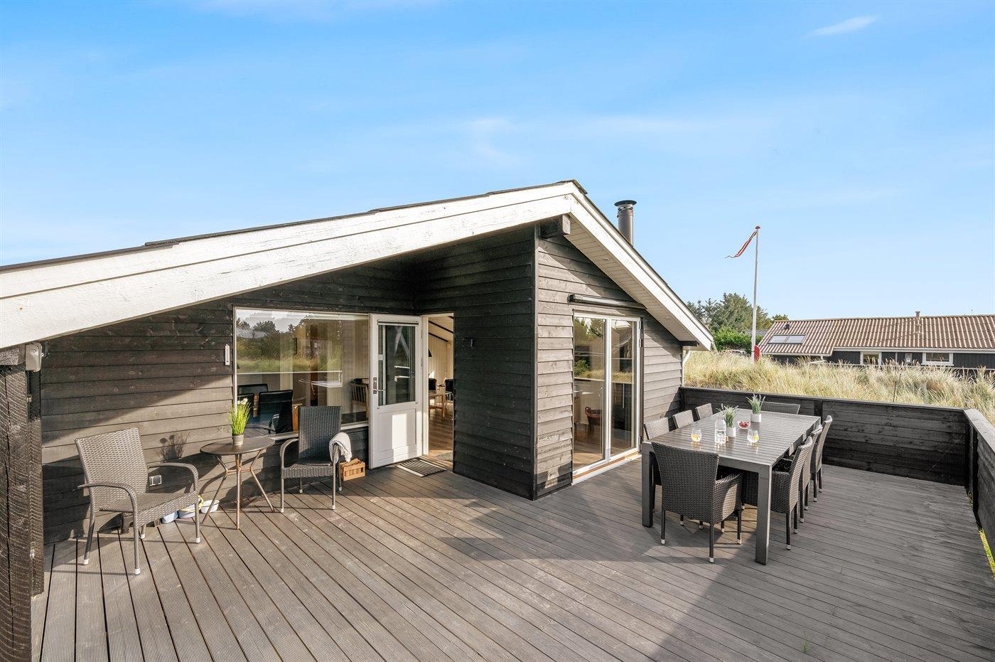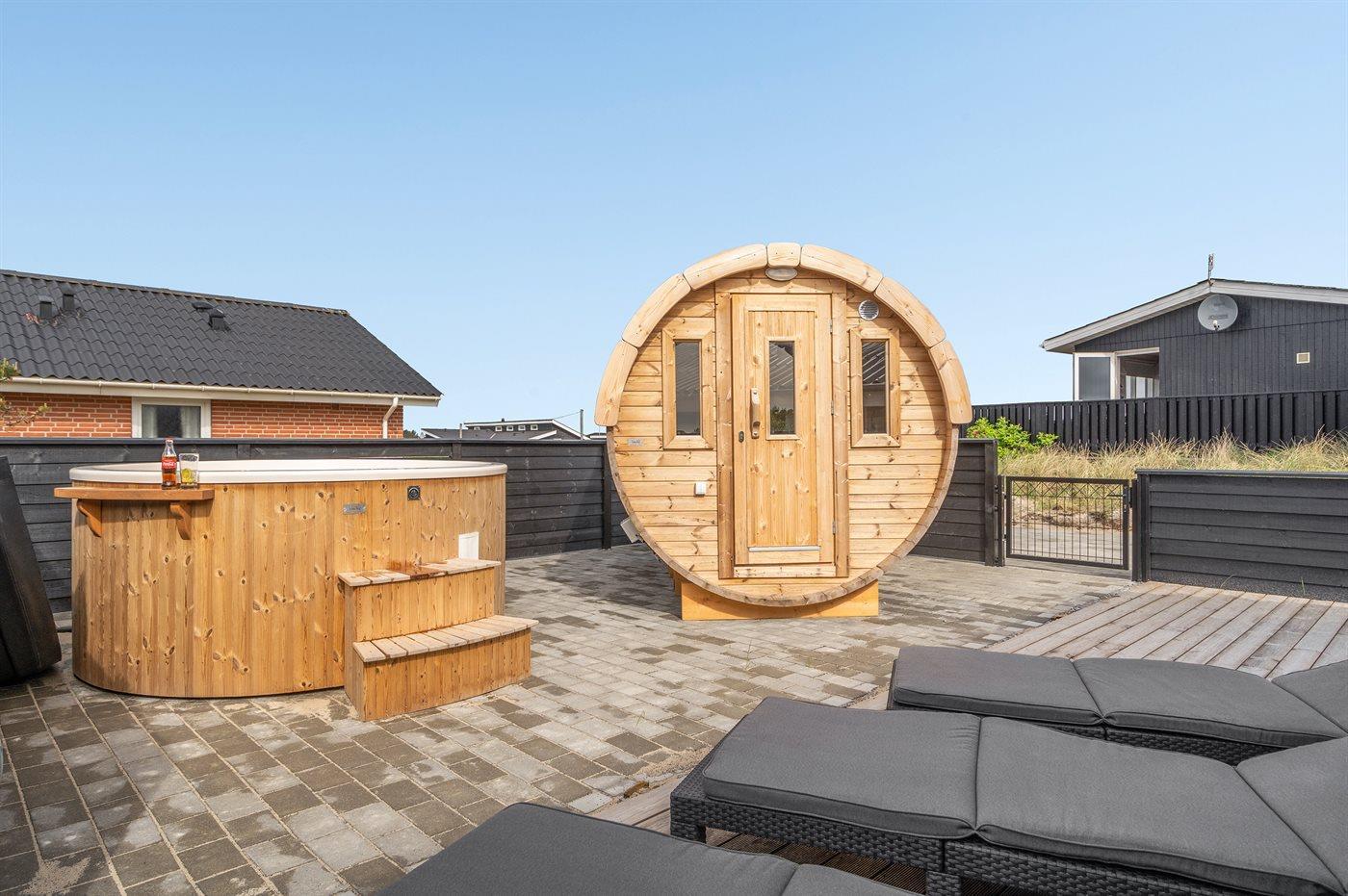 Ruim vakantiehuis in Hvide Sande met sauna, hot tub en groot terras op natuurrijk terrein.