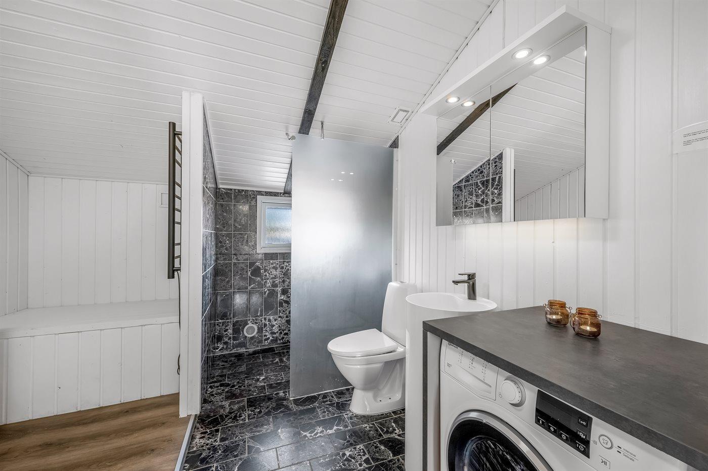 Er is 1 badkamer met douche en 1 toilet.. Er is vloerverwarming in 1 badkamer. De sauna biedt de gelegenheid tot ontspanning.