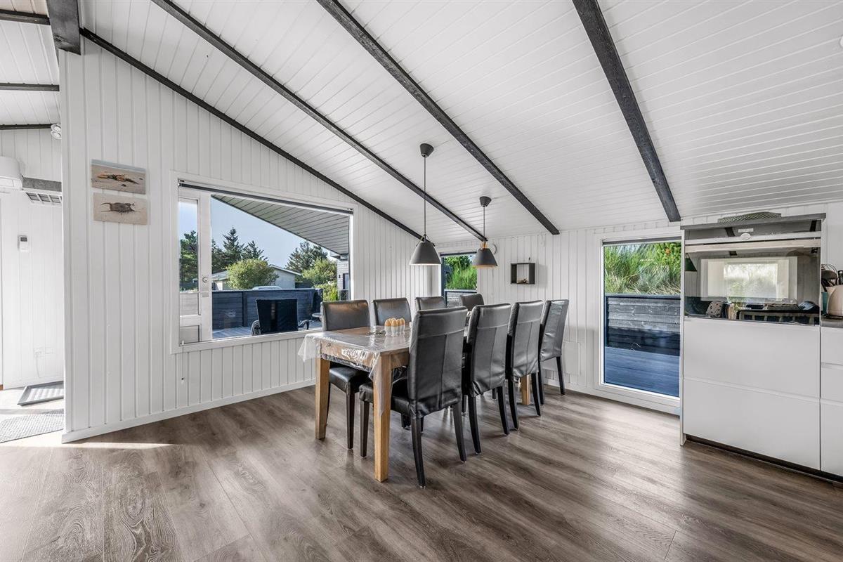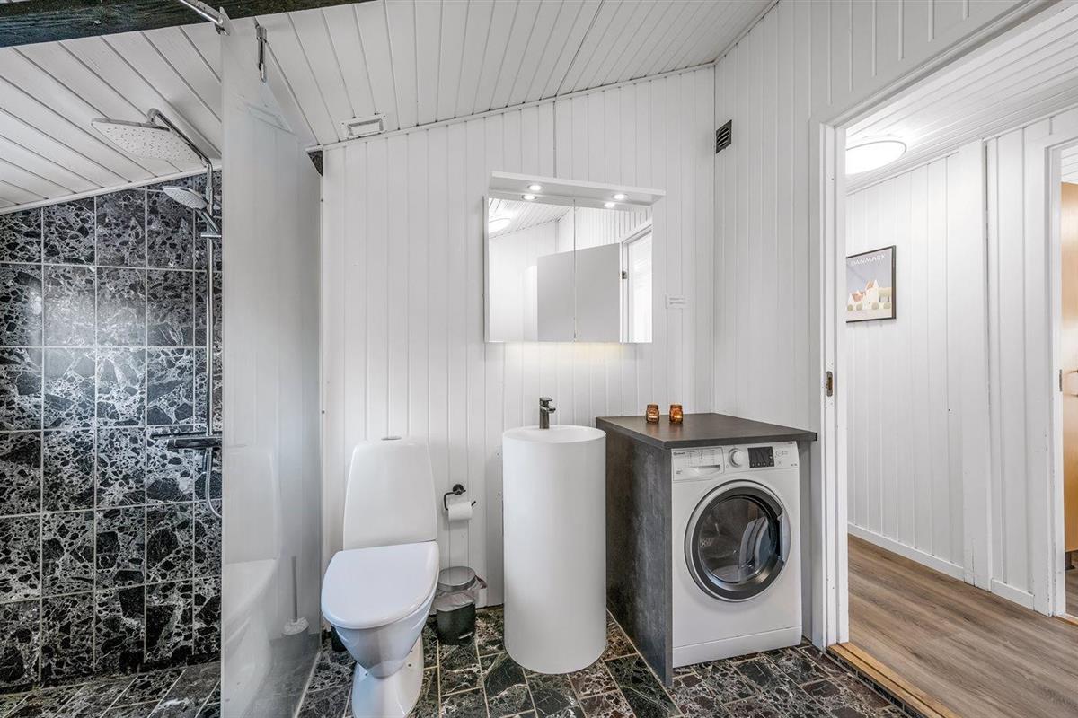 De vakantiewoning is gelegen op een 1251 m² groot natuural grond. Afstand tot de zee 850 m. Afstand tot de fjord 500 m. Dichtstbijzijnde winkel 300 m. Bij de vakantiewoning hoort 80 m² terras. Daarnaast is er een 8 m² groot overdekt terras. Waarvan in totaal 70 m² beschut terras. Schommel. Zandbak. Buitensauna.