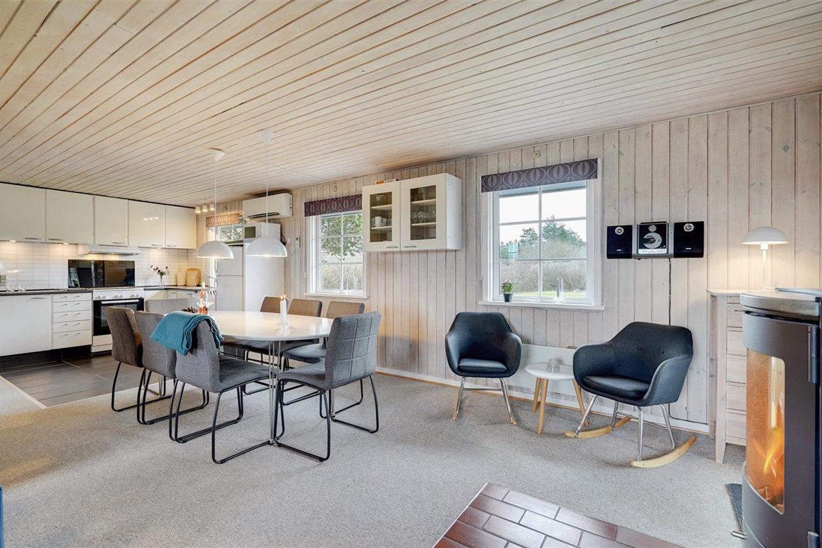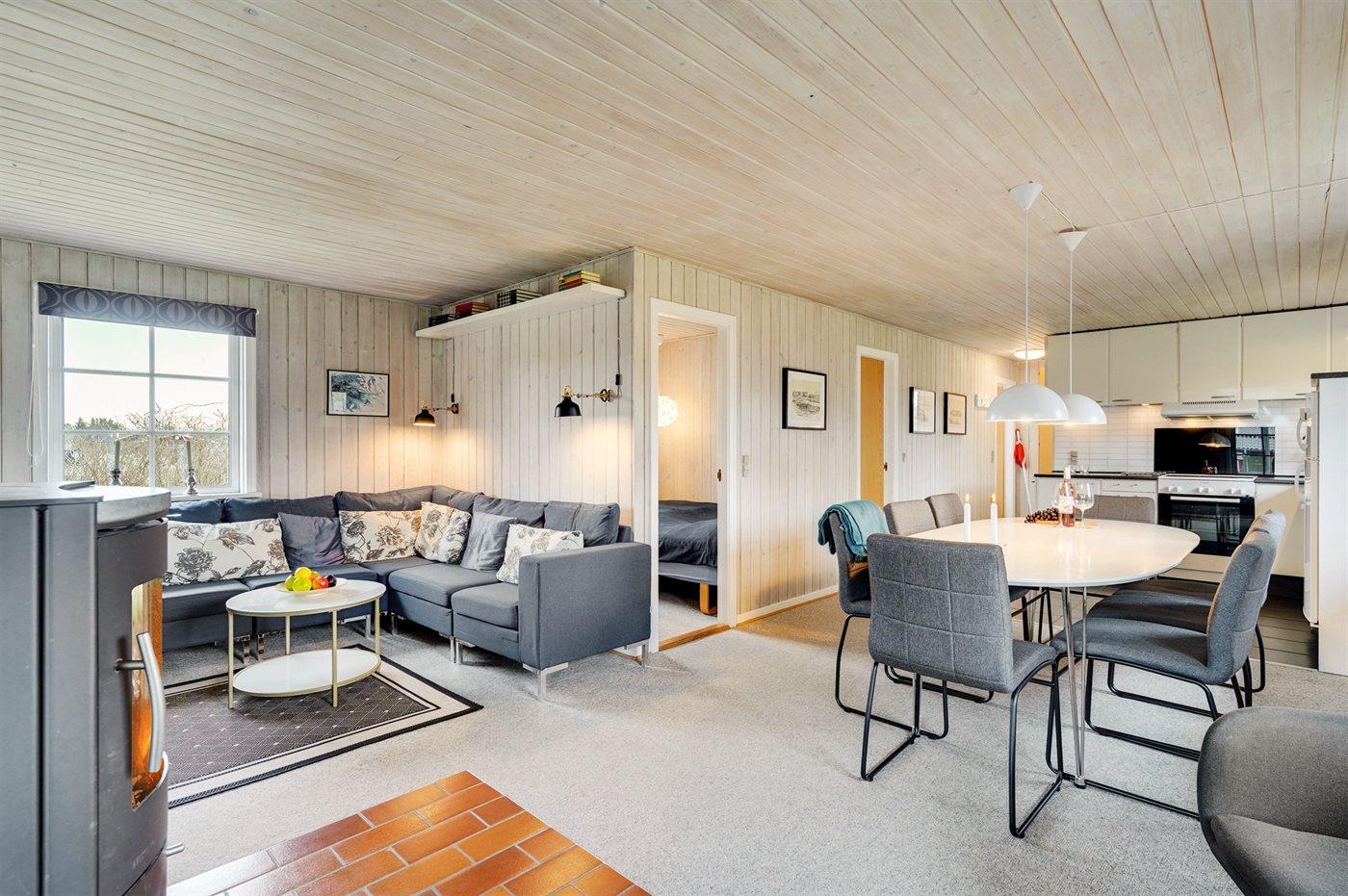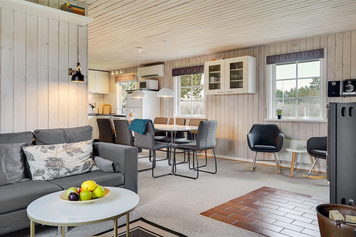 De vakantiewoning is gelegen op een 1289 m² groot natuural grond. Afstand tot de zee 900 m. Afstand tot de fjord 900 m. Dichtstbijzijnde winkel 300 m. Bij de vakantiewoning hoort 40 m² terras. Daarnaast is er een 15 m² groot overdekt terras. Gereedschapsruimte. Schommel. Zandbak. Parkeerplaats bij het huis.