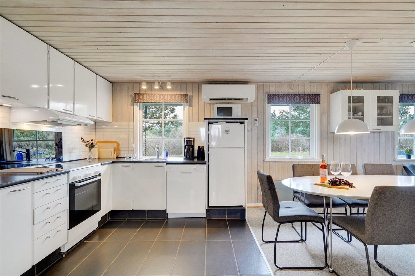 De keuken is uitgerust met koelkast Er zijn 4 keramische kookplaten, bakoven, magnetron en vaatwasser.