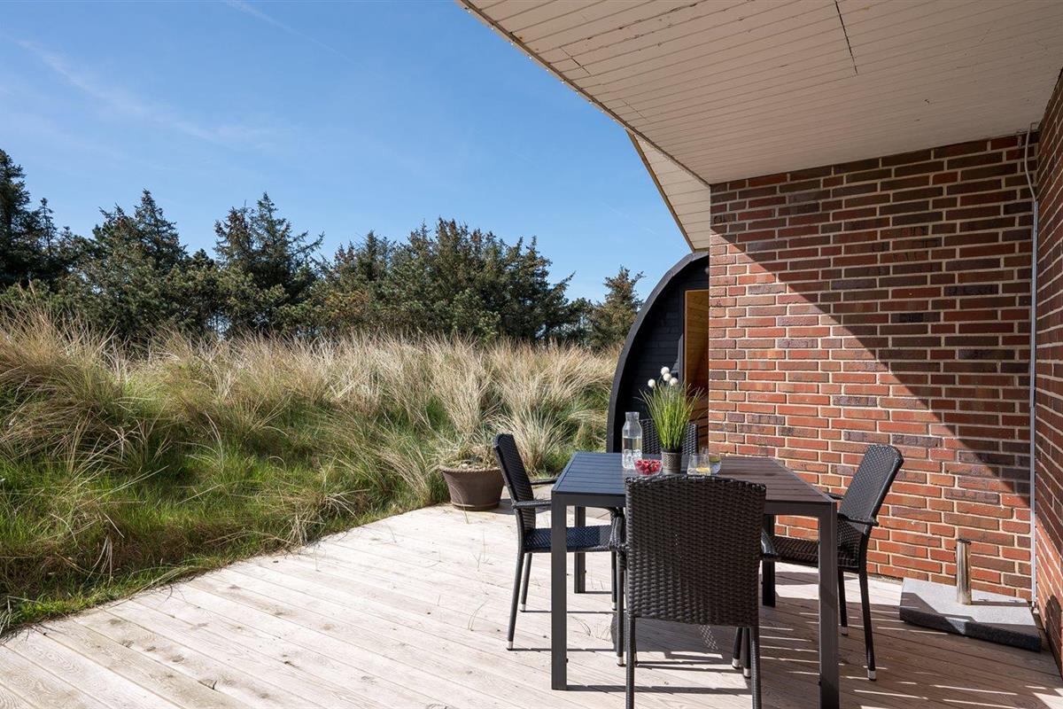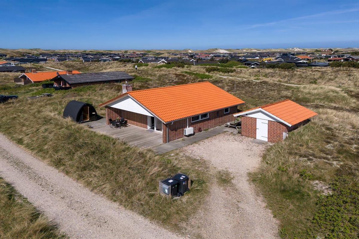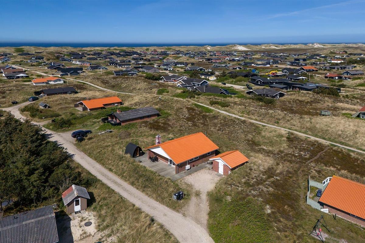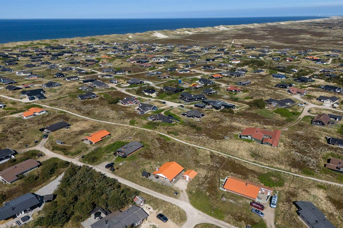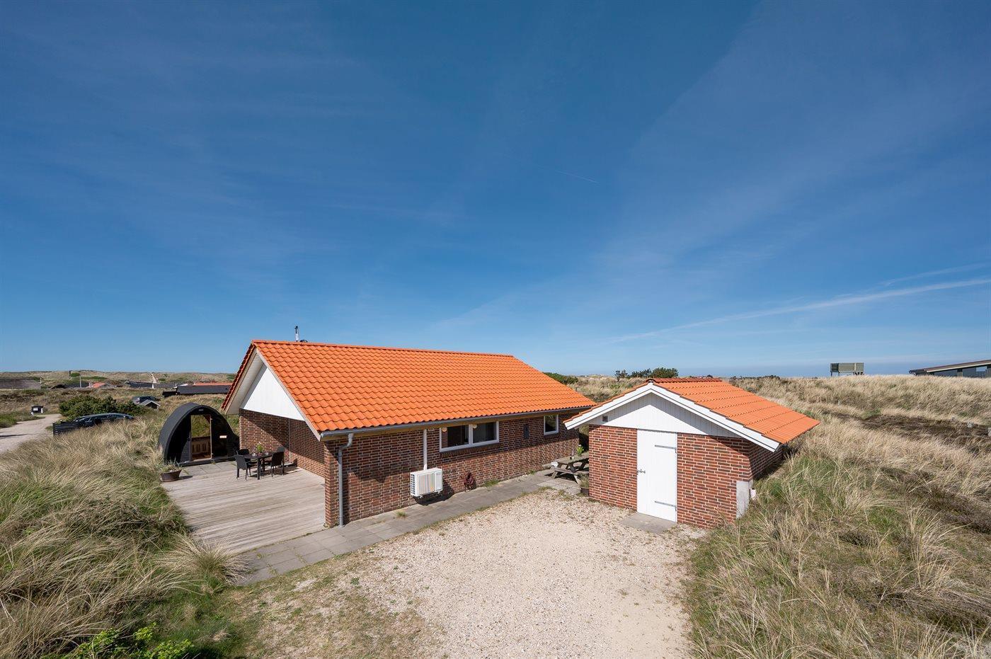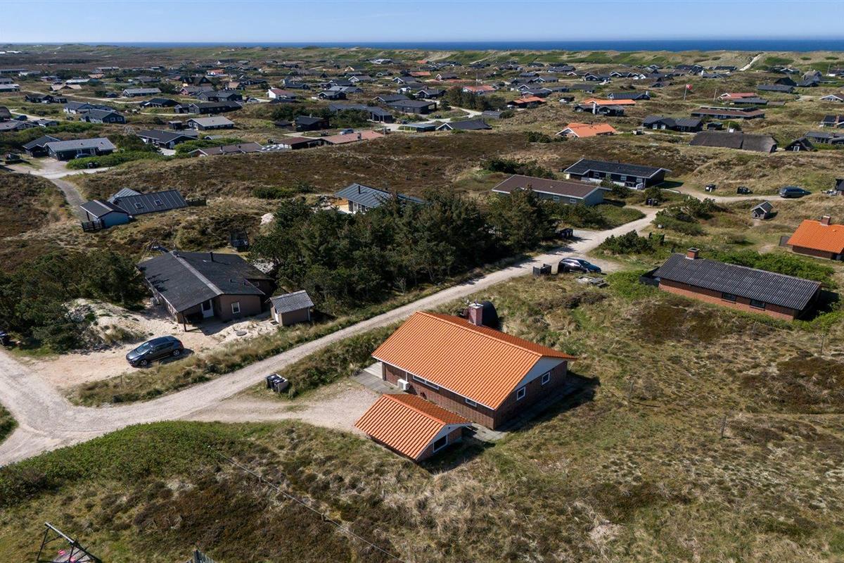 De vakantiewoning is gelegen op een 1380 m² groot Duingrond. Afstand tot de zee 700 m. Afstand tot de fjord 1900 m. Dichtstbijzijnde winkel 850 m. Daarnaast is er een 12 m² groot overdekt terras. Gereedschapsruimte. Buitensauna. Parkeerplaats bij het huis.