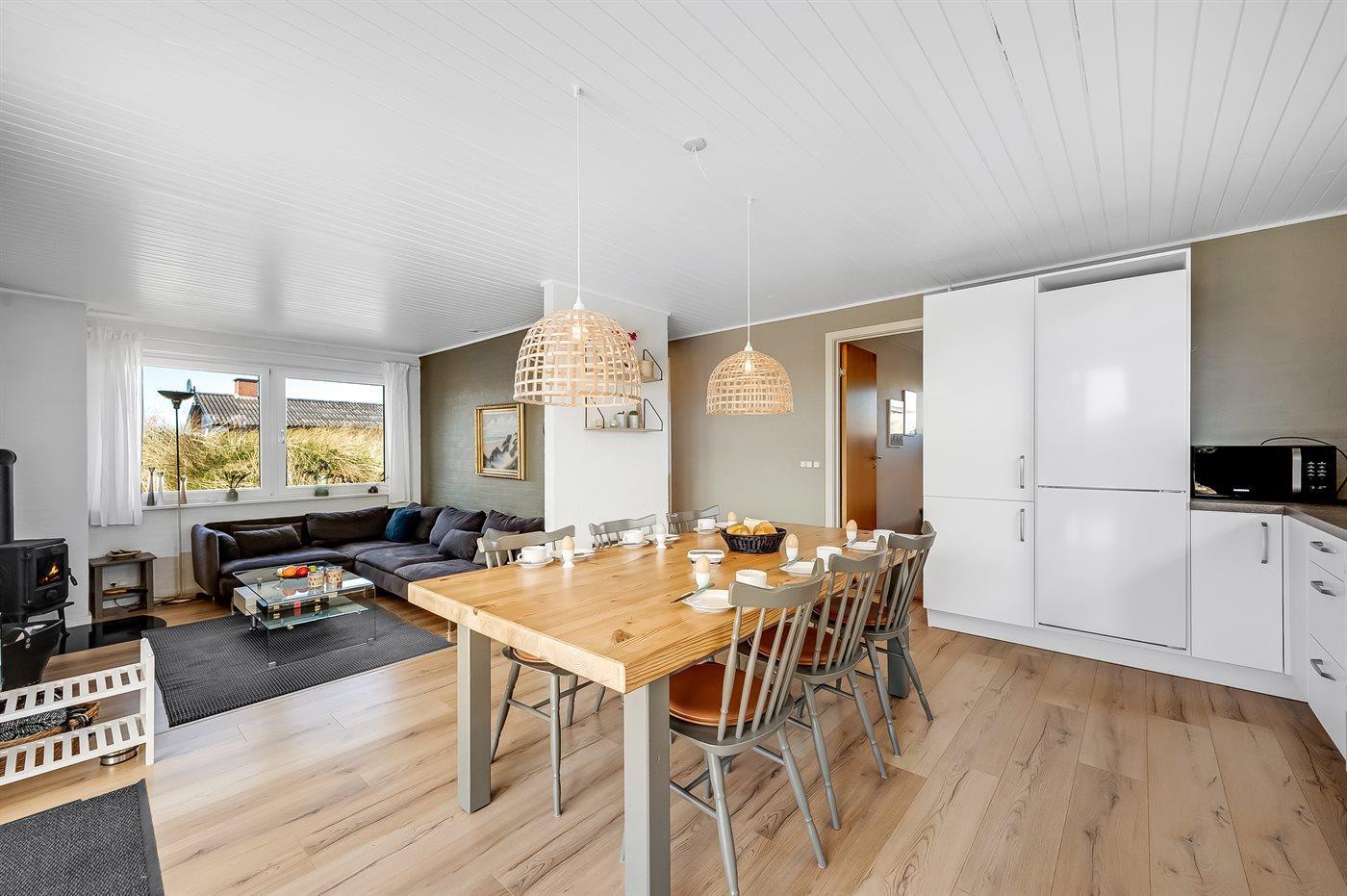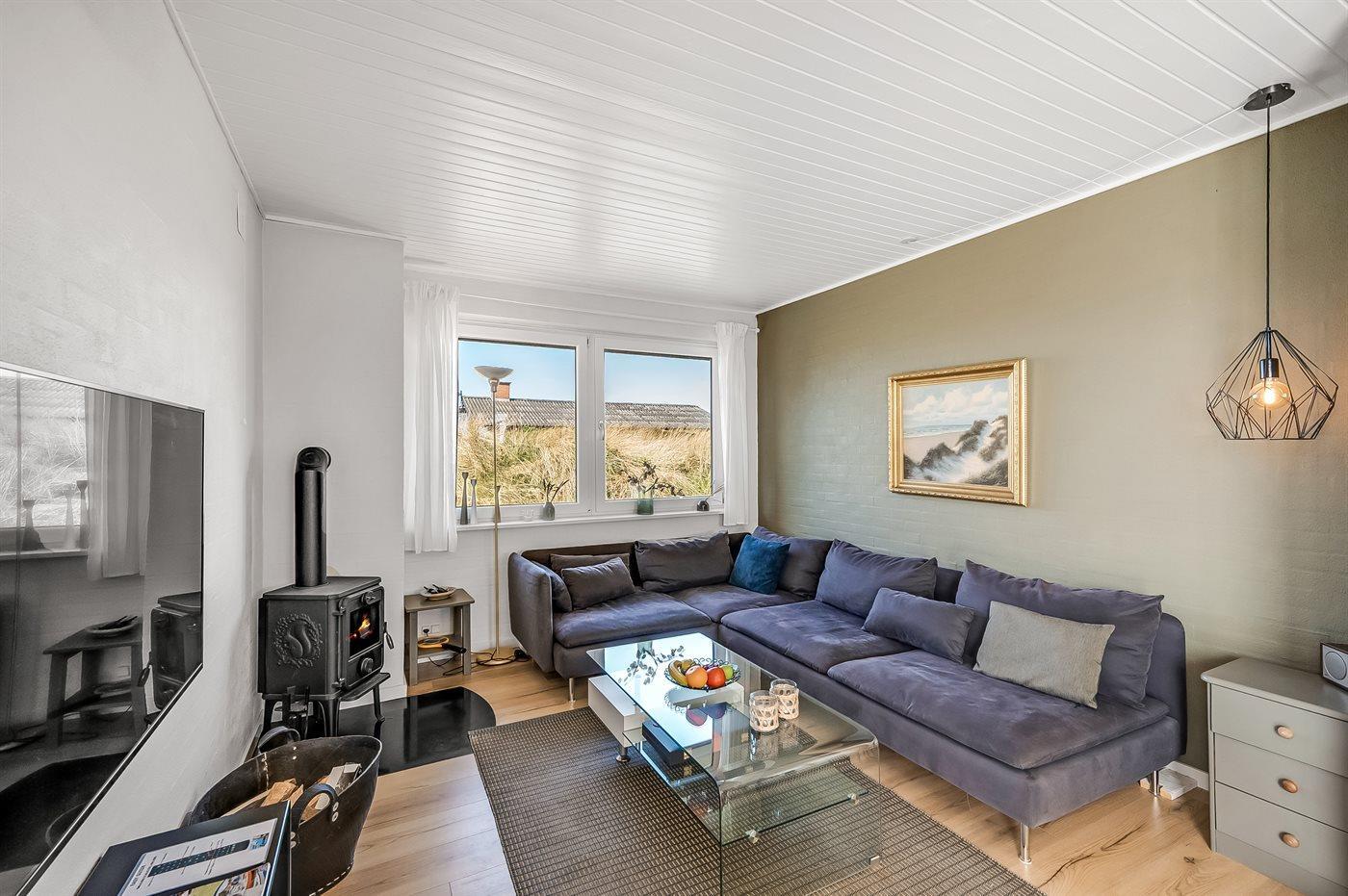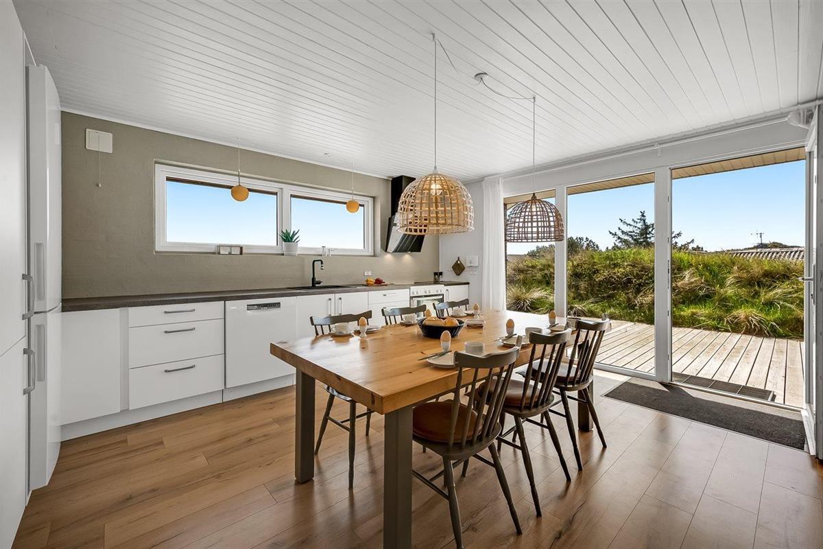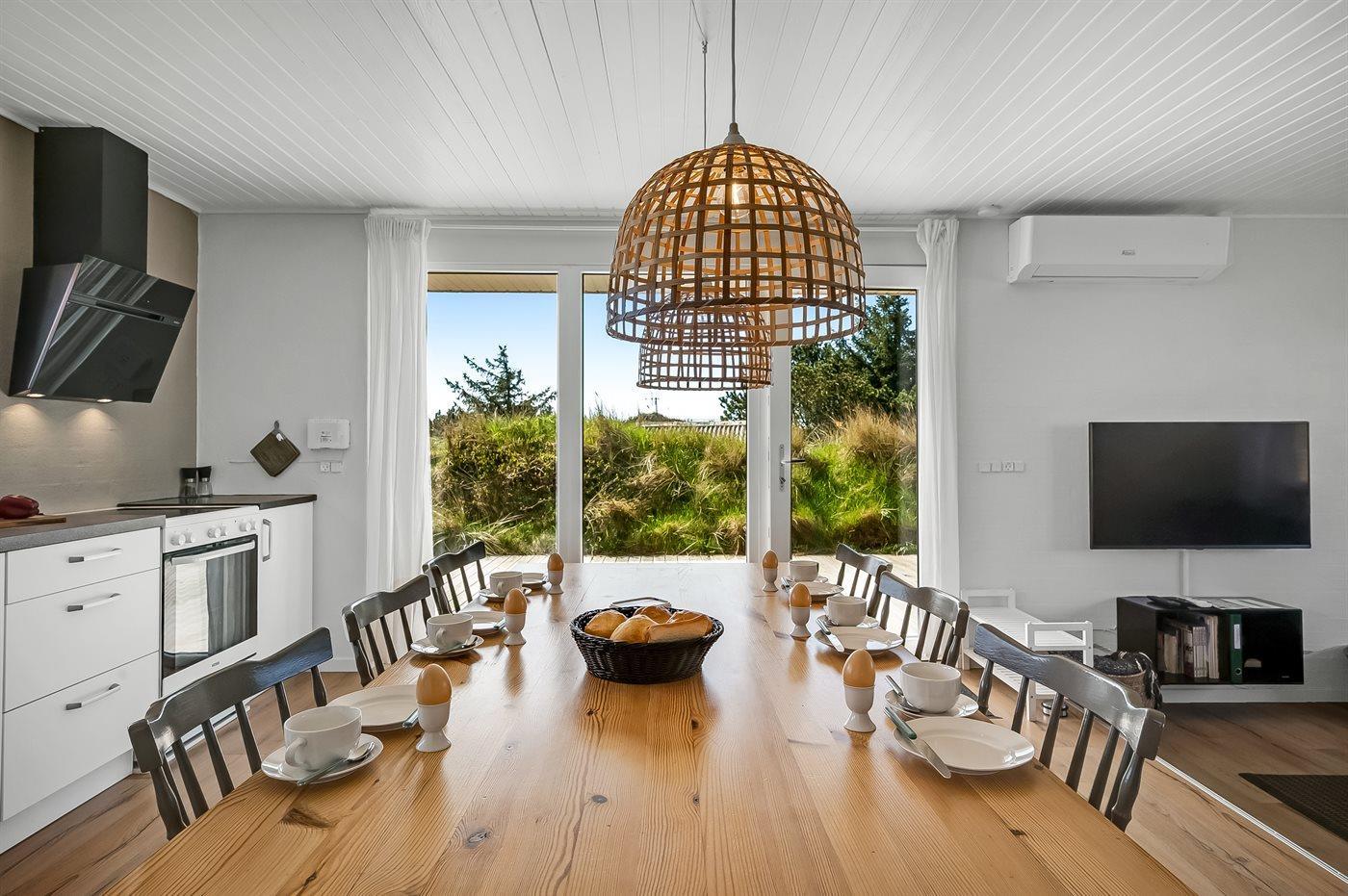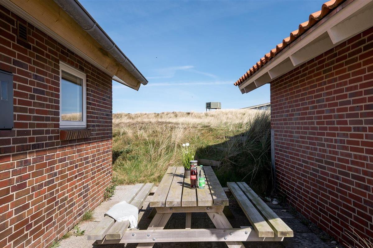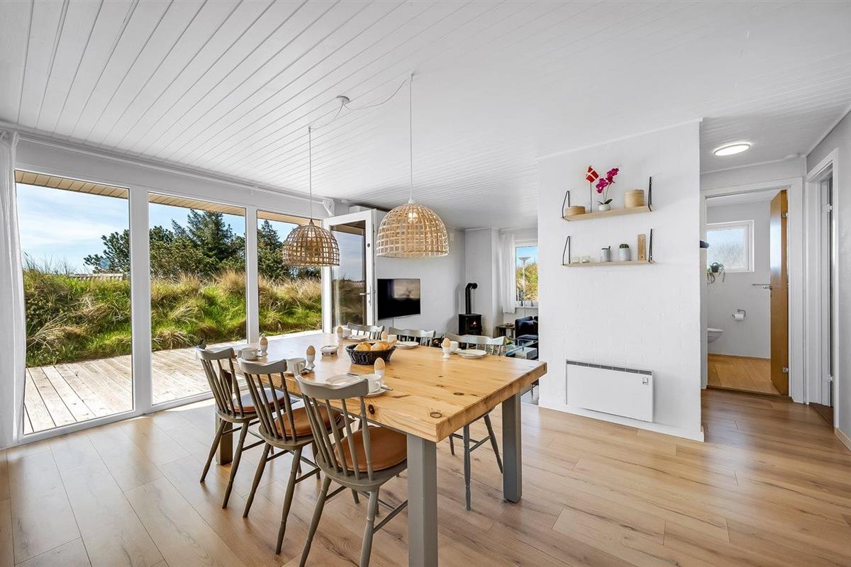 De vakantiewoning is gelegen op een 1380 m² groot Duingrond. Afstand tot de zee 700 m. Afstand tot de fjord 1900 m. Dichtstbijzijnde winkel 850 m. Daarnaast is er een 12 m² groot overdekt terras. Gereedschapsruimte. Buitensauna. Parkeerplaats bij het huis.