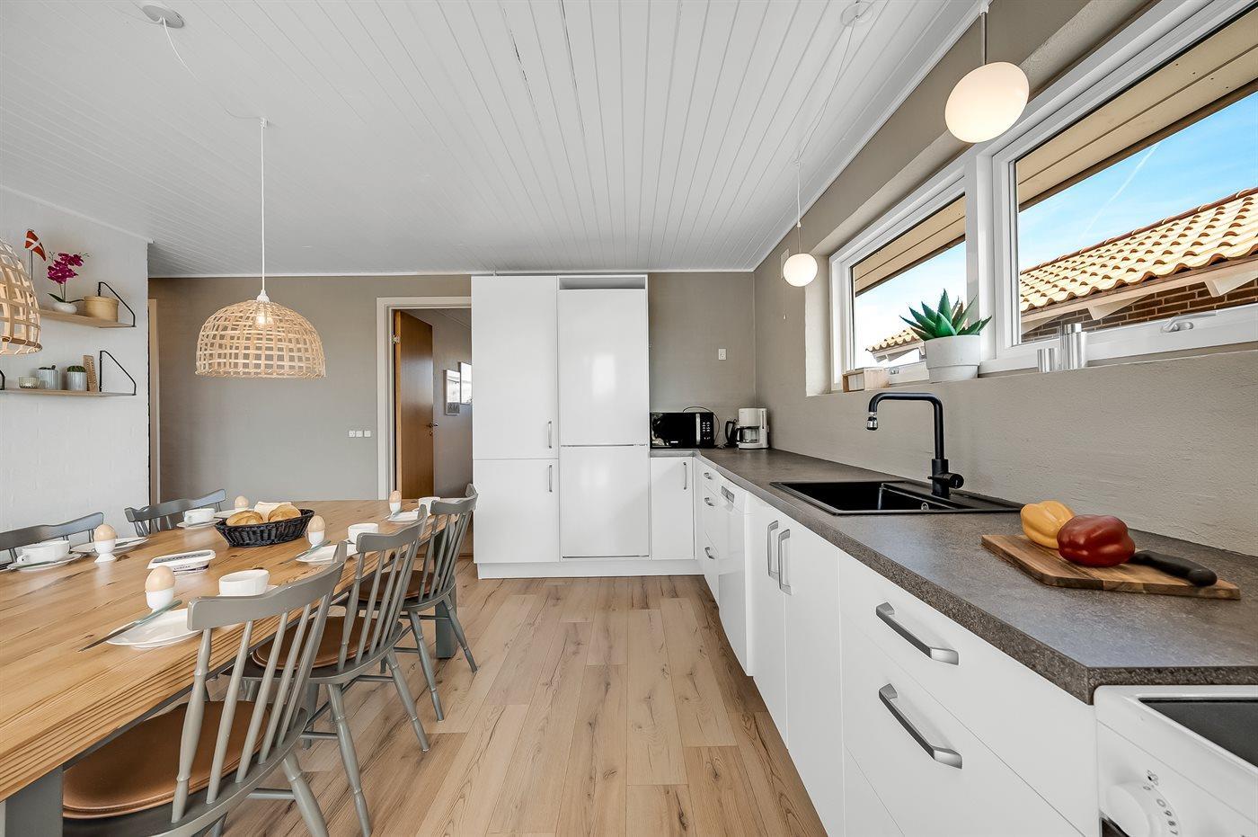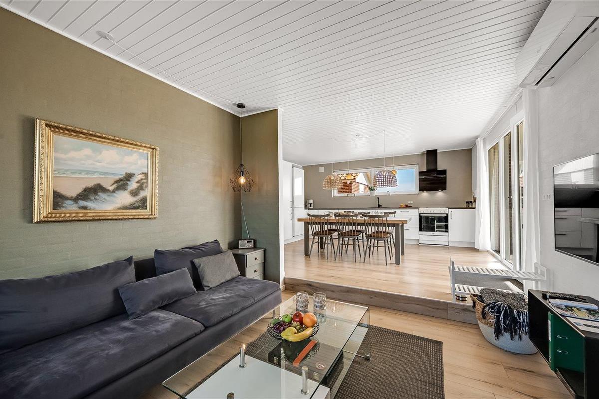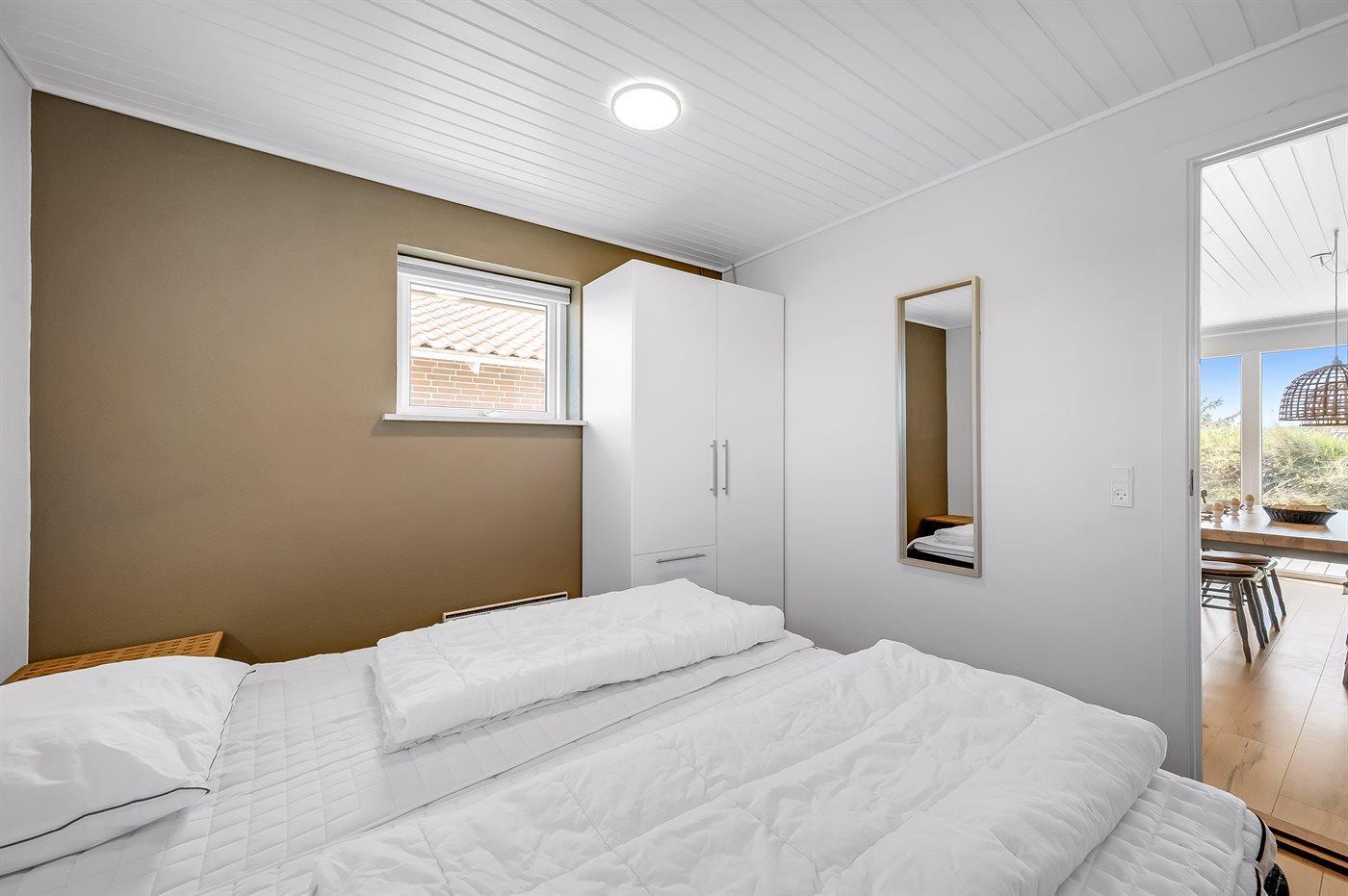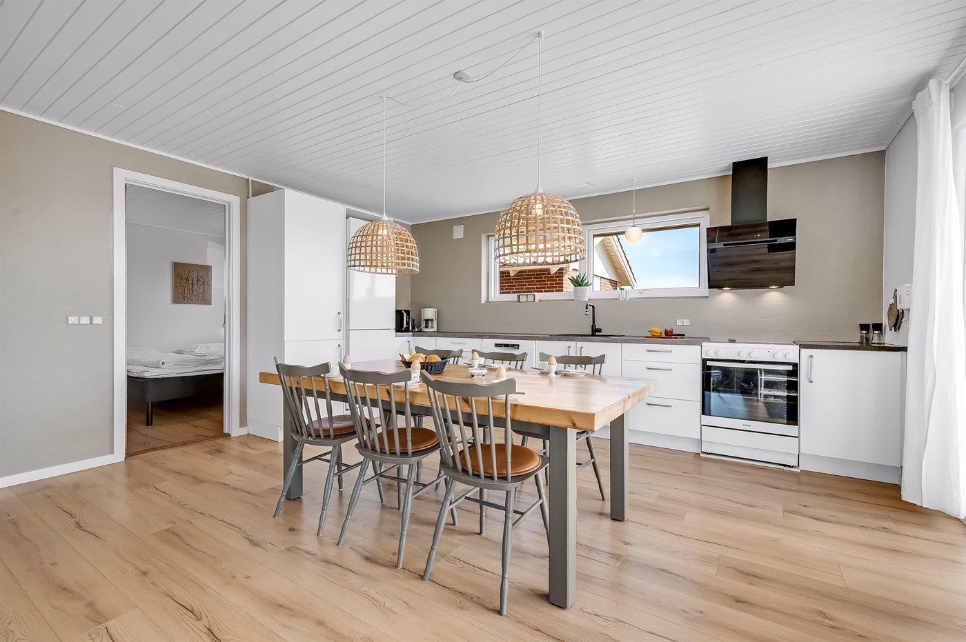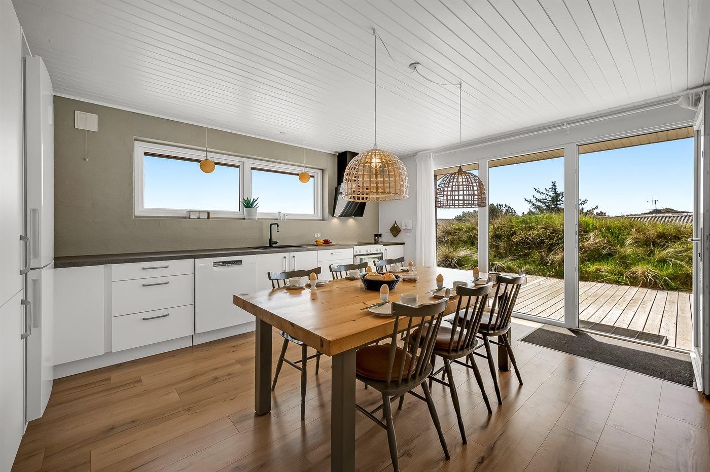 De vakantiewoning is gelegen op een 1380 m² groot Duingrond. Afstand tot de zee 700 m. Afstand tot de fjord 1900 m. Dichtstbijzijnde winkel 850 m. Daarnaast is er een 12 m² groot overdekt terras. Gereedschapsruimte. Buitensauna. Parkeerplaats bij het huis.