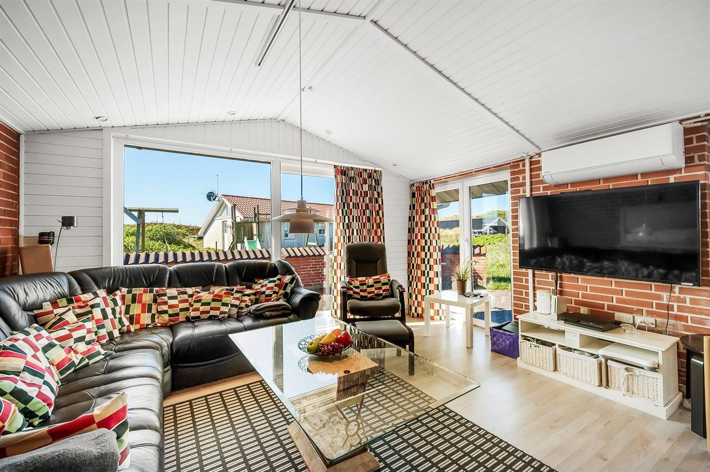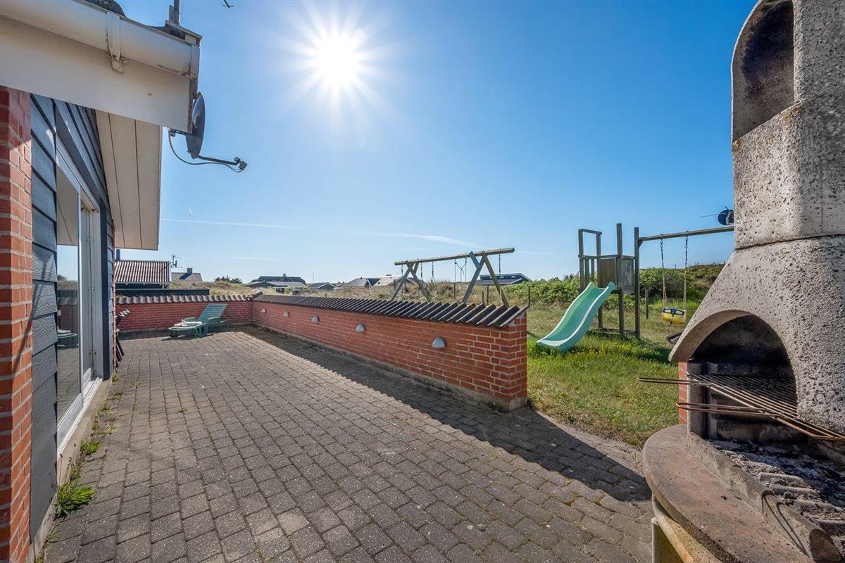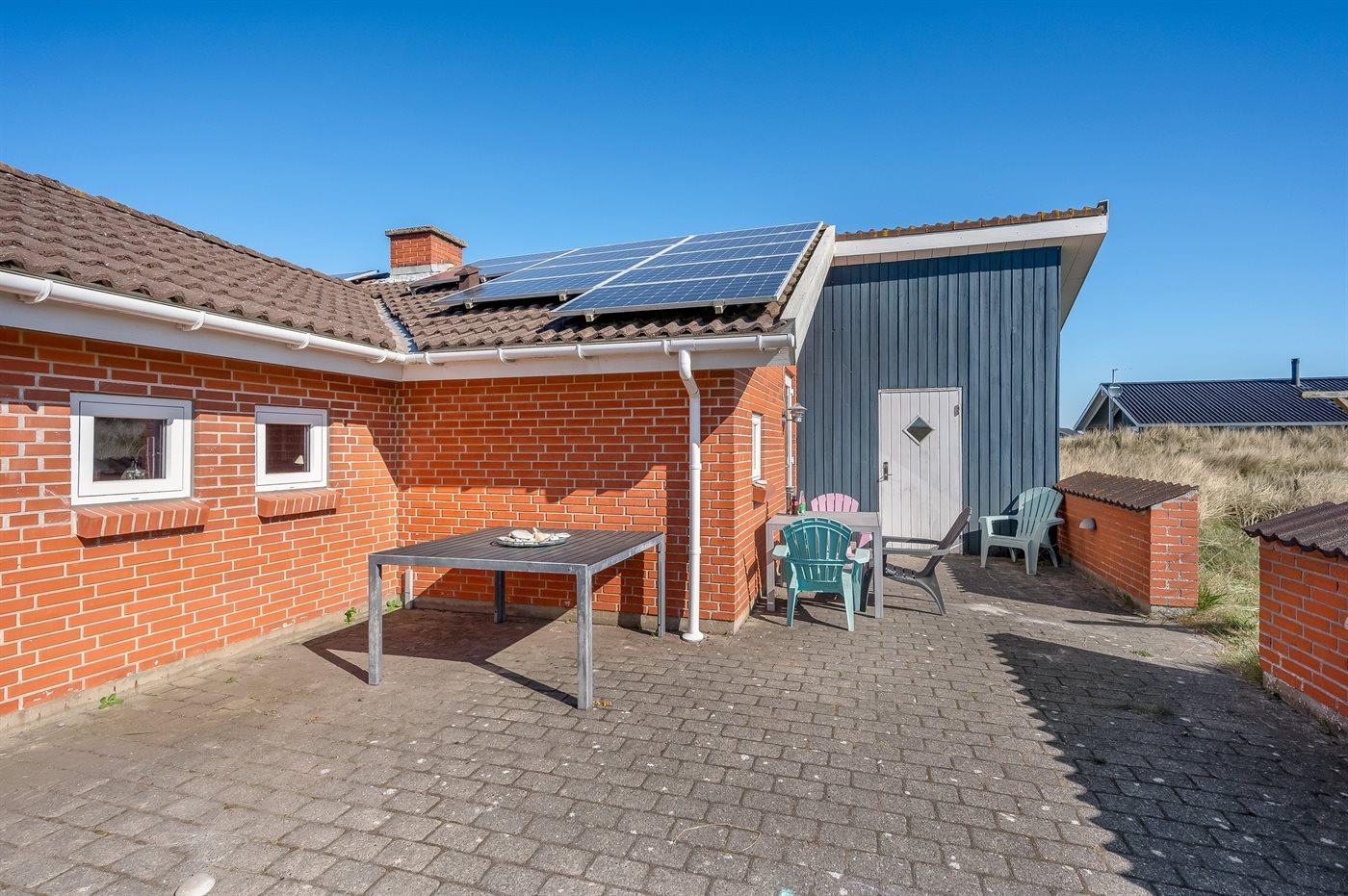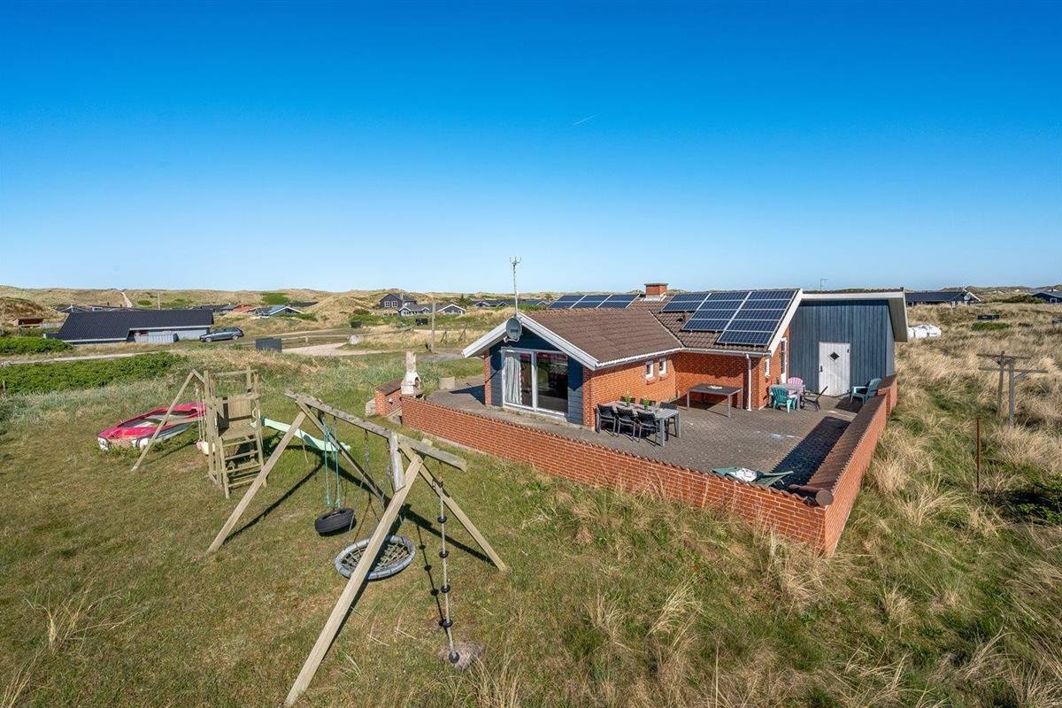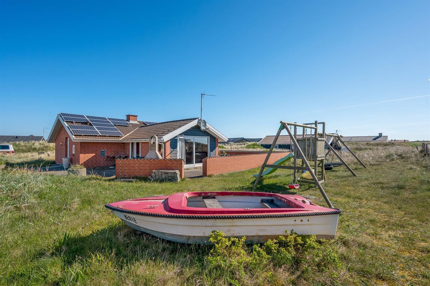 De vakantiewoning is gelegen op een 1200 m² groot natuural grond. Afstand tot de zee 200 m. Afstand tot de fjord 1500 m. Dichtstbijzijnde winkel 1000 m. Er is een golfbaan op een afstand van 30000 m. Bij de vakantiewoning hoort 100 m² terras. Schommel. Zandbak. Glijbaan. Voetbaldoel.Vuurplaats. Op zwoele avonden zorgt de buitenhaard voor een gezellige sfeer. Er is geen barbecue aanwezig. Parkeerplaats bij het huis.