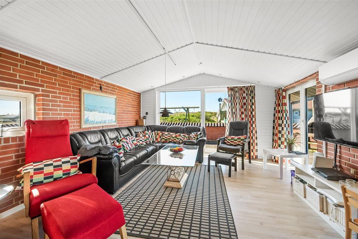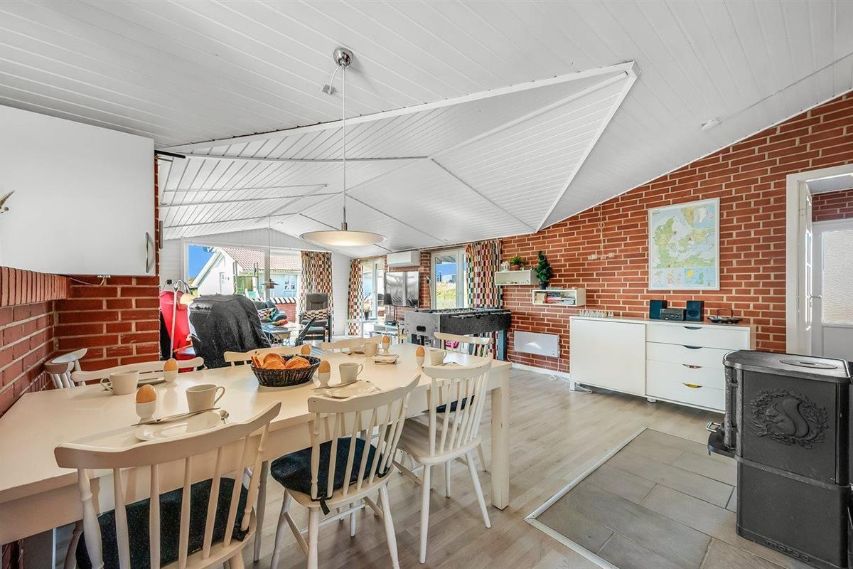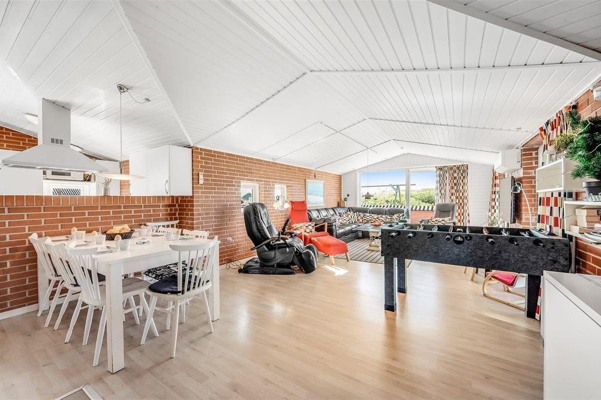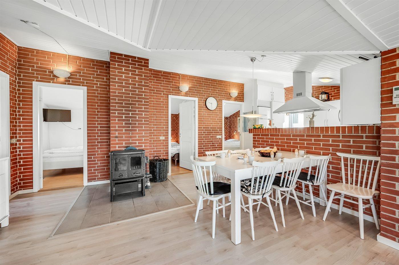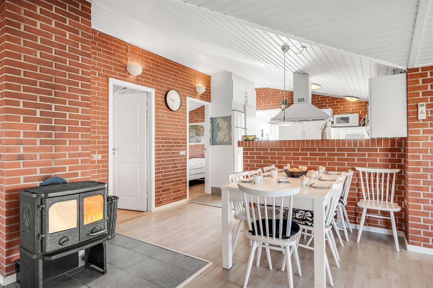 De vakantiewoning is gelegen op een 1200 m² groot natuural grond. Afstand tot de zee 200 m. Afstand tot de fjord 1500 m. Dichtstbijzijnde winkel 1000 m. Er is een golfbaan op een afstand van 30000 m. Bij de vakantiewoning hoort 100 m² terras. Schommel. Zandbak. Glijbaan. Voetbaldoel.Vuurplaats. Op zwoele avonden zorgt de buitenhaard voor een gezellige sfeer. Er is geen barbecue aanwezig. Parkeerplaats bij het huis.