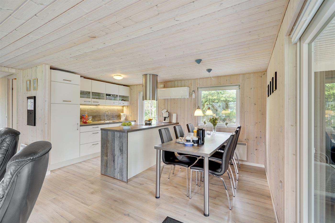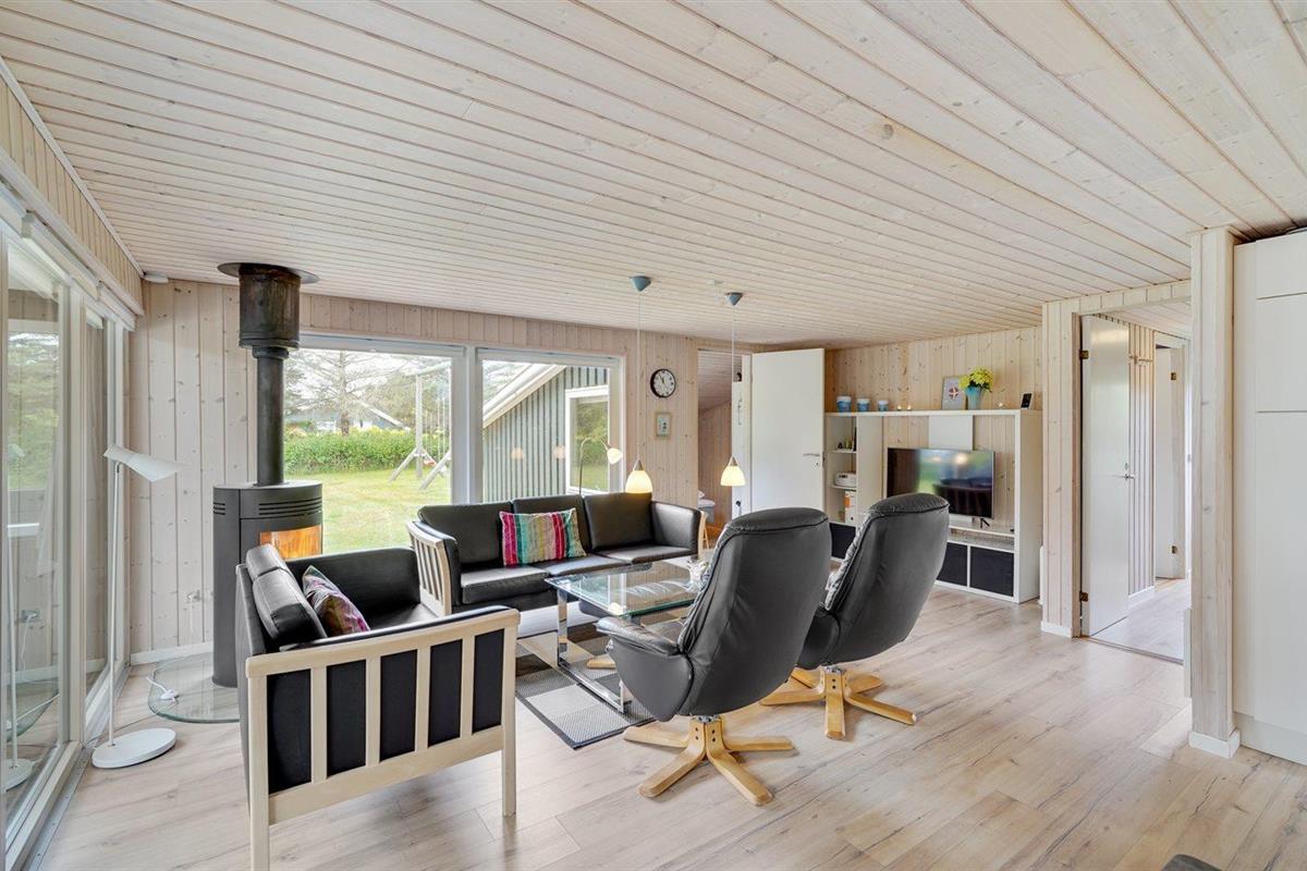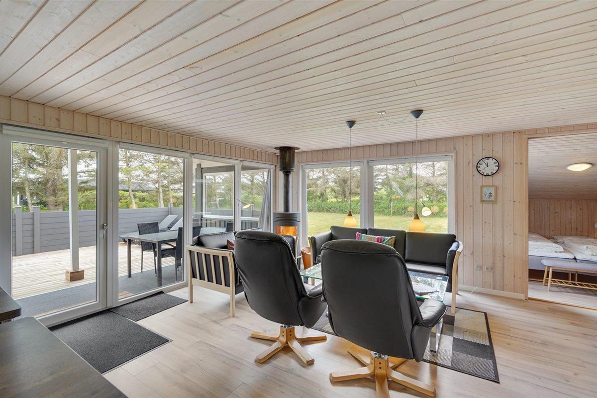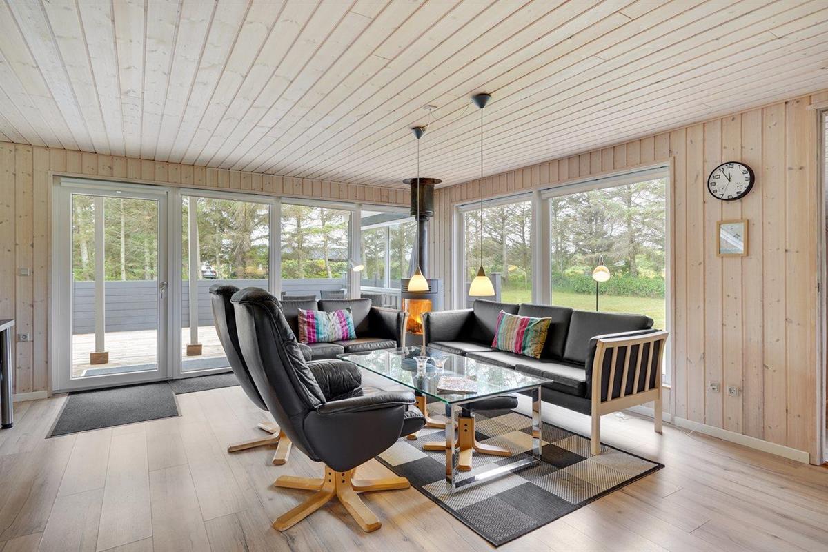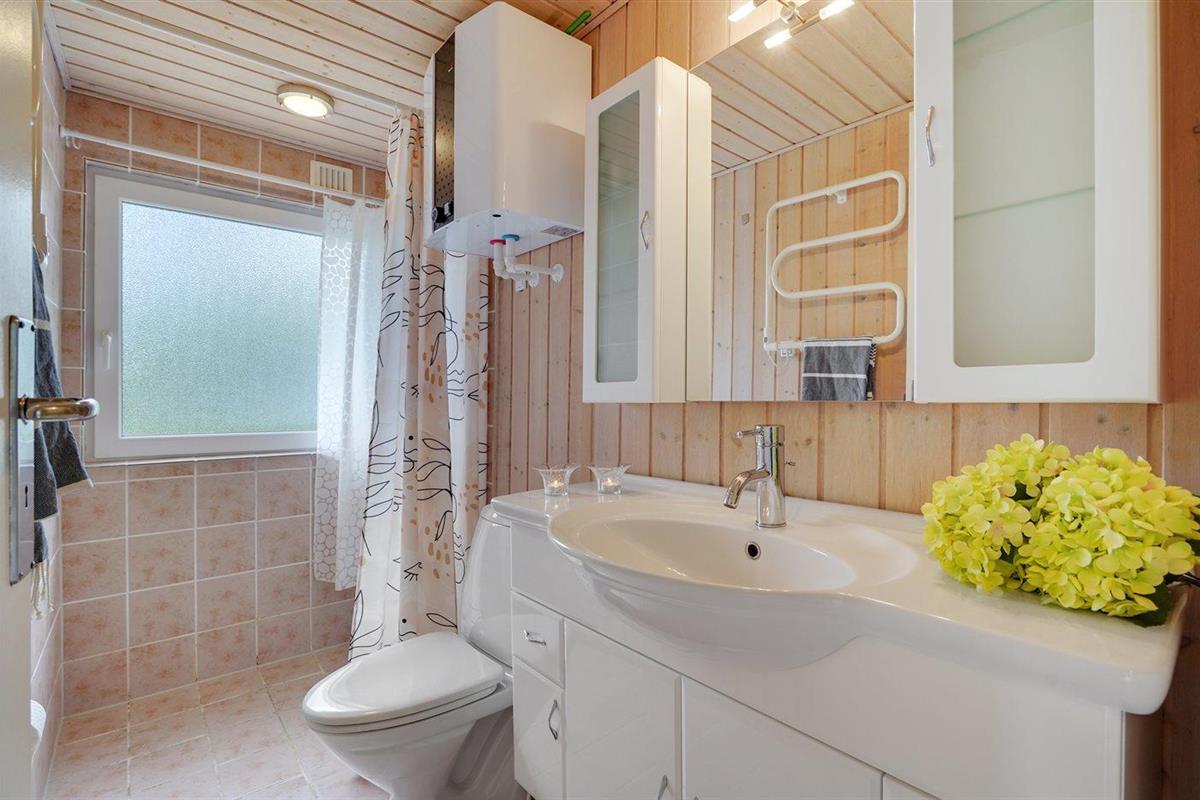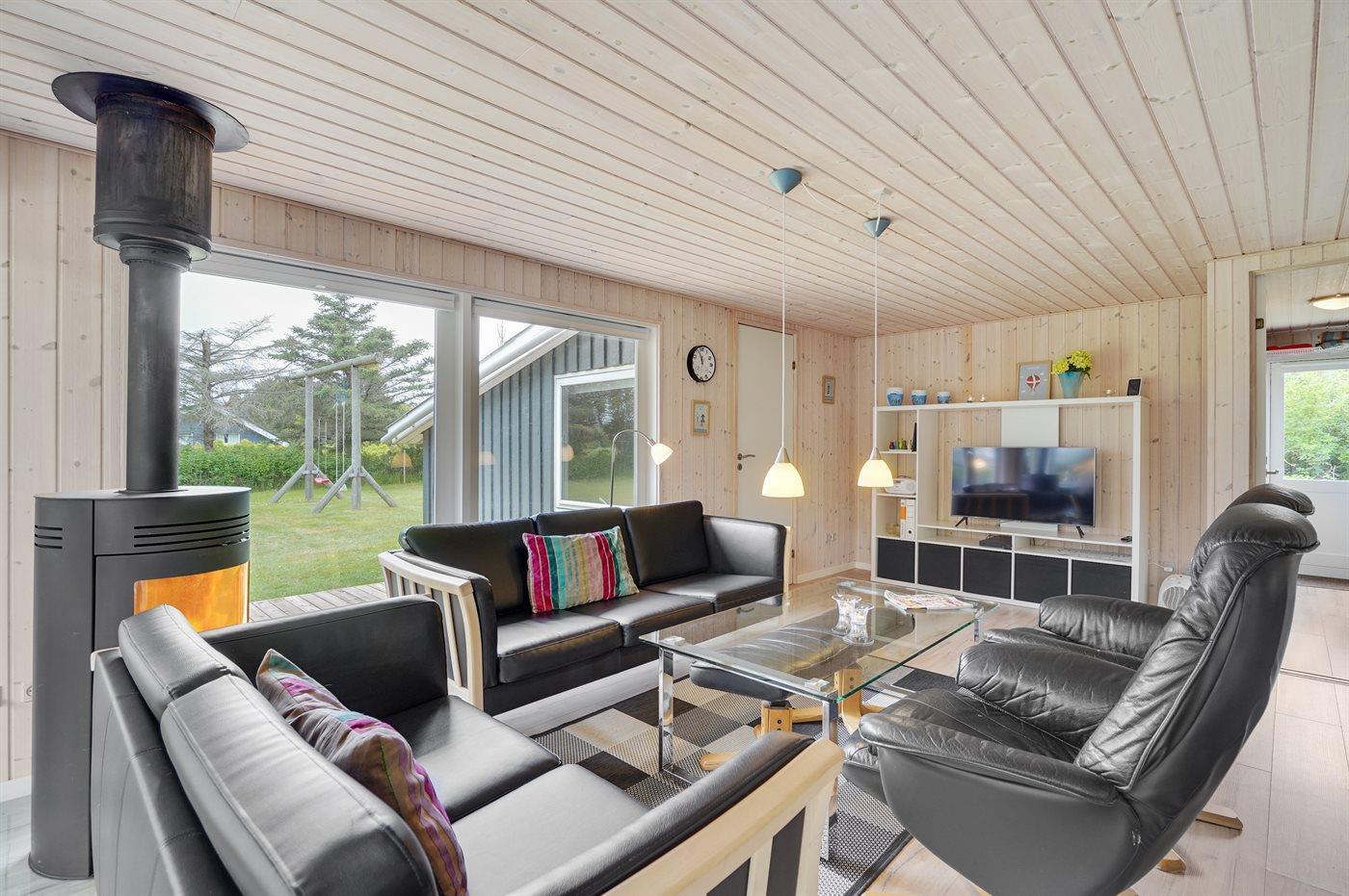 De vakantiewoning is gelegen op een 1200 m² groot natuural grond. De grond is omheind. Afstand tot de zee 1100 m. Afstand tot de fjord 700 m. Dichtstbijzijnde winkel 200 m. Bij de vakantiewoning hoort 70 m² terras. Daarnaast is er een 20 m² groot overdekt terras. Gereedschapsruimte. Schommel. Zandbak. Parkeerplaats bij het huis.
