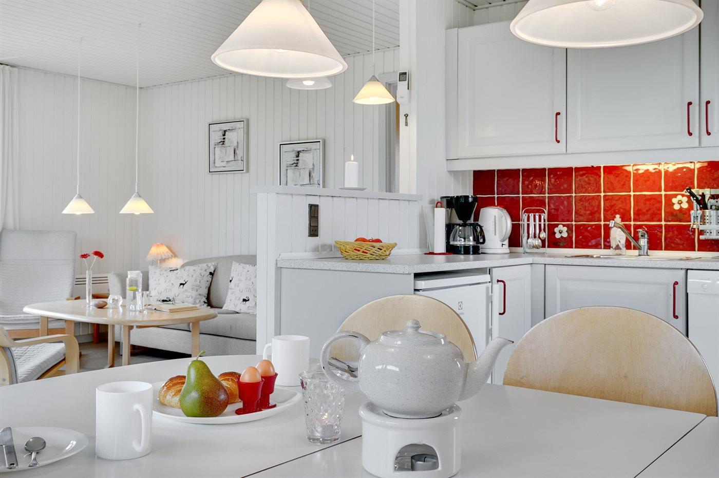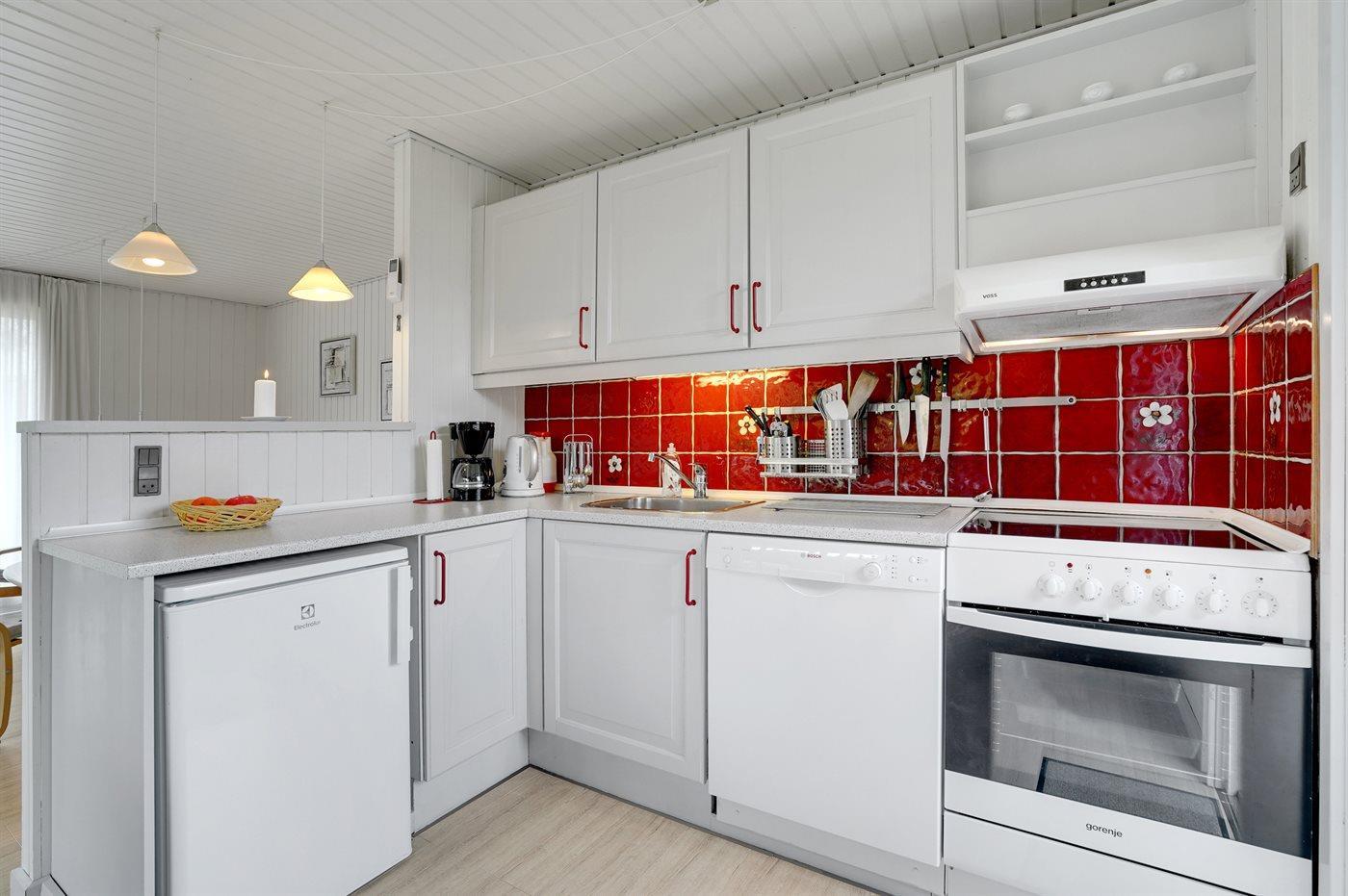 De keuken is uitgerust met koelkast Er is 4 elektrische kookplaten, bakoven en vaatwasser.
