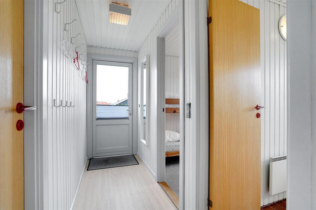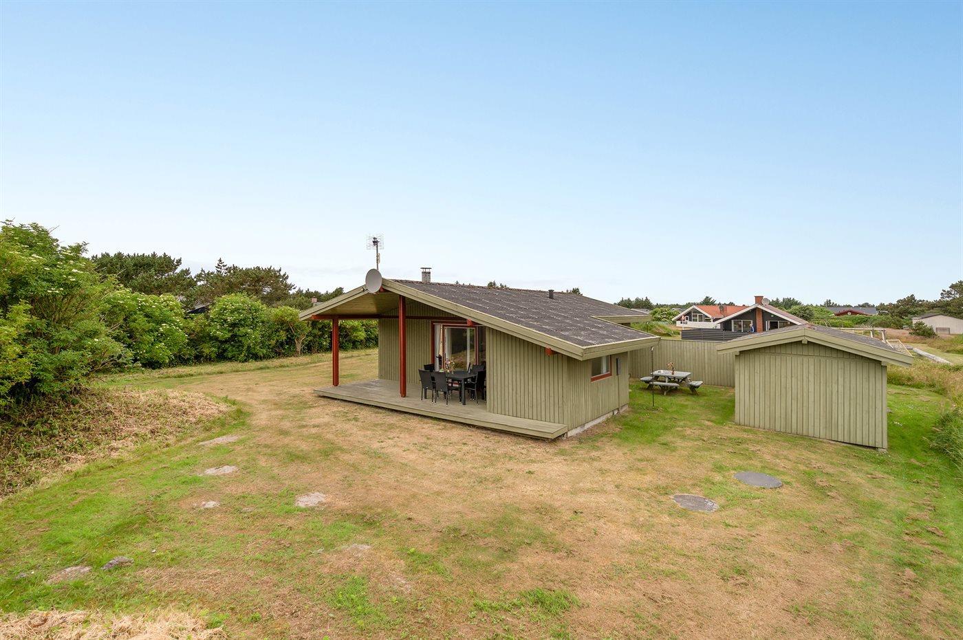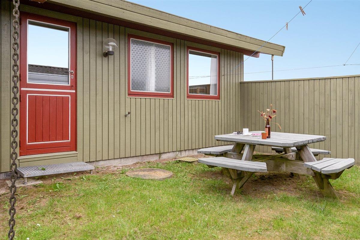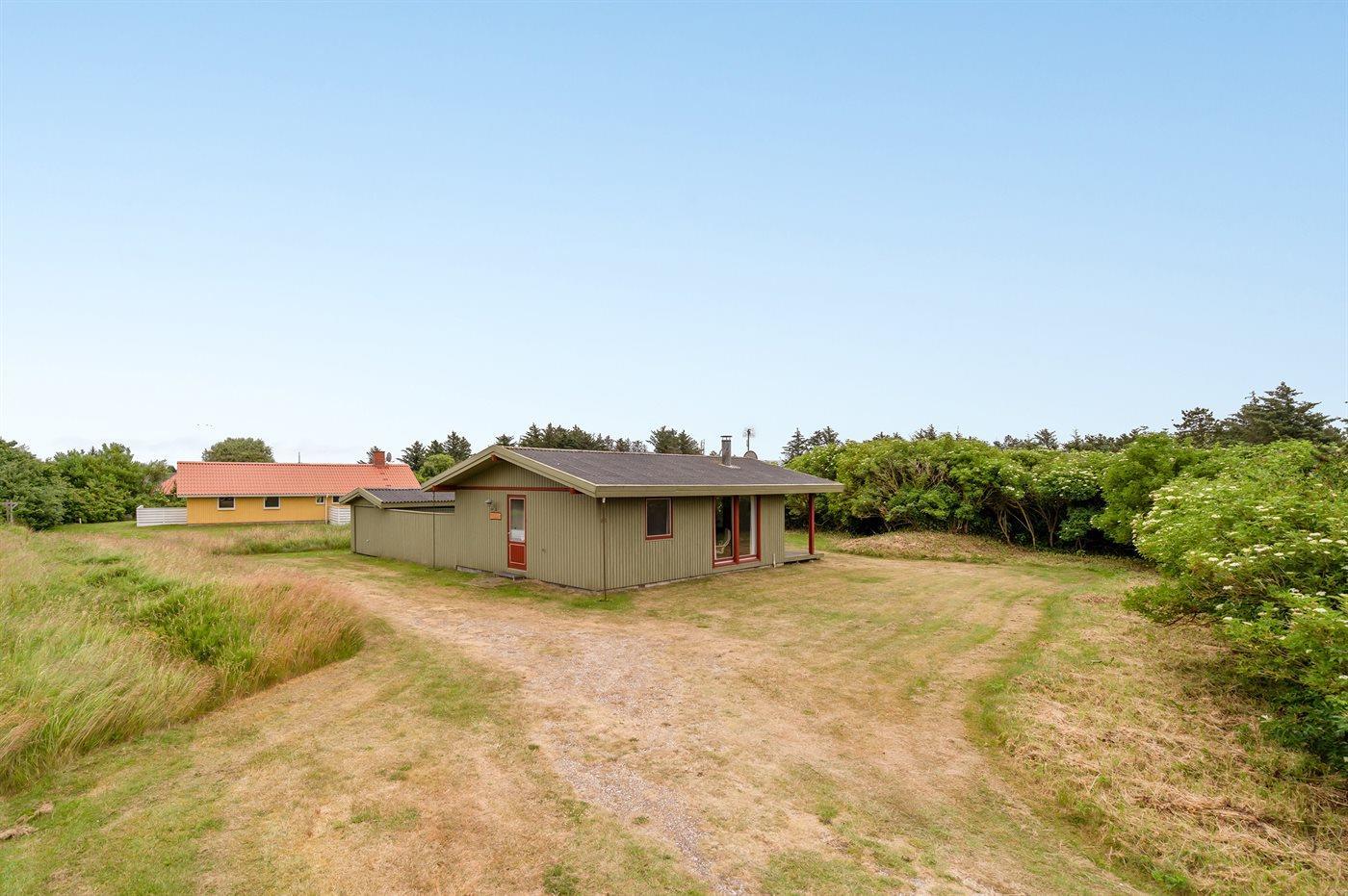 De vakantiewoning is gelegen op een 1204 m² groot natuural grond. Afstand tot de zee 950 m. Afstand tot de fjord 1300 m. Dichtstbijzijnde winkel 650 m. Daarnaast is er een 15 m² groot overdekt terras. Gereedschapsruimte.Garage ter beschikking.