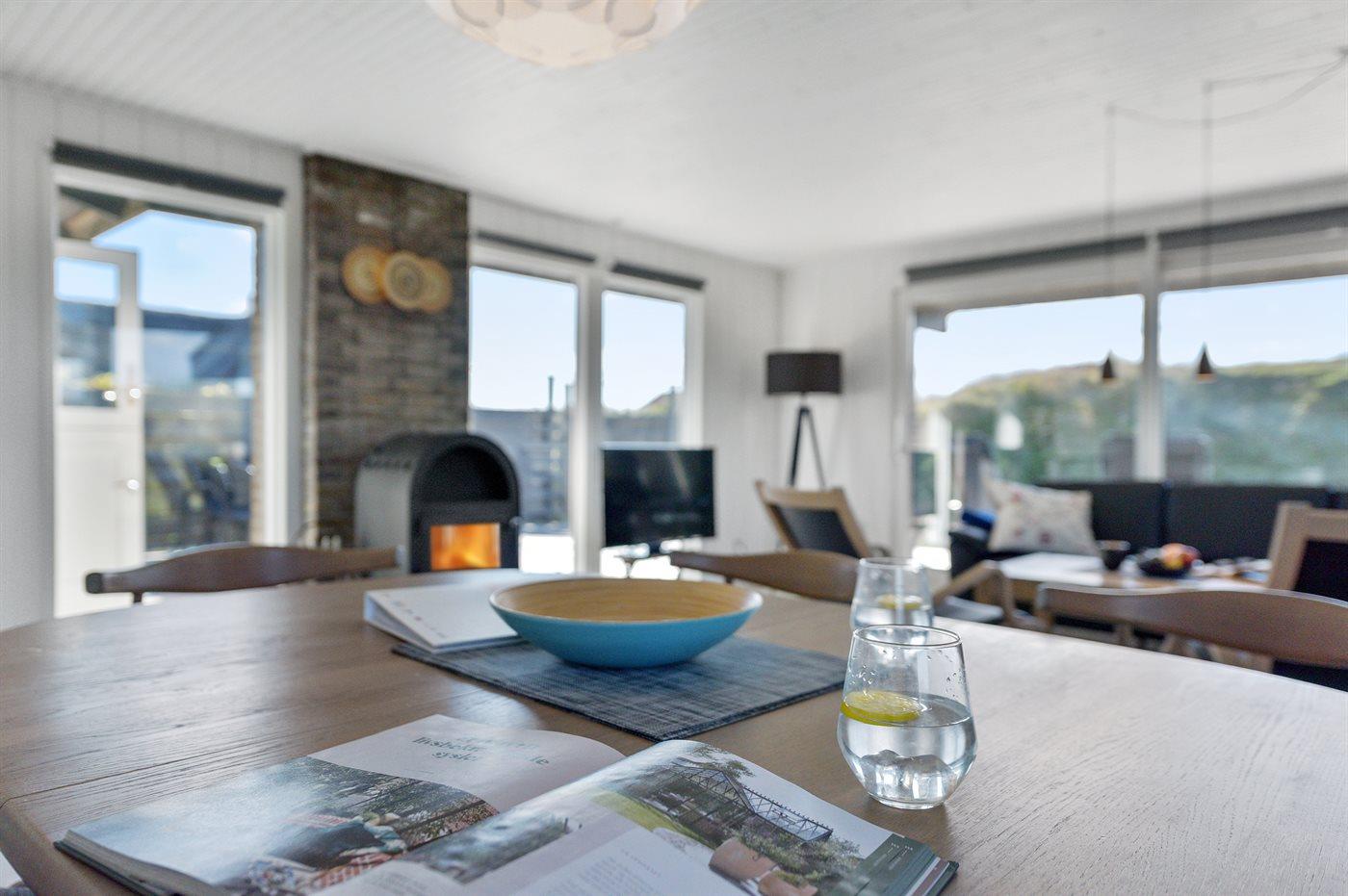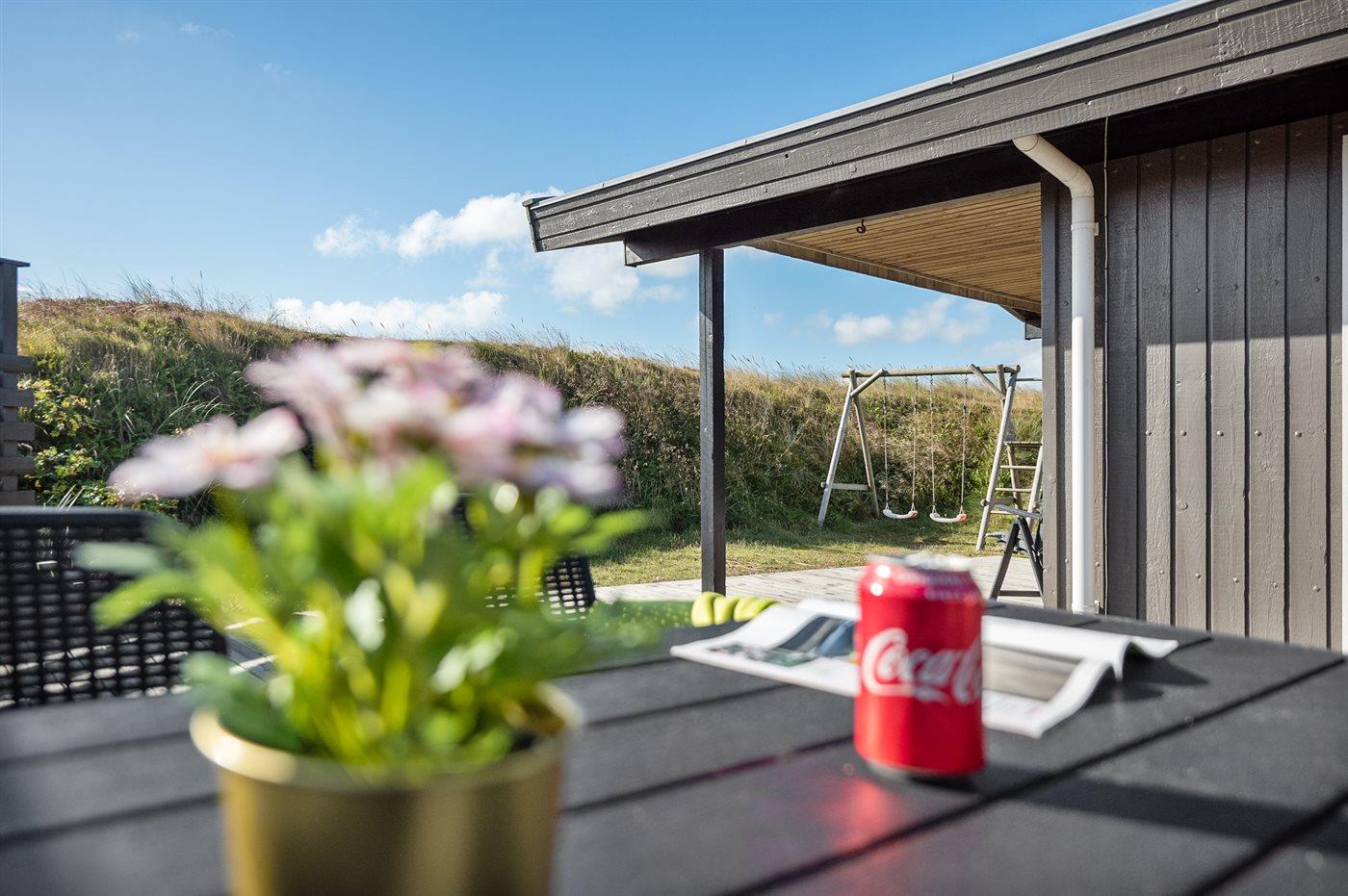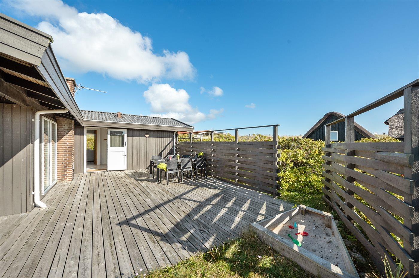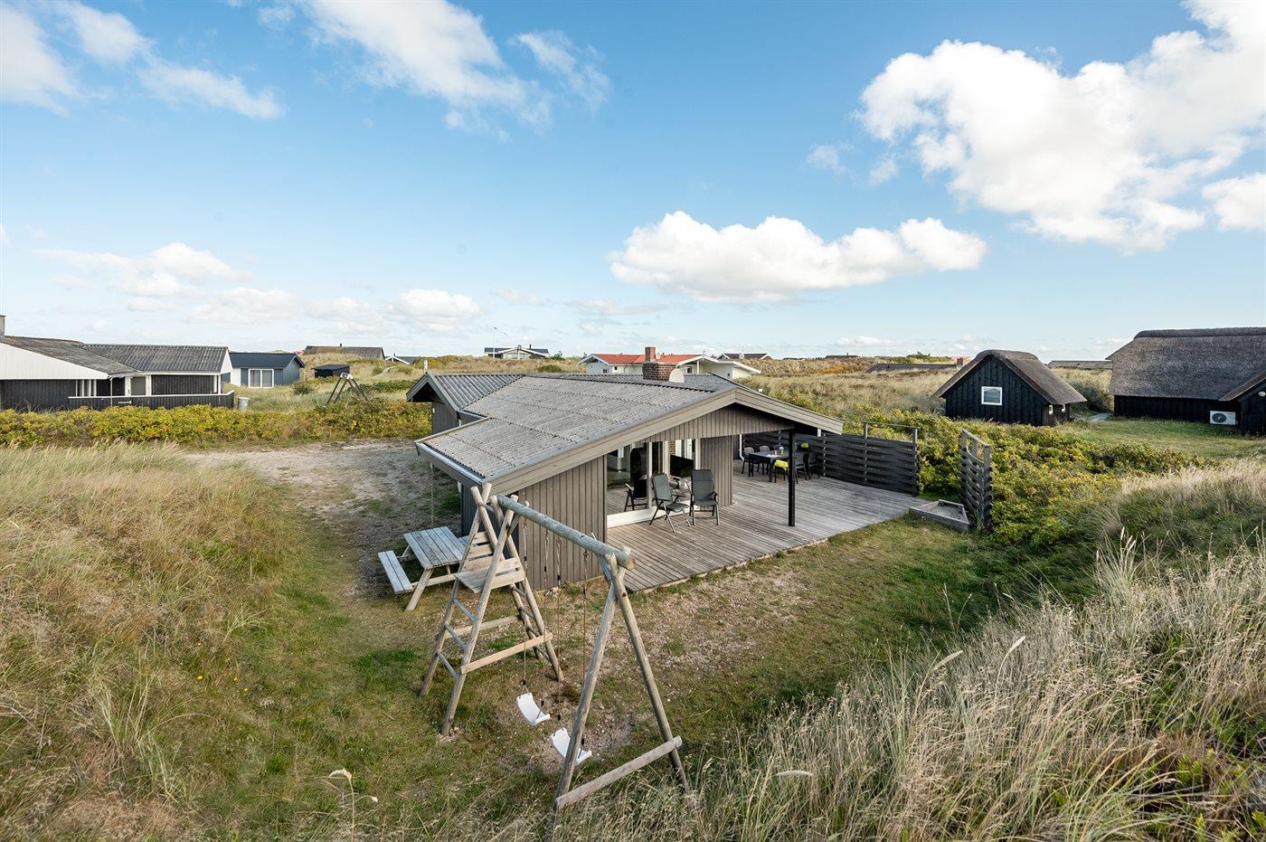 De vakantiewoning is gelegen op een 1585 m² groot Duingrond. Afstand tot de zee 560 m. Afstand tot de fjord 1200 m. Dichtstbijzijnde winkel 1000 m. Bij de vakantiewoning hoort 45 m² terras. Daarnaast is er een 10 m² groot overdekt terras. Gereedschapsruimte. Schommel. Zandbak. Parkeerplaats bij het huis.