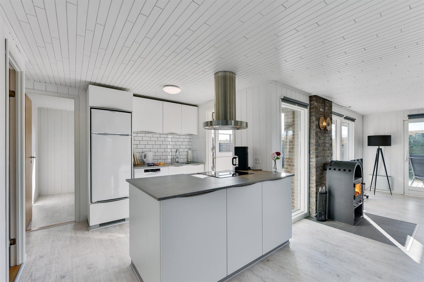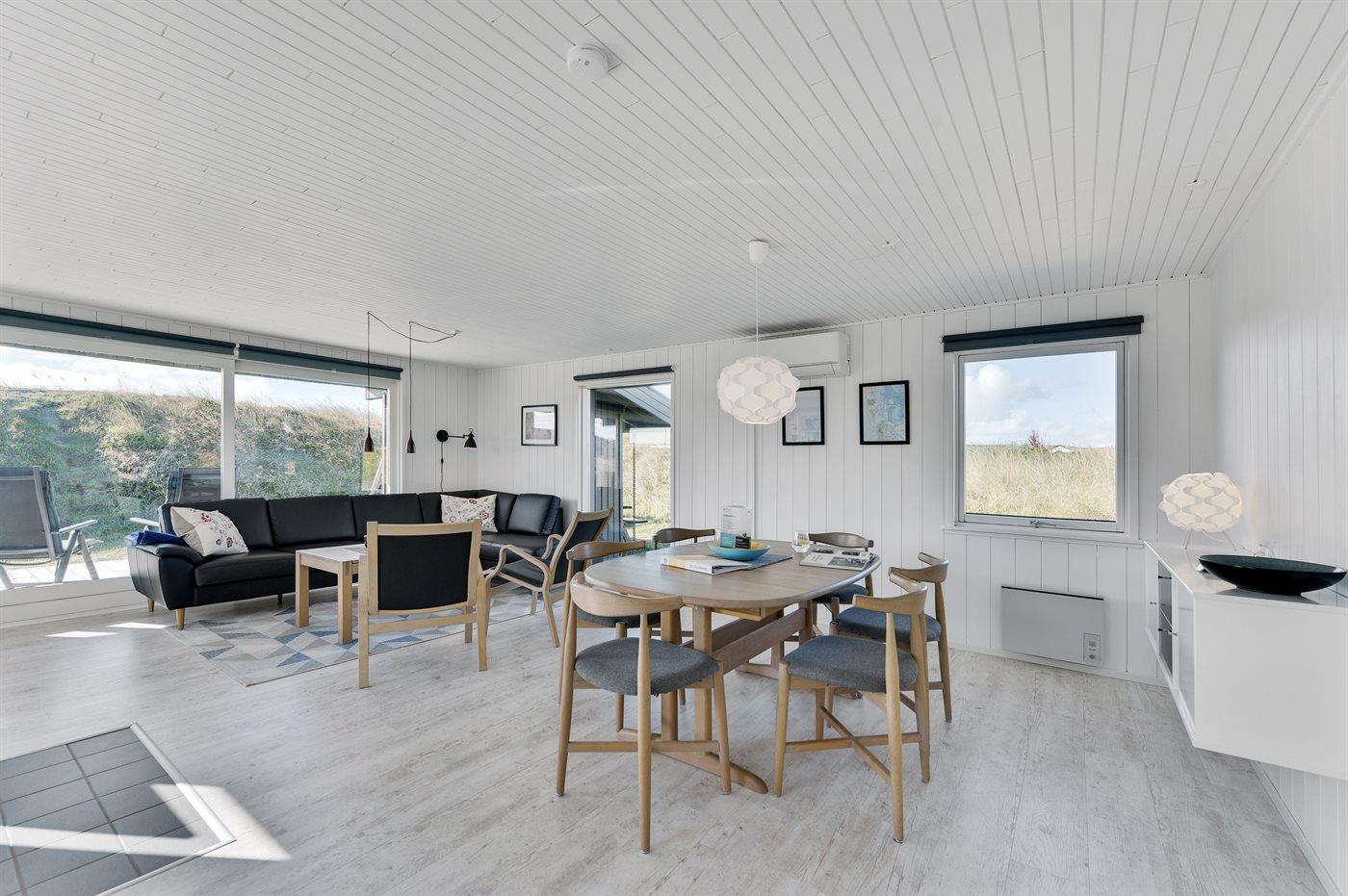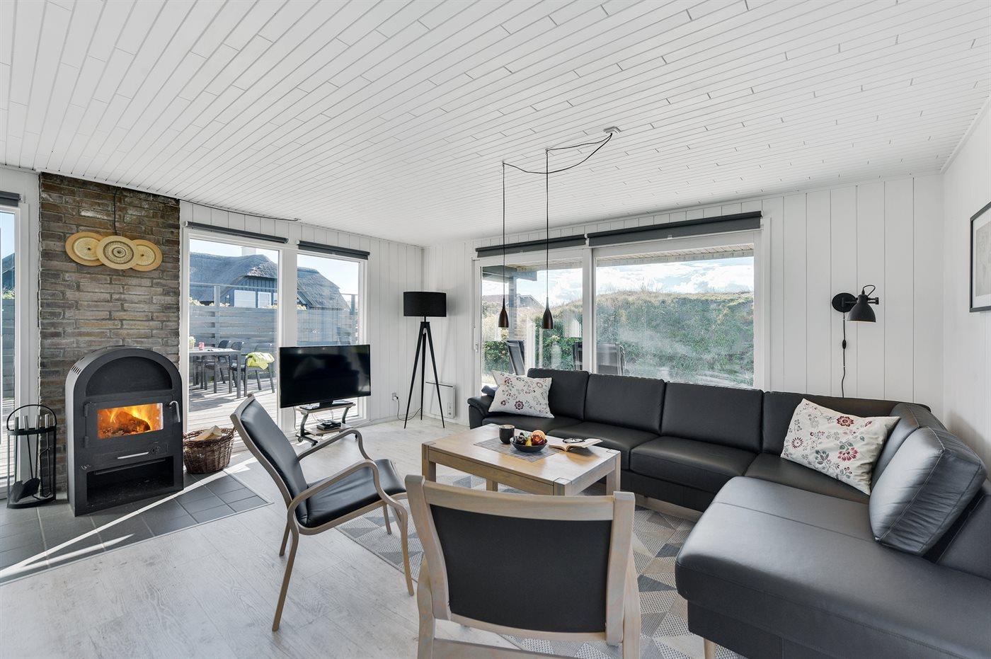 De vakantiewoning is gelegen op een 1585 m² groot Duingrond. Afstand tot de zee 560 m. Afstand tot de fjord 1200 m. Dichtstbijzijnde winkel 1000 m. Bij de vakantiewoning hoort 45 m² terras. Daarnaast is er een 10 m² groot overdekt terras. Gereedschapsruimte. Schommel. Zandbak. Parkeerplaats bij het huis.