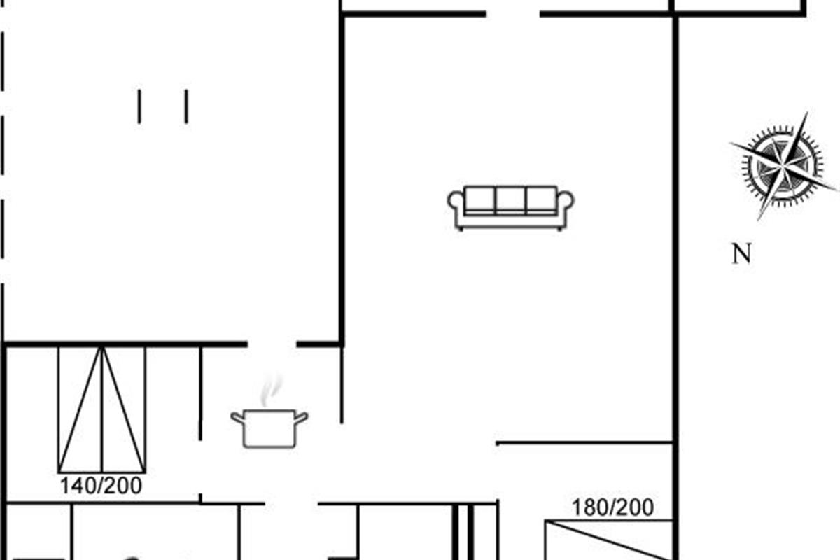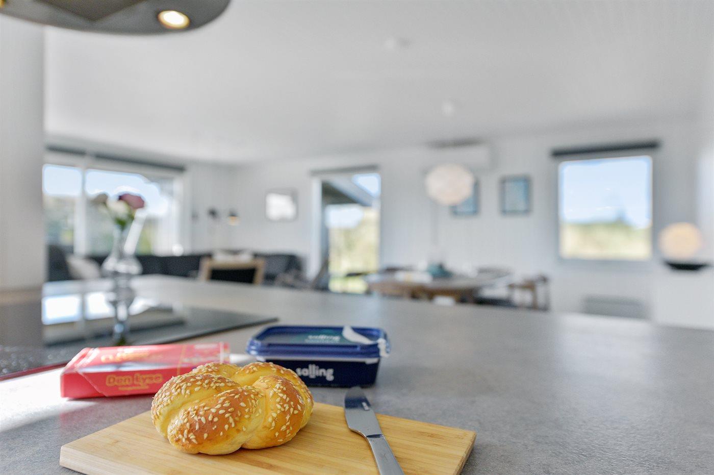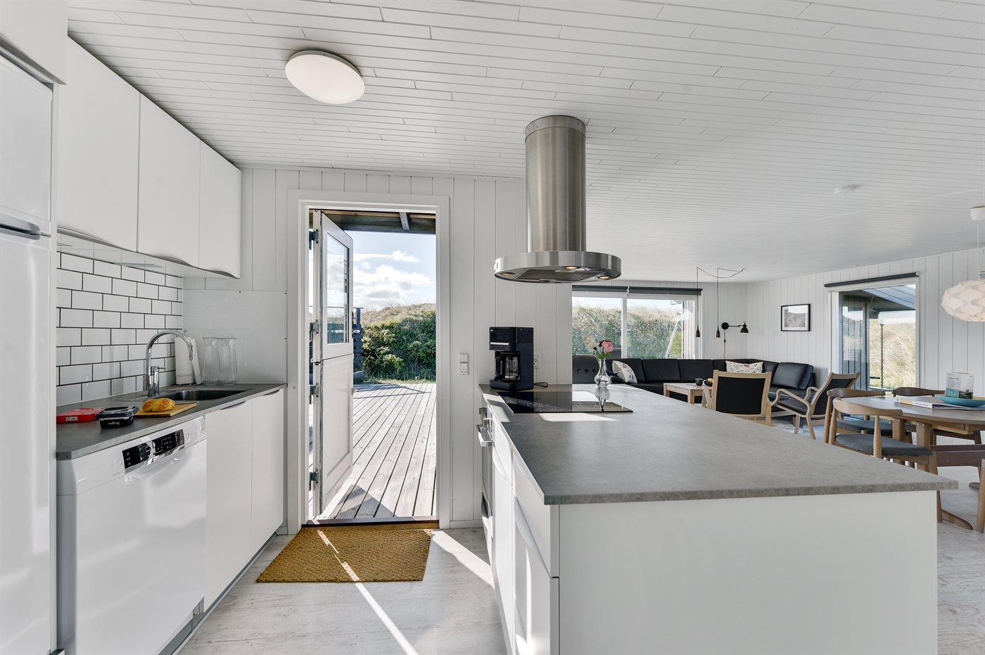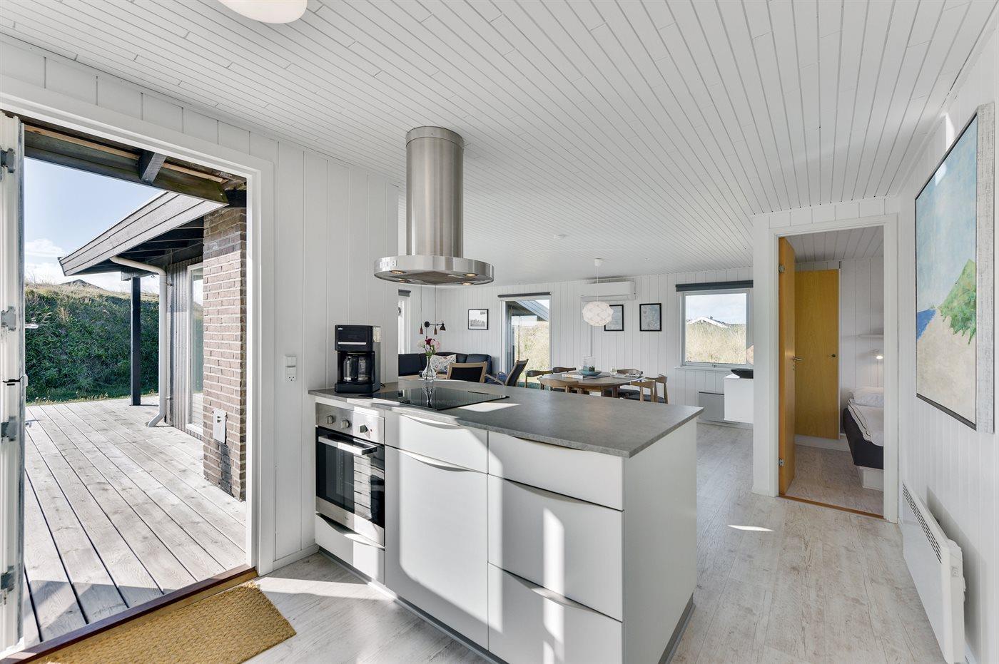 De vakantiewoning is gelegen op een 1585 m² groot Duingrond. Afstand tot de zee 560 m. Afstand tot de fjord 1200 m. Dichtstbijzijnde winkel 1000 m. Bij de vakantiewoning hoort 45 m² terras. Daarnaast is er een 10 m² groot overdekt terras. Gereedschapsruimte. Schommel. Zandbak. Parkeerplaats bij het huis.