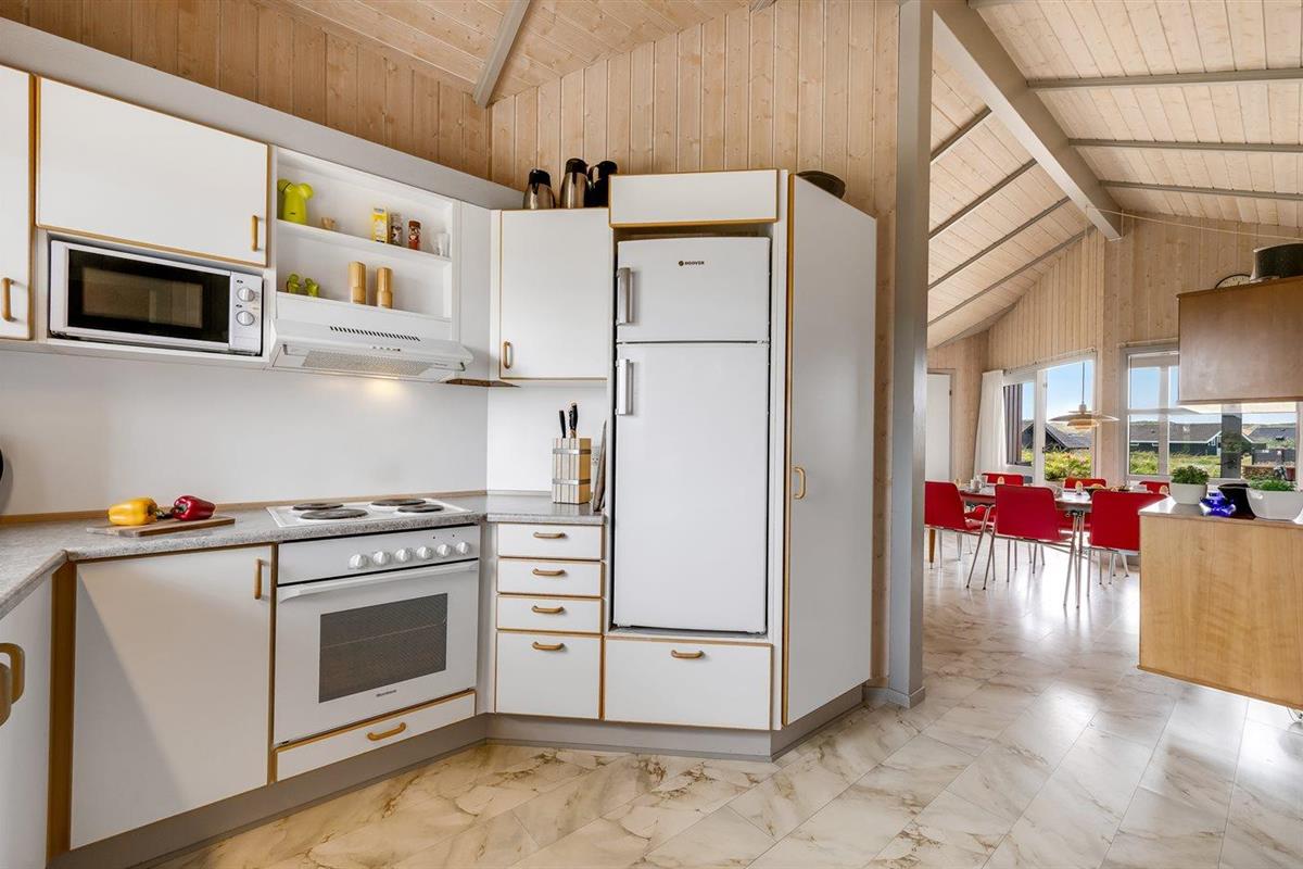 De keuken is uitgerust met koelkast Er is 4 elektrische kookplaten, bakoven, magnetron en vaatwasser.