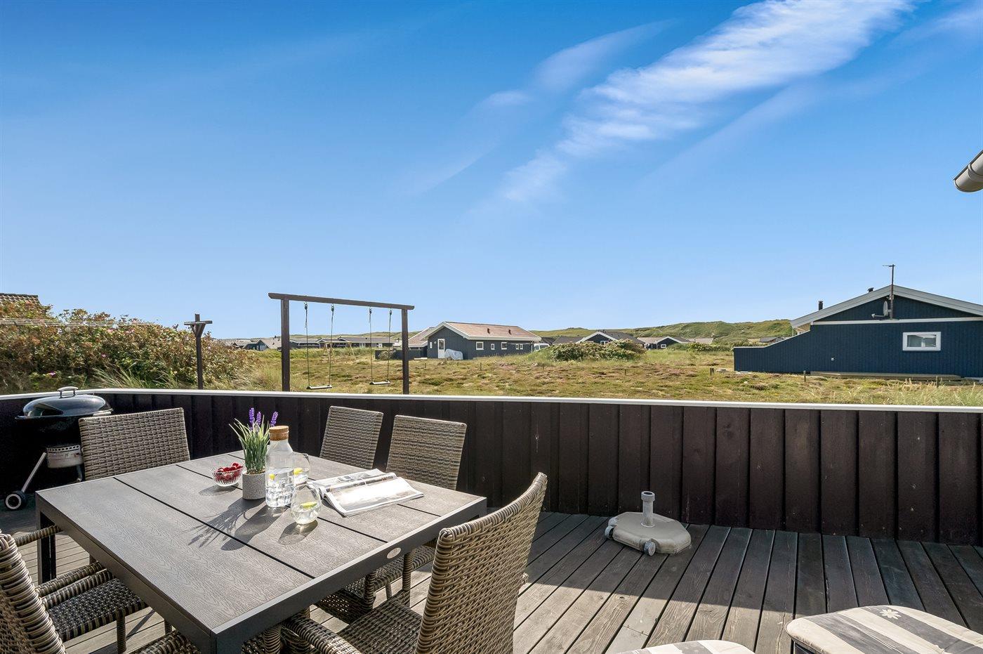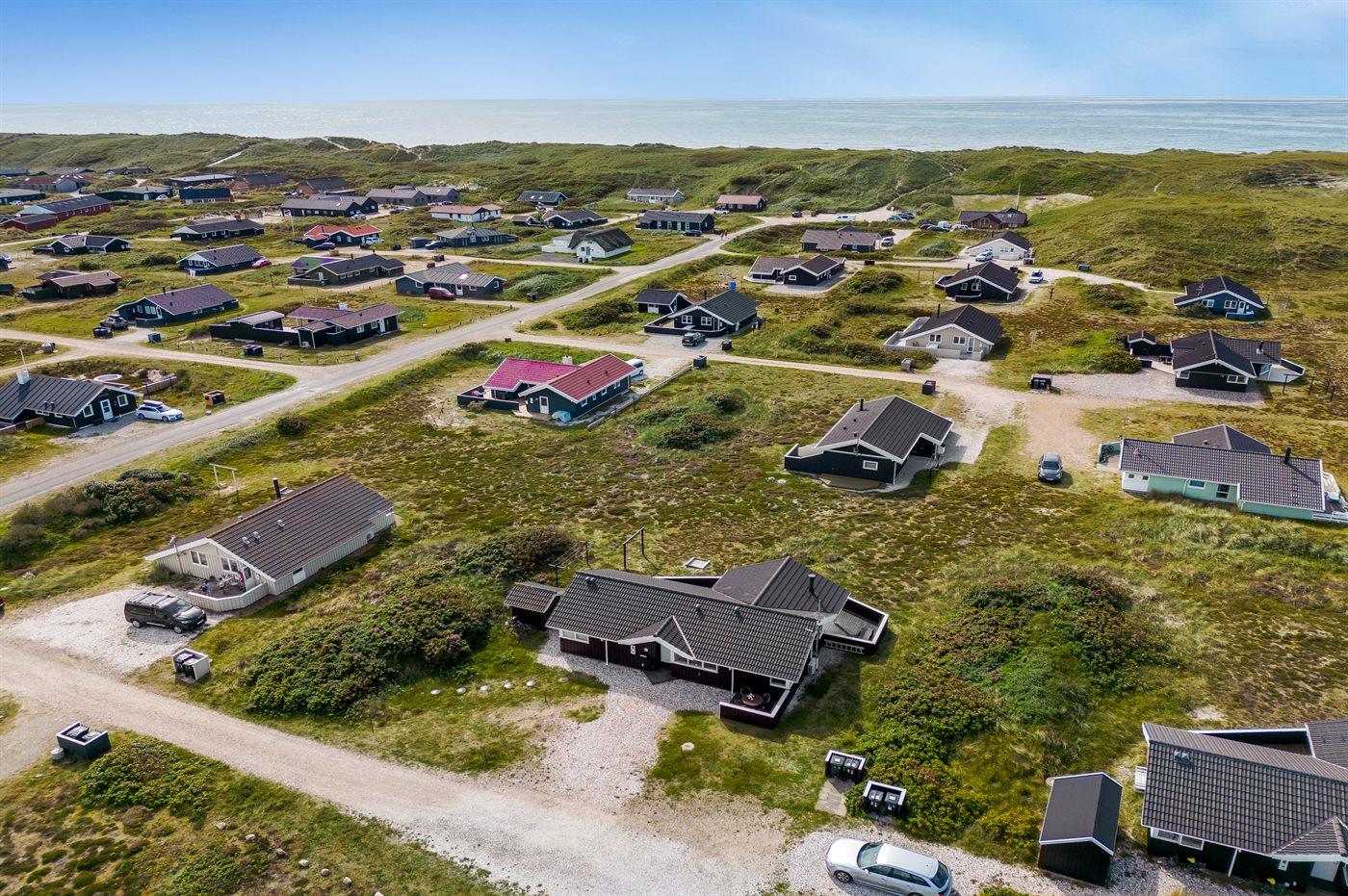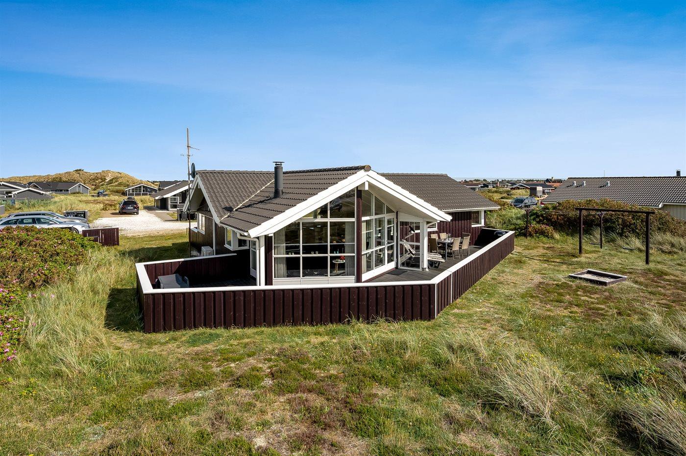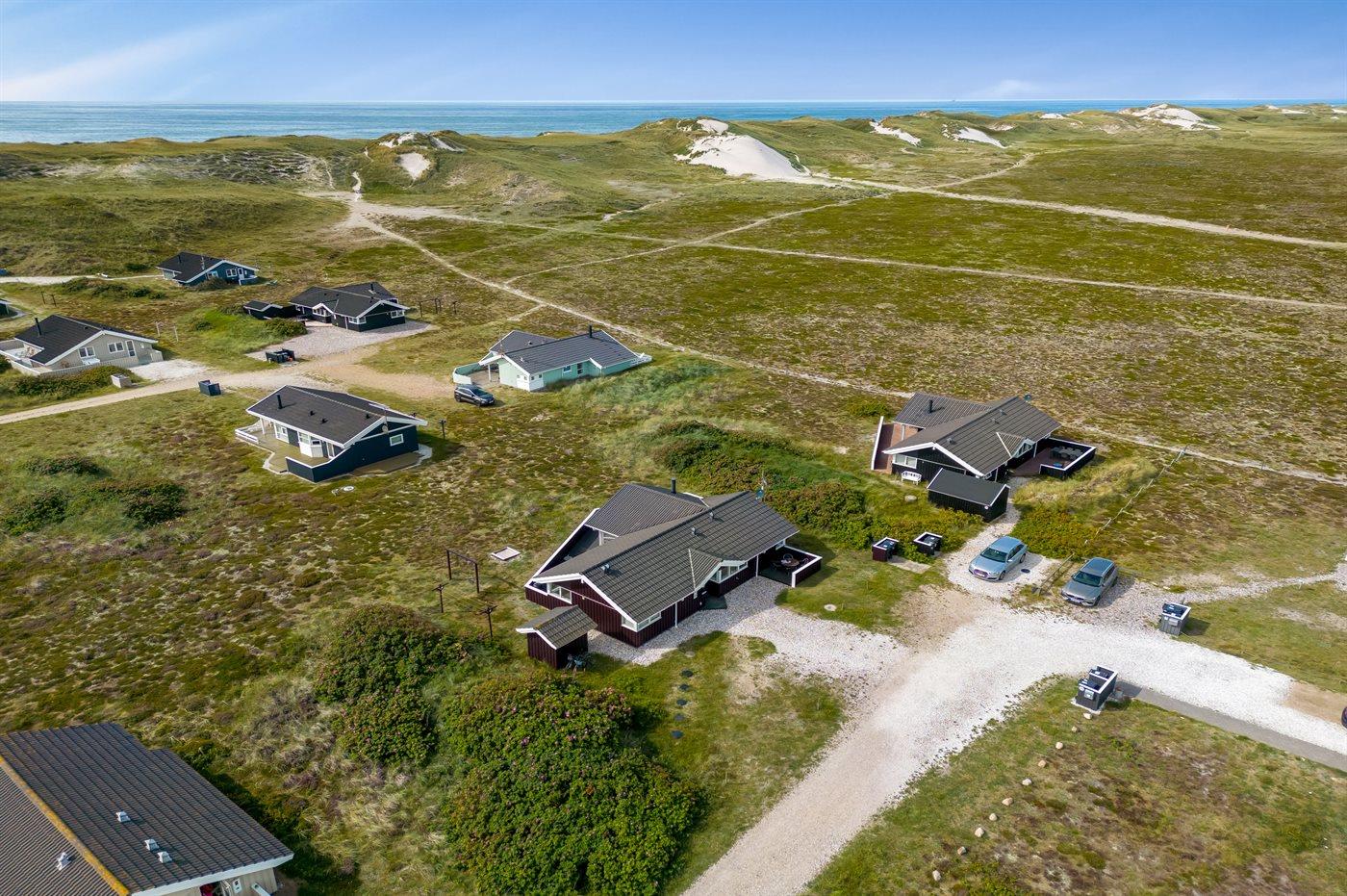 De vakantiewoning is gelegen op een 1350 m² groot Duingrond. Afstand tot de zee 300 m. Afstand tot de fjord 1200 m. Dichtstbijzijnde winkel 1200 m. Bij de vakantiewoning hoort 80 m² terras. Daarnaast is er een 13 m² groot overdekt terras. Waarvan in totaal 70 m² beschut terras. Gereedschapsruimte. Schommel. Zandbak. Parkeerplaats bij het huis.