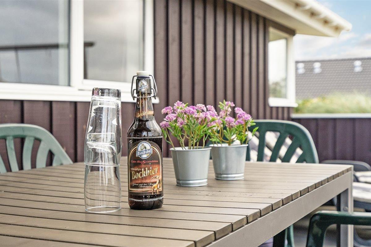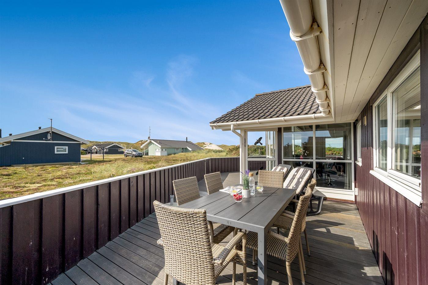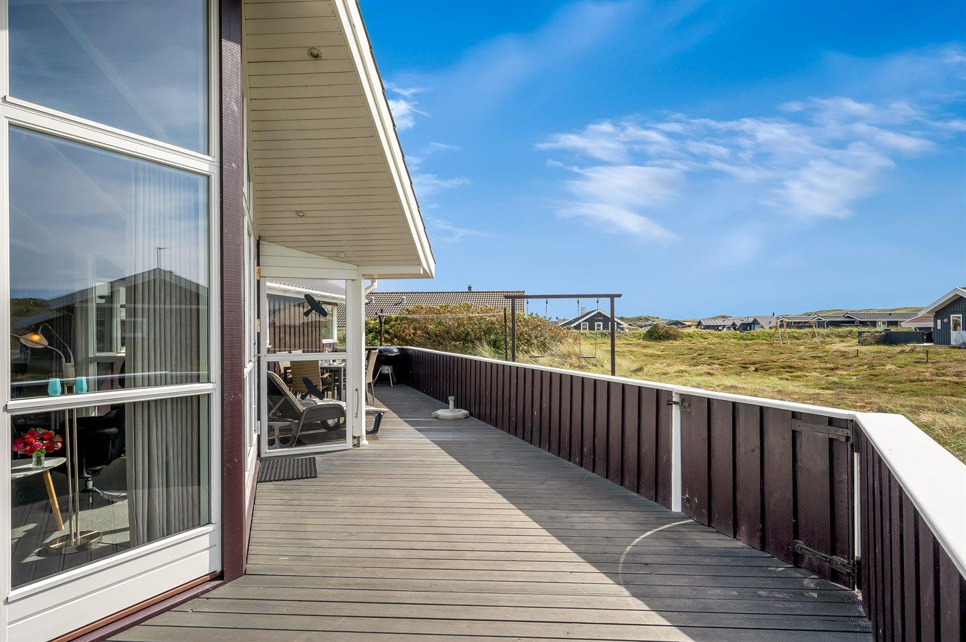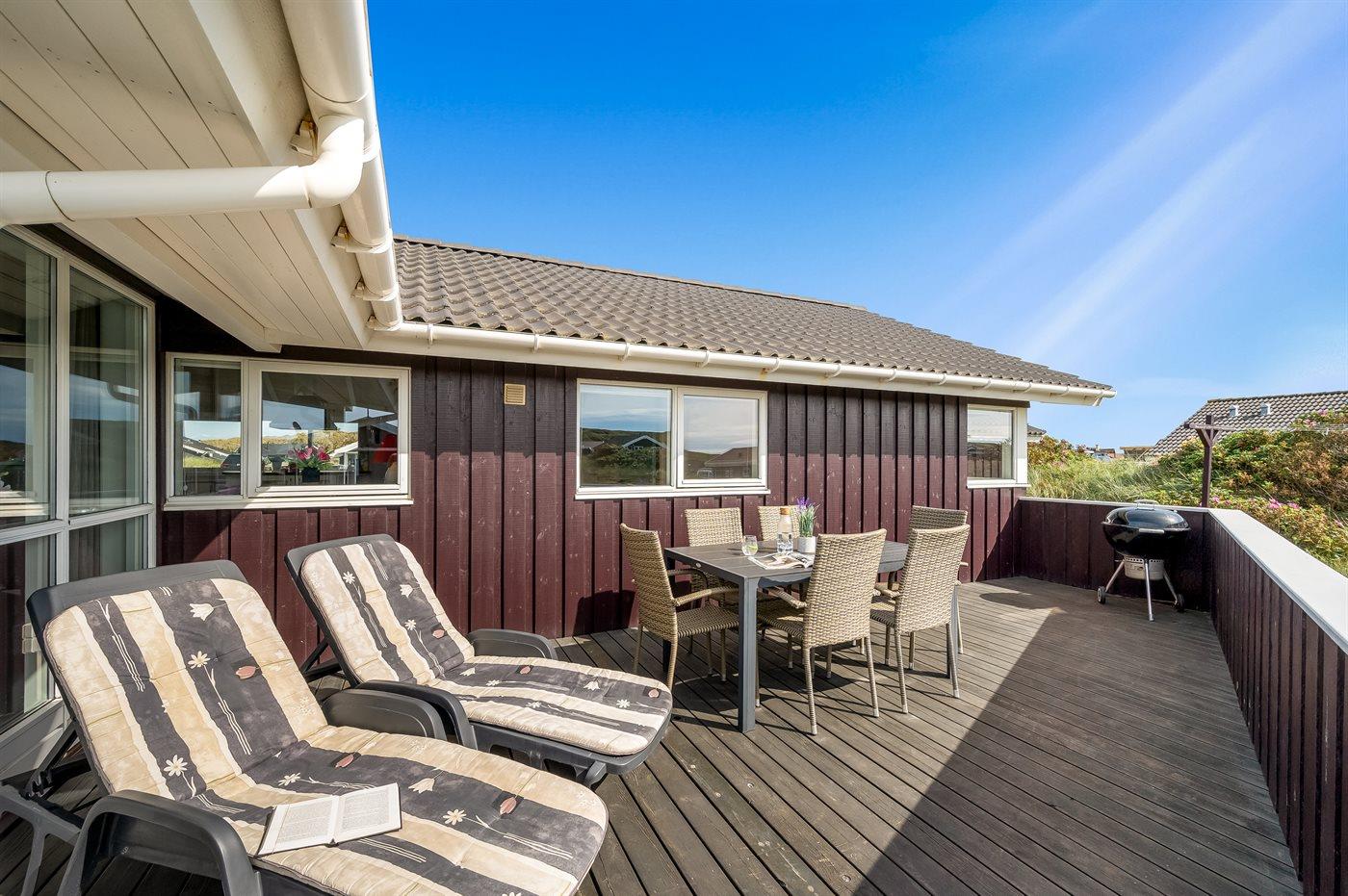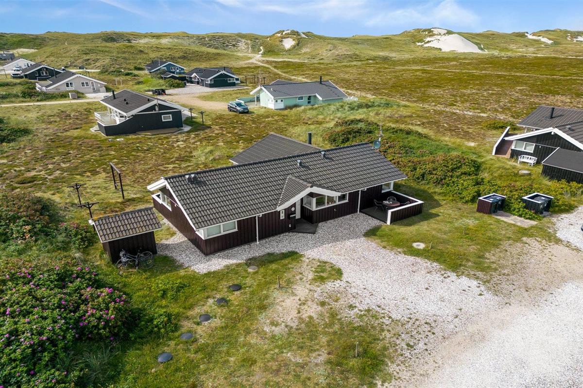 De vakantiewoning is gelegen op een 1350 m² groot Duingrond. Afstand tot de zee 300 m. Afstand tot de fjord 1200 m. Dichtstbijzijnde winkel 1200 m. Bij de vakantiewoning hoort 80 m² terras. Daarnaast is er een 13 m² groot overdekt terras. Waarvan in totaal 70 m² beschut terras. Gereedschapsruimte. Schommel. Zandbak. Parkeerplaats bij het huis.