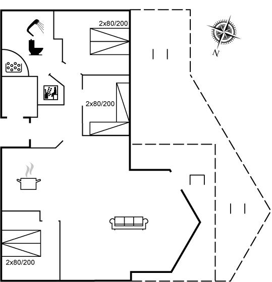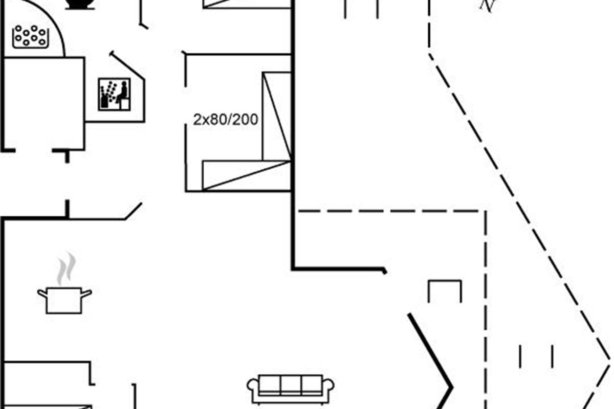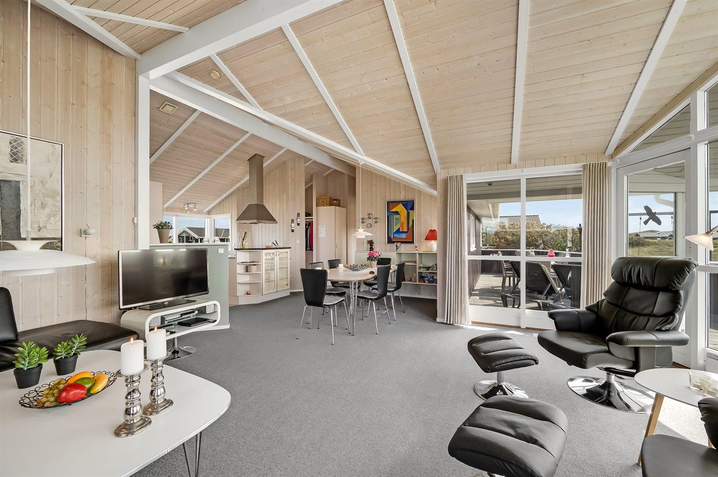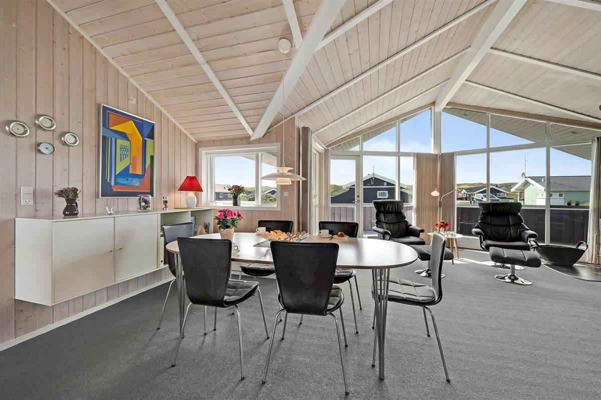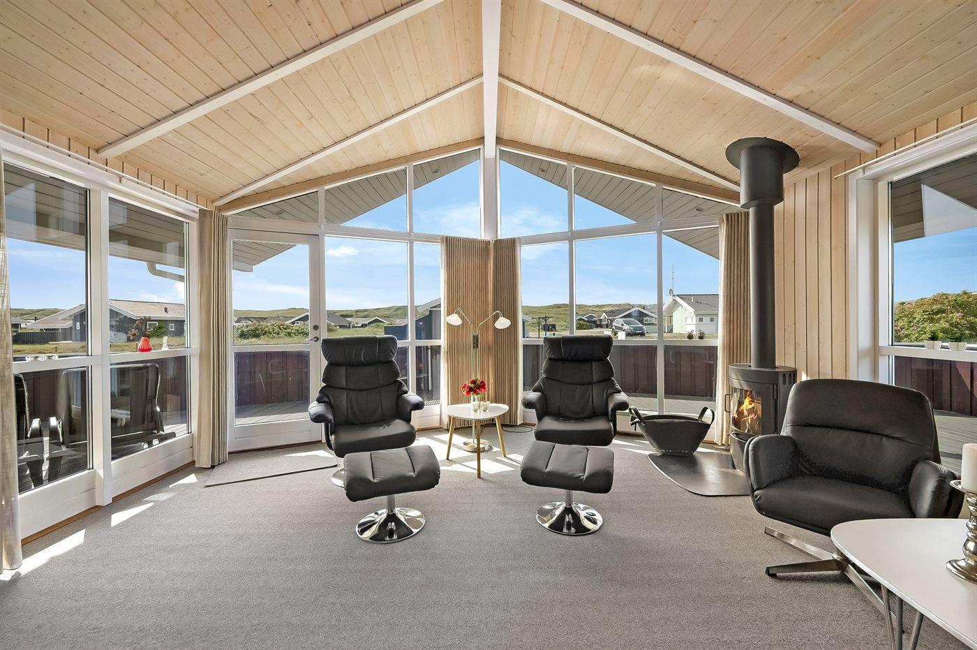 De vakantiewoning is gelegen op een 1350 m² groot Duingrond. Afstand tot de zee 300 m. Afstand tot de fjord 1200 m. Dichtstbijzijnde winkel 1200 m. Bij de vakantiewoning hoort 80 m² terras. Daarnaast is er een 13 m² groot overdekt terras. Waarvan in totaal 70 m² beschut terras. Gereedschapsruimte. Schommel. Zandbak. Parkeerplaats bij het huis.