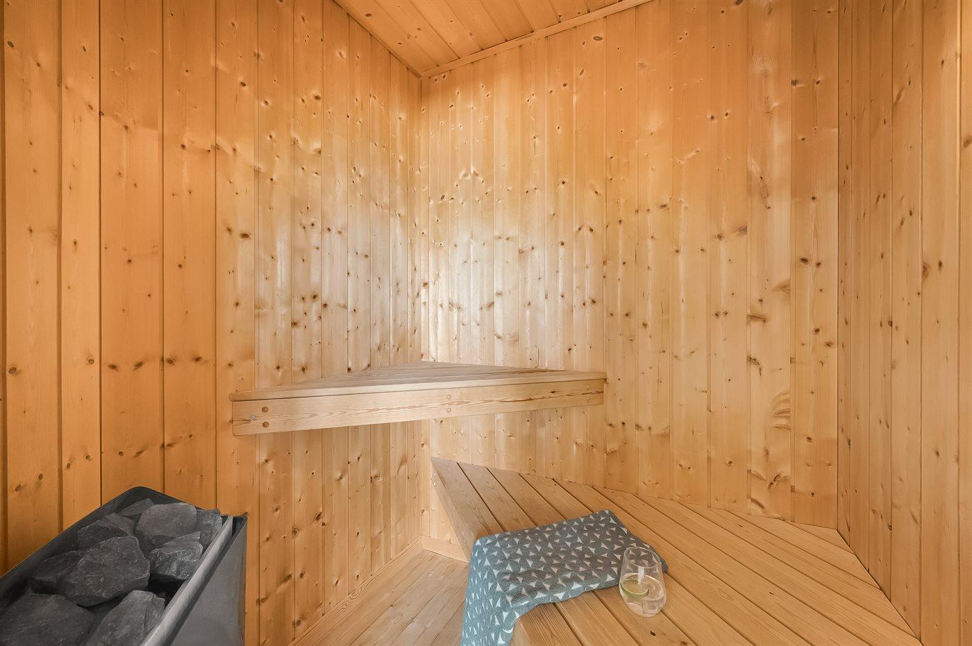 Er is 1 badkamer met douchehok en 1 toilet.. Er is vloerverwarming in 1 badkamer. Een föhn is aanwezig. De sauna biedt de gelegenheid tot ontspanning.