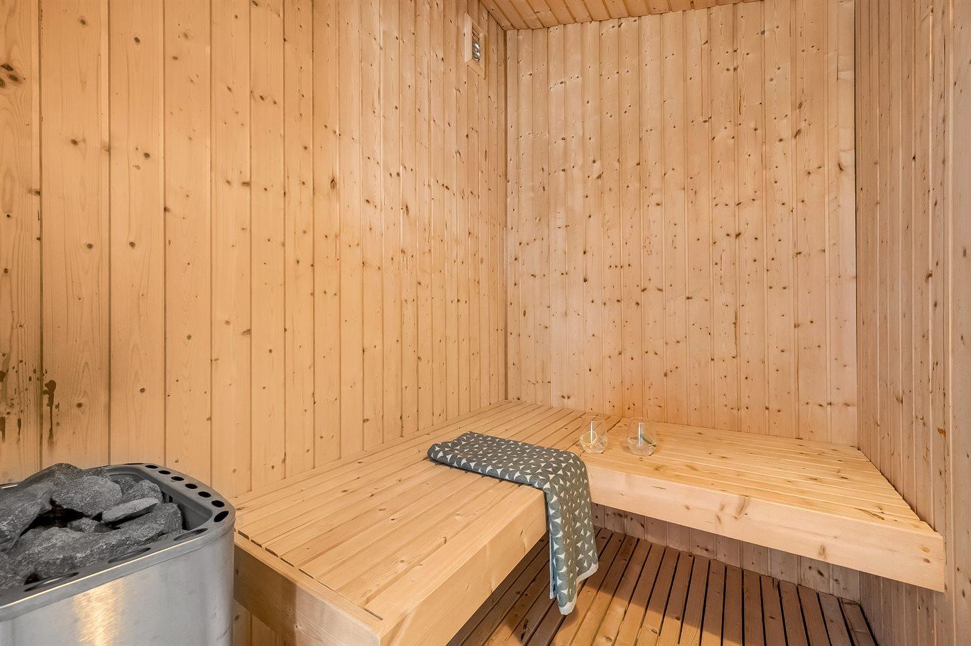 Er is 1 badkamer met douche en 1 toilet. De sauna biedt de gelegenheid tot ontspanning.
