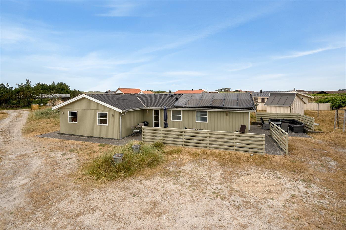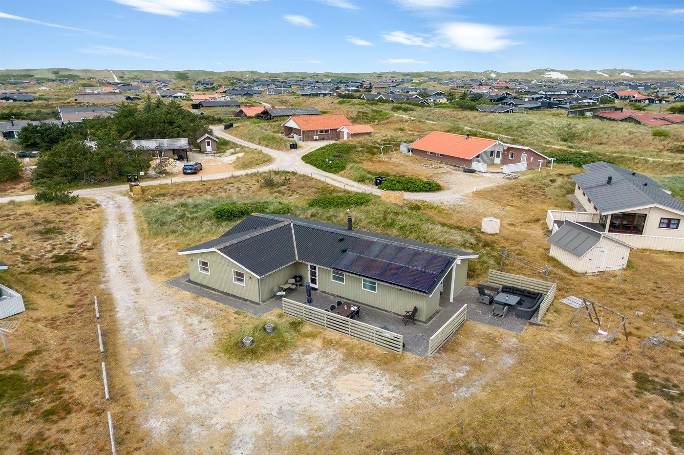 De vakantiewoning is gelegen op een 1275 m² groot natuural grond. Afstand tot de zee 600 m. Dichtstbijzijnde winkel 600 m. Bij de vakantiewoning hoort 50 m² terras. Daarnaast is er een 14 m² groot overdekt terras. Schommel. Zandbak. Het huis heeft een stopcontact voor het opladen van een elektrische auto. Parkeerplaats bij het huis.