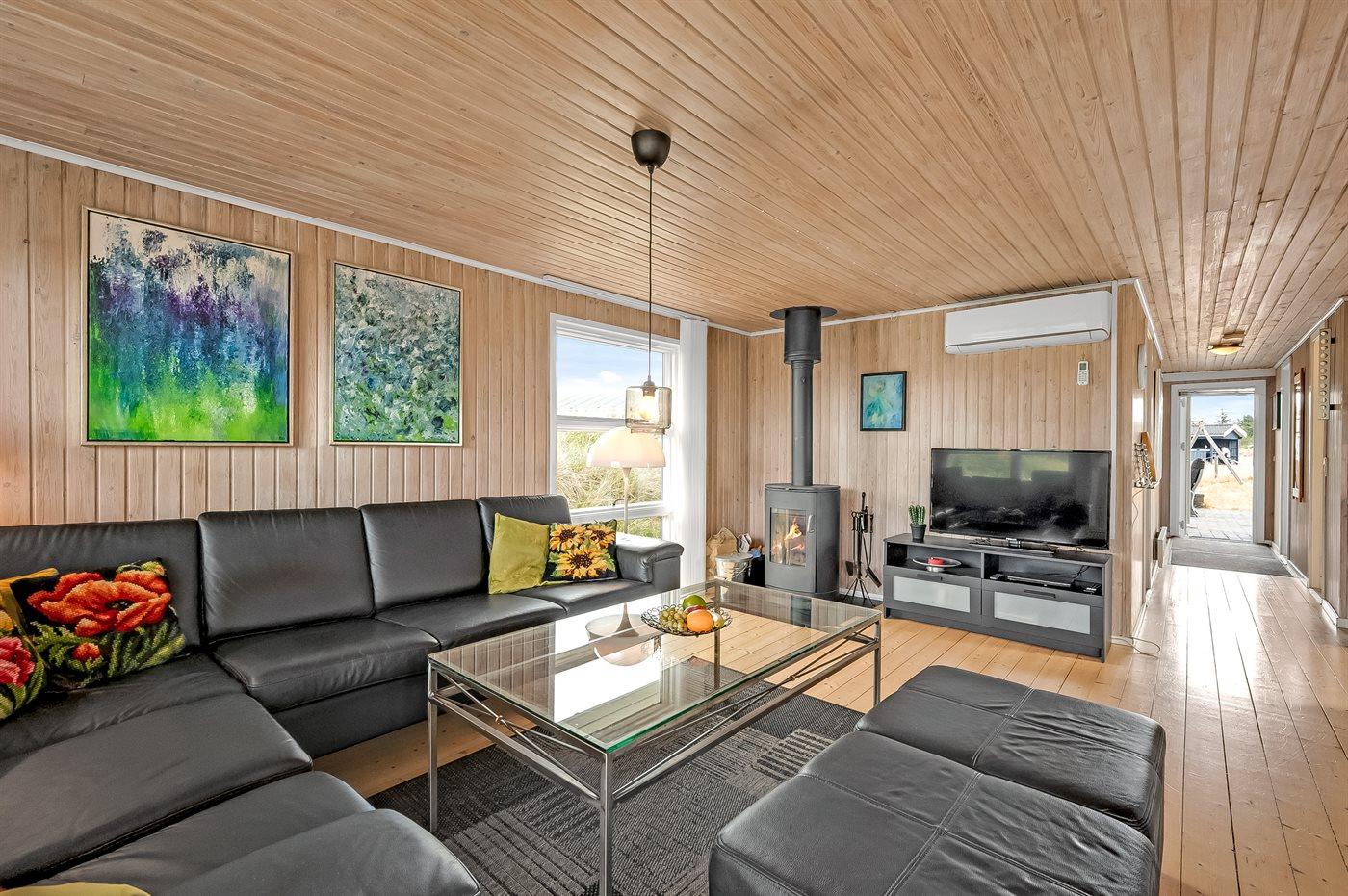 Ruim vakantiehuis in Hvide Sande met sauna, terras, en nabij zee, ideaal voor gezinnen en huisdieren.