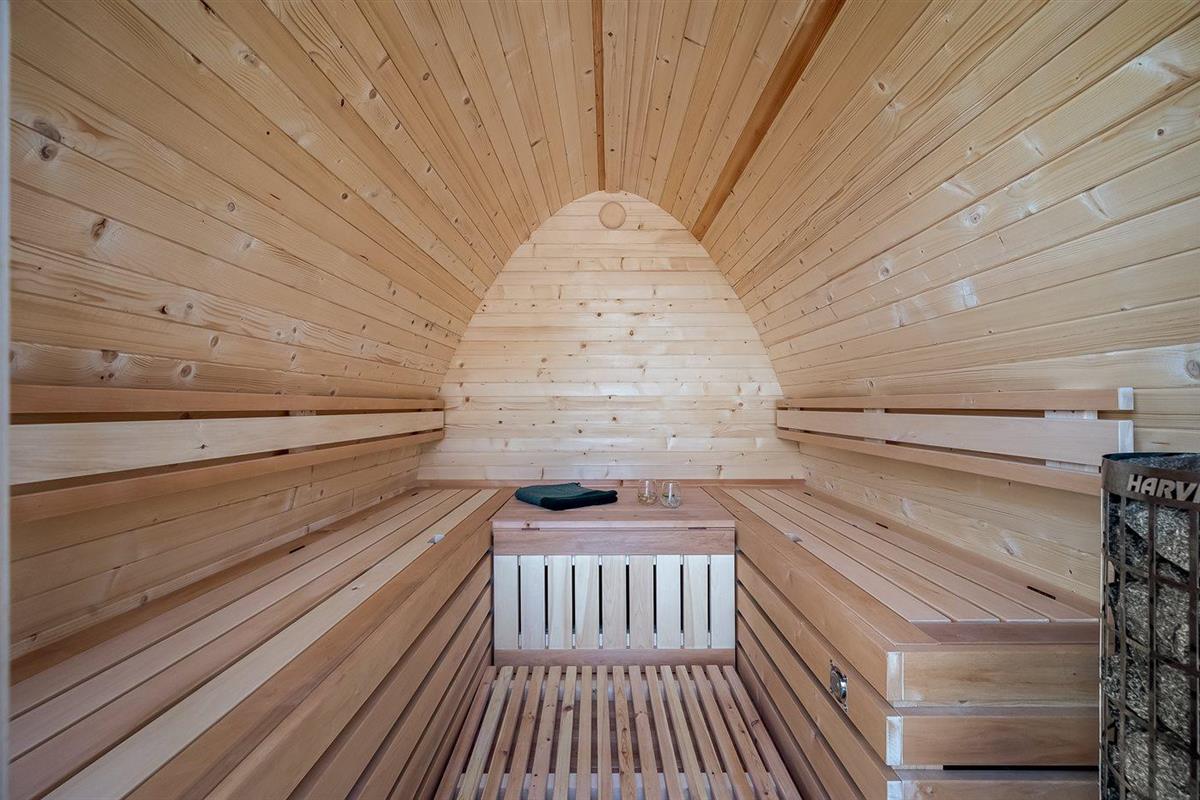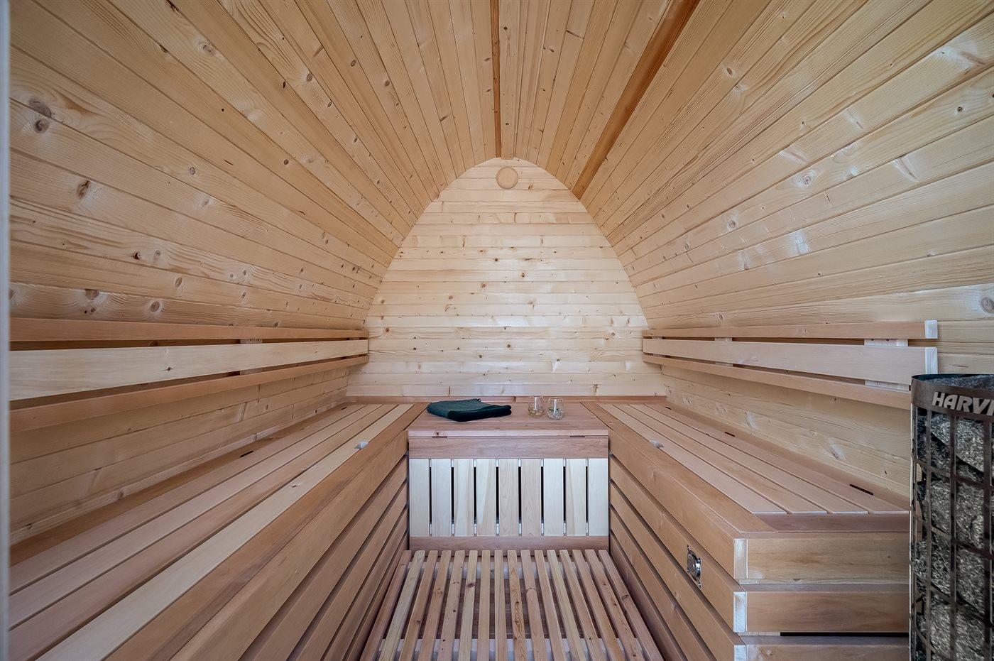 Het buitenbubbelbad (standwater) biedt ontspanning aan 6 personen.