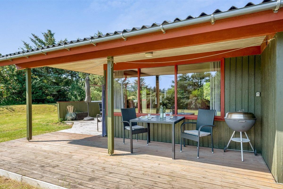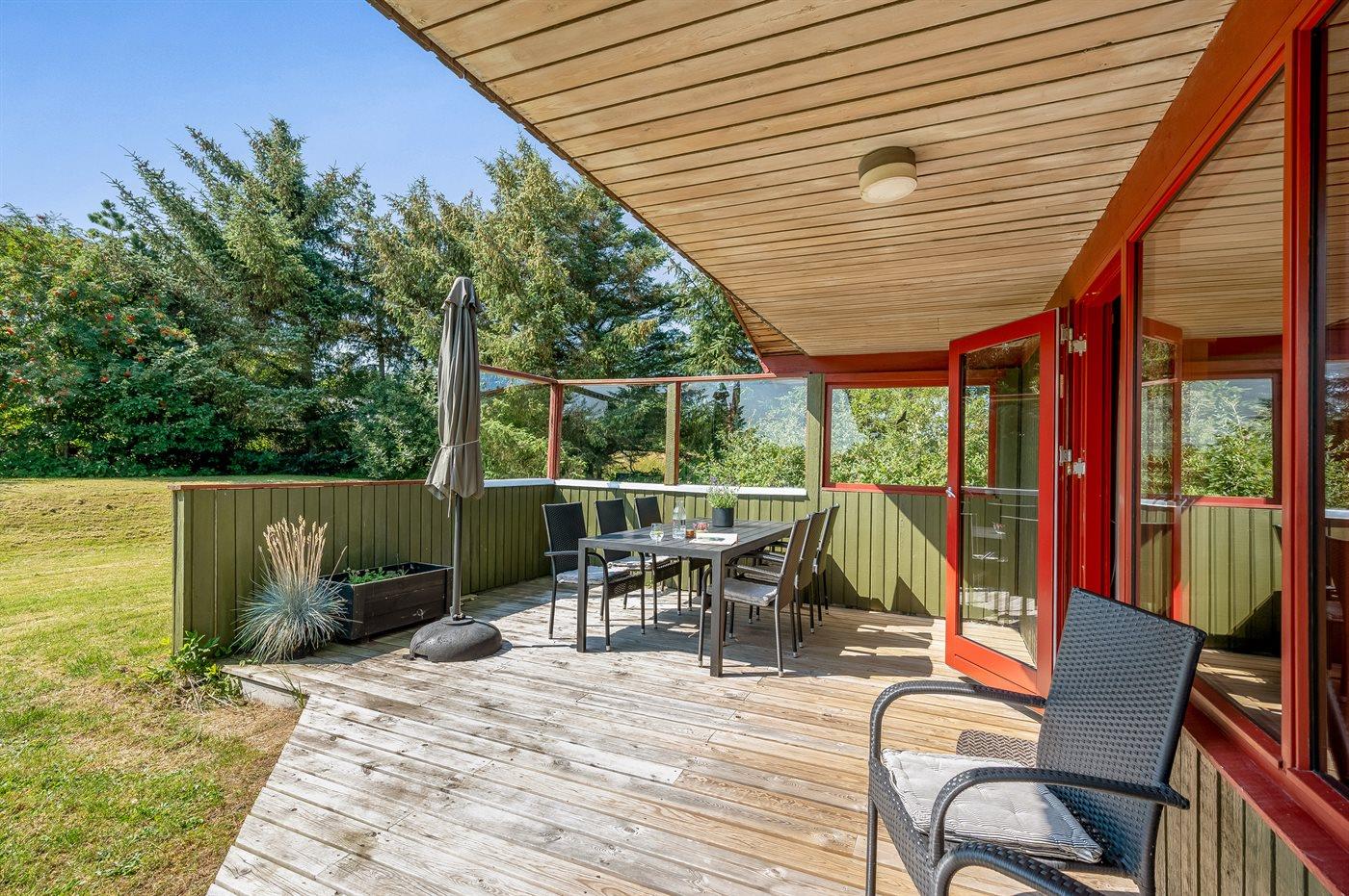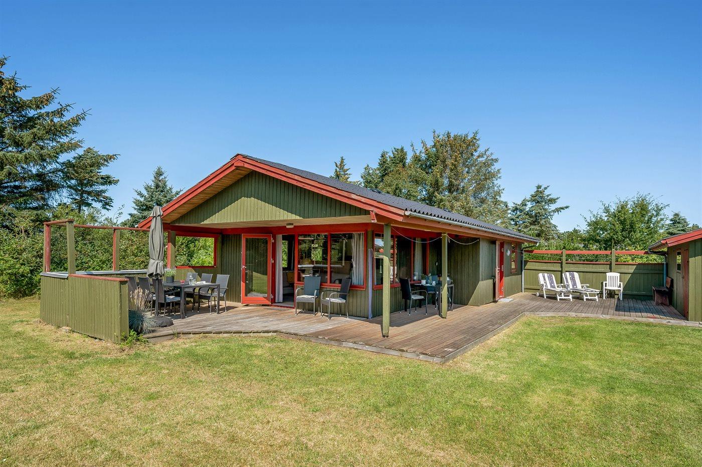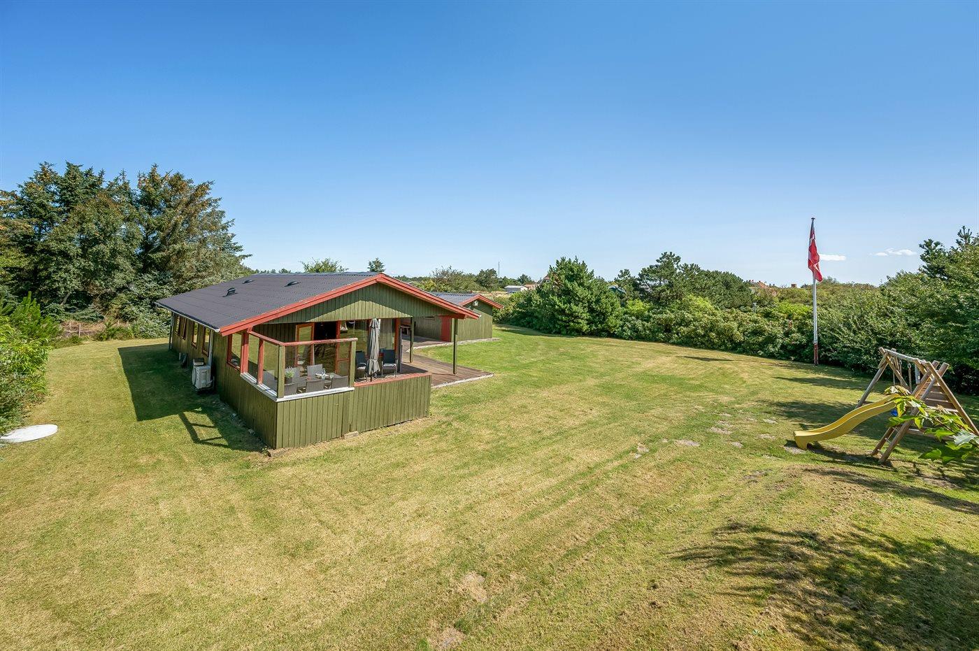 De vakantiewoning is gelegen op een 1200 m² groot natuural grond. Afstand tot de zee 900 m. Afstand tot de fjord 900 m. Dichtstbijzijnde winkel 300 m. Bij de vakantiewoning hoort terras. Daarnaast is er een overdekt terras. Gereedschapsruimte. Schommel. Speelhuisje. Glijbaan.Vuurplaats. Parkeerplaats bij het huis.