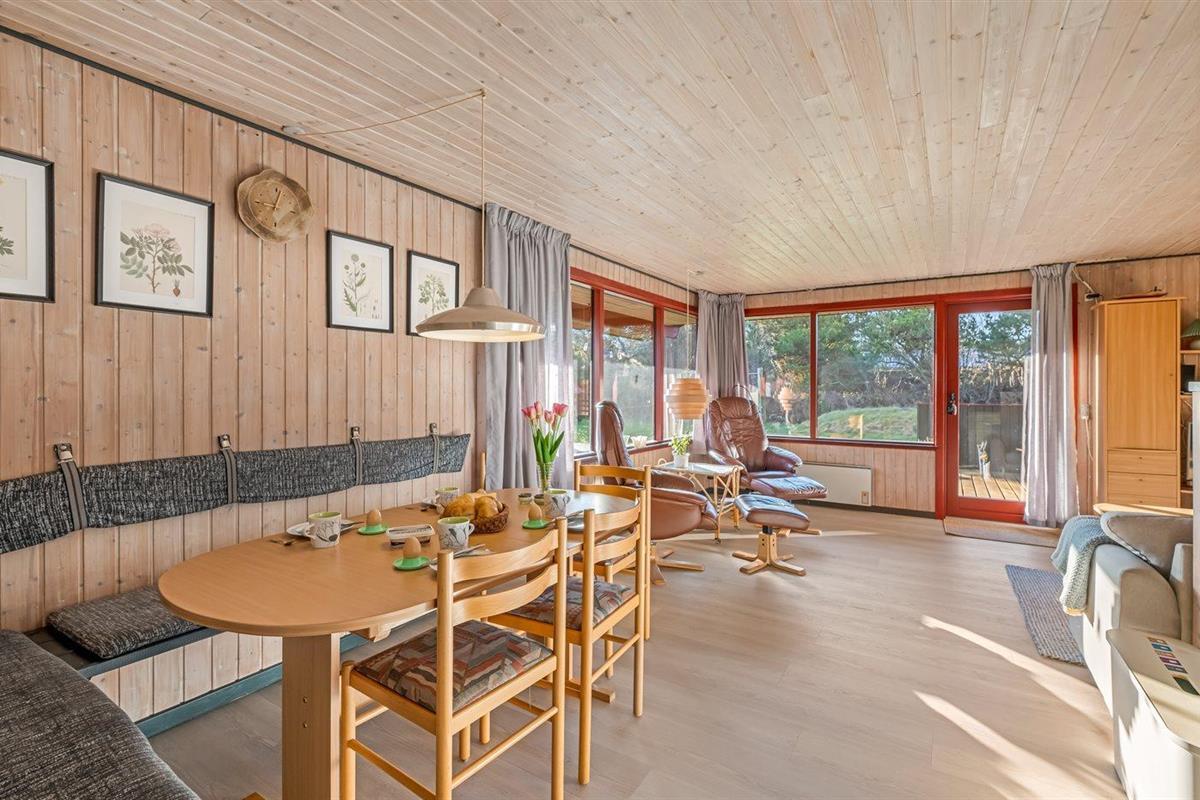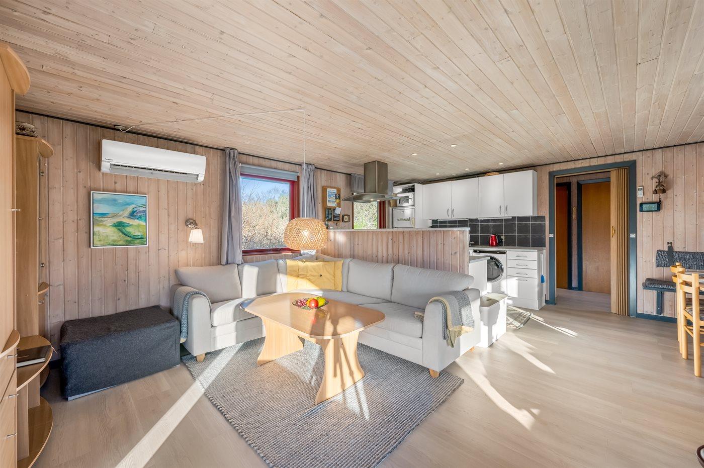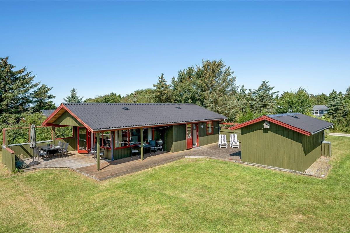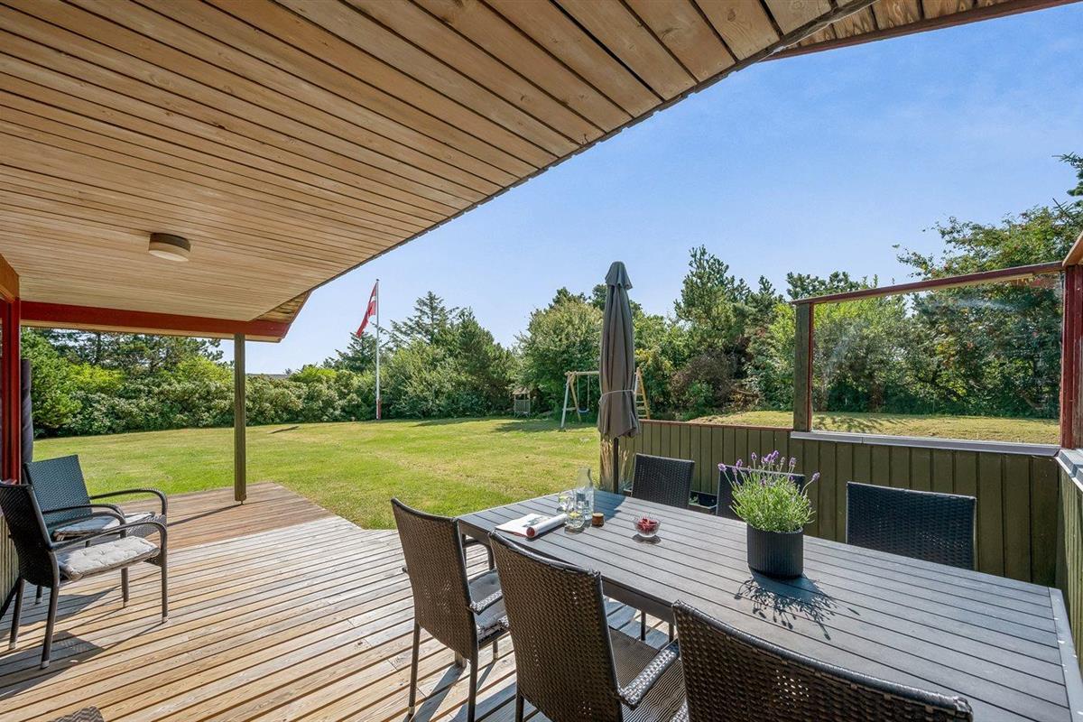 De vakantiewoning is gelegen op een 1200 m² groot natuural grond. Afstand tot de zee 900 m. Afstand tot de fjord 900 m. Dichtstbijzijnde winkel 300 m. Bij de vakantiewoning hoort terras. Daarnaast is er een overdekt terras. Gereedschapsruimte. Schommel. Speelhuisje. Glijbaan.Vuurplaats. Parkeerplaats bij het huis.