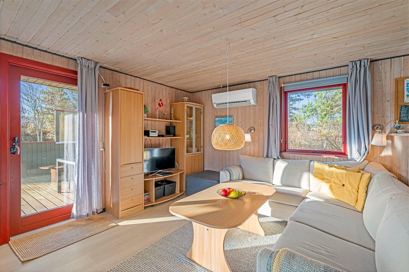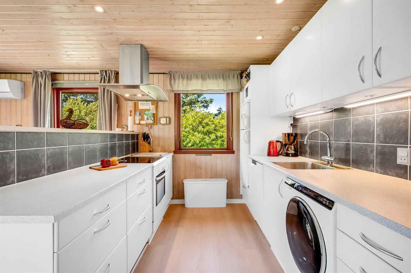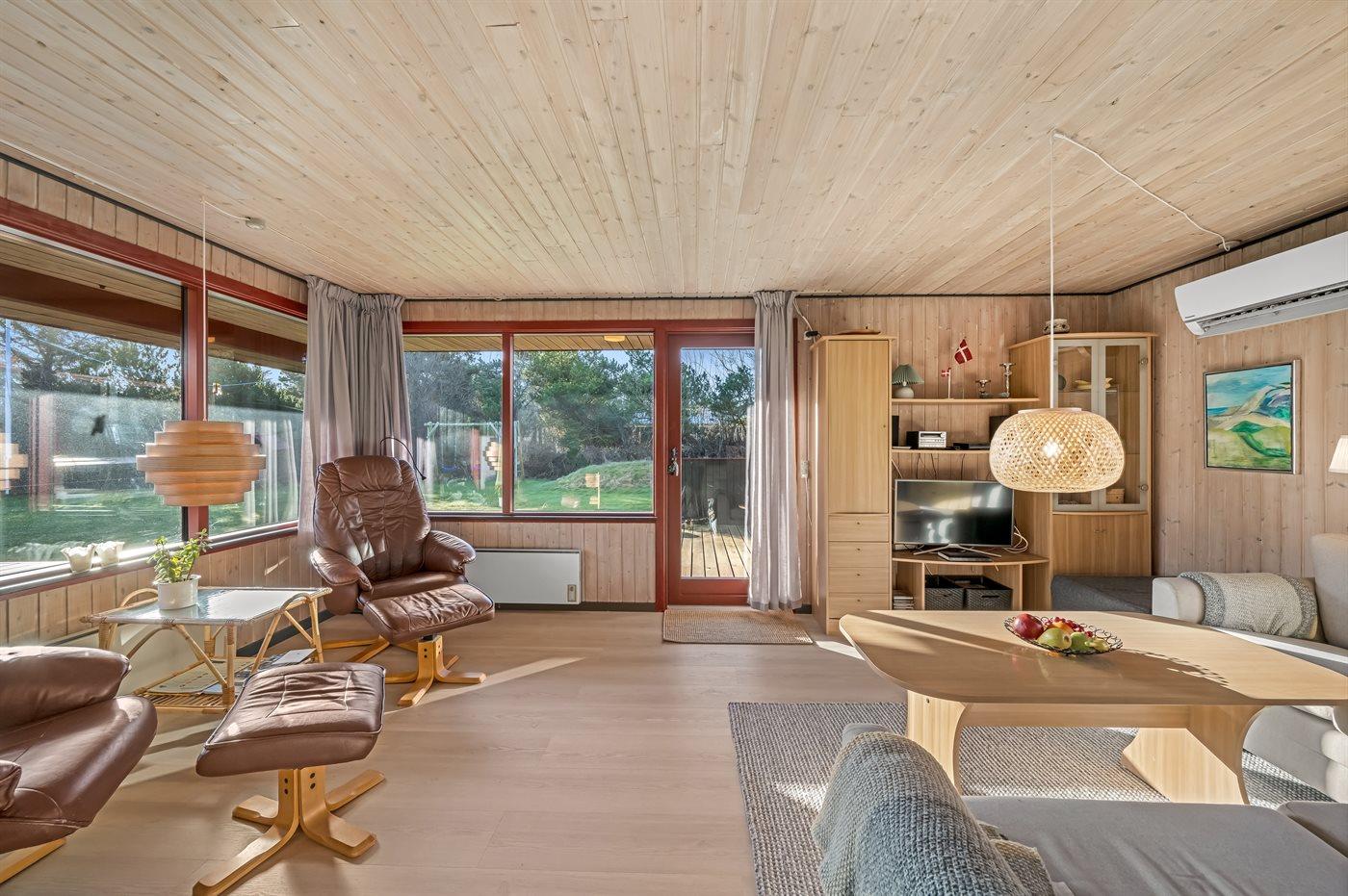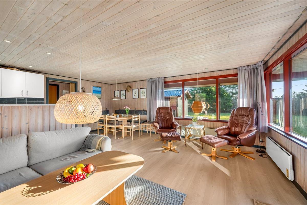 De vakantiewoning is gelegen op een 1200 m² groot natuural grond. Afstand tot de zee 900 m. Afstand tot de fjord 900 m. Dichtstbijzijnde winkel 300 m. Bij de vakantiewoning hoort terras. Daarnaast is er een overdekt terras. Gereedschapsruimte. Schommel. Speelhuisje. Glijbaan.Vuurplaats. Parkeerplaats bij het huis.