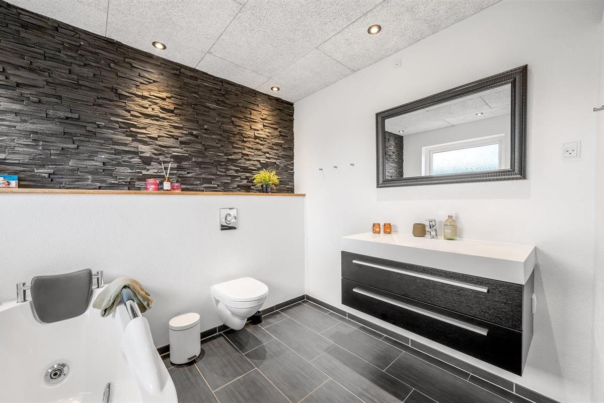Er is 2 badkamers met douchehok en 2 toiletten. Er is vloerverwarming in 2 van de badkamers.