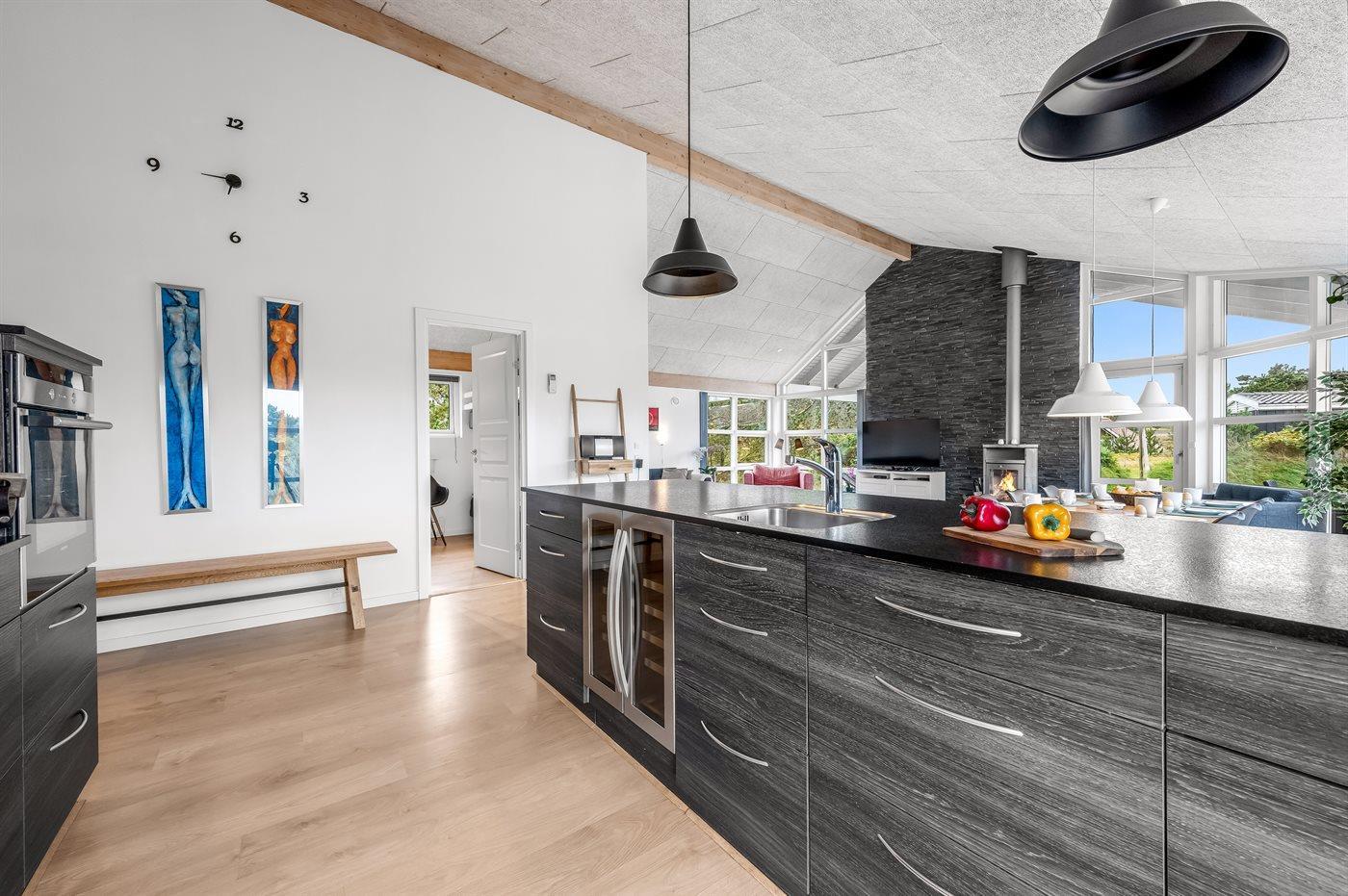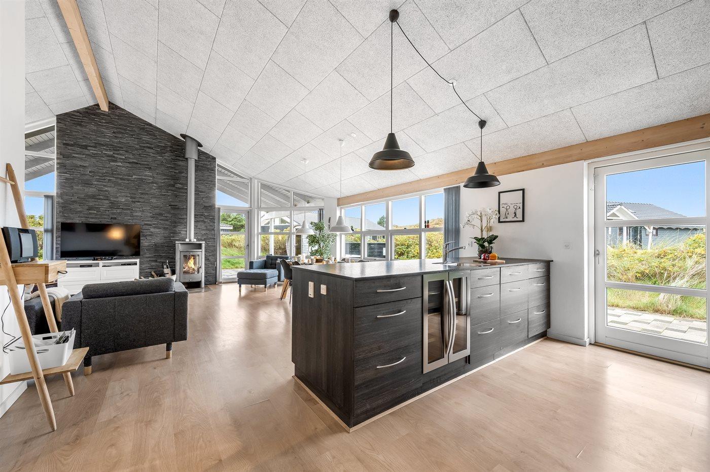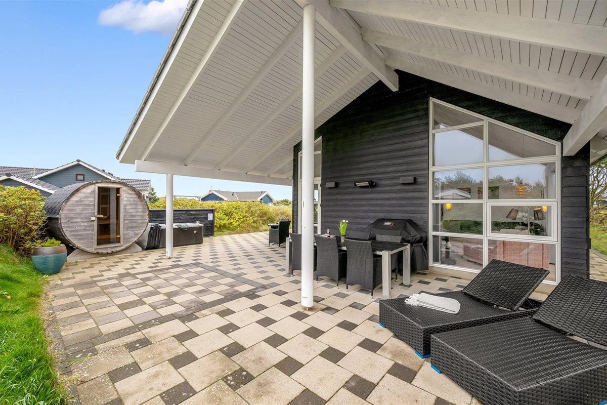 De vakantiewoning is gelegen op een 1203 m² groot natuural grond. Afstand tot de zee 750 m. Afstand tot de fjord 500 m. Dichtstbijzijnde winkel 850 m. Bij de vakantiewoning hoort terras. Daarnaast is er een overdekt terras. Gereedschapsruimte. Schommel. Zandbak. Afstand tot speelplaats 850 m. Buitensauna. Het huis heeft een stopcontact voor het opladen van een elektrische auto. Oplaadstekker type 2. Met 11 kW-laadvermogen. Parkeerplaats bij het huis.
