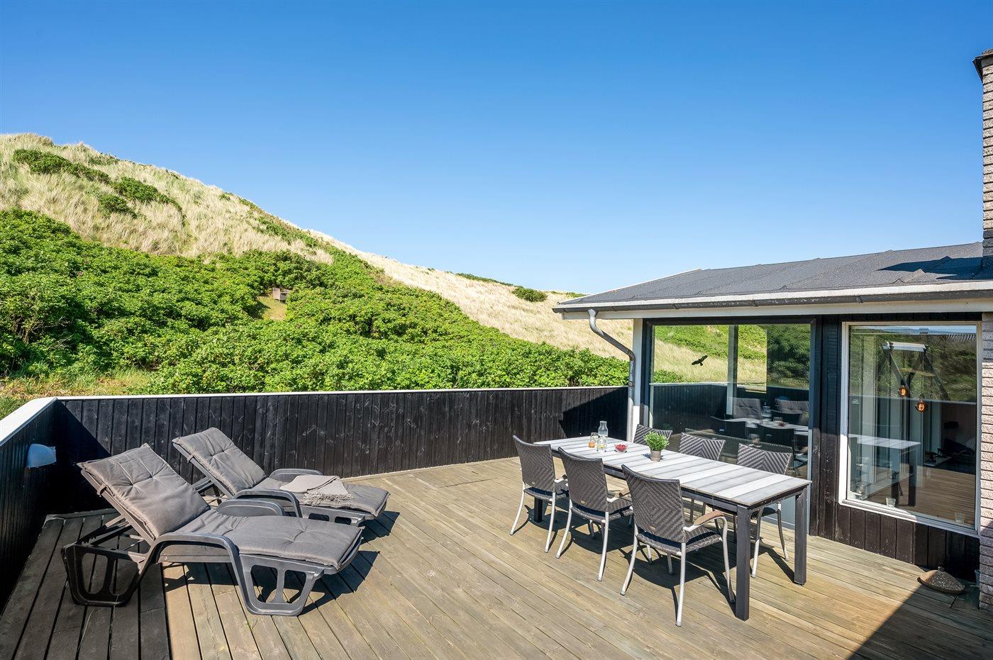 De vakantiewoning is gelegen op een 1208 m² groot Duingrond. Afstand tot de zee 50 m. Dichtstbijzijnde winkel 1300 m. Bij de vakantiewoning hoort terras. Daarnaast is er een overdekt terras. Schommel. Carport ter beschikking. Parkeerplaats bij het huis.