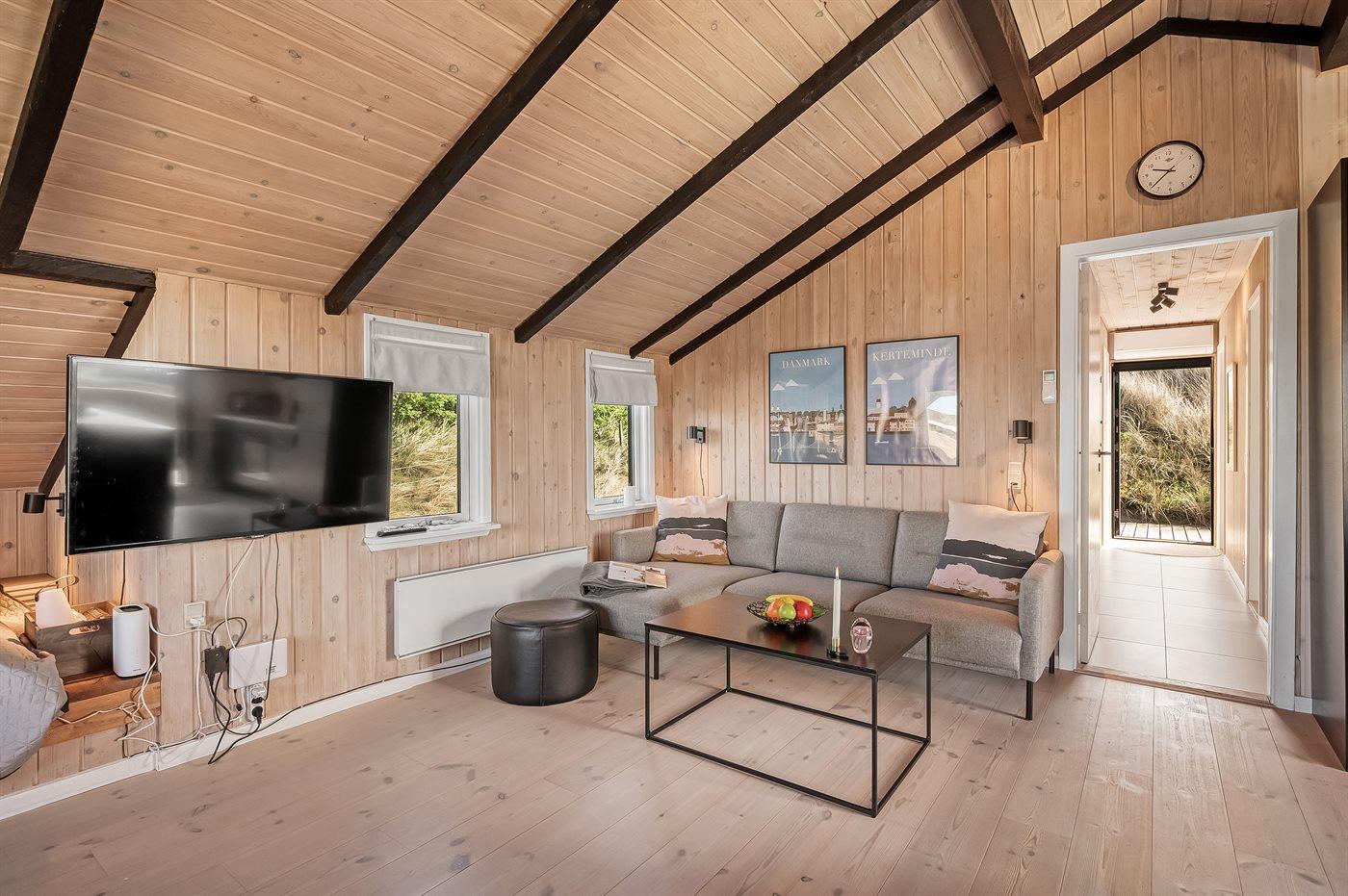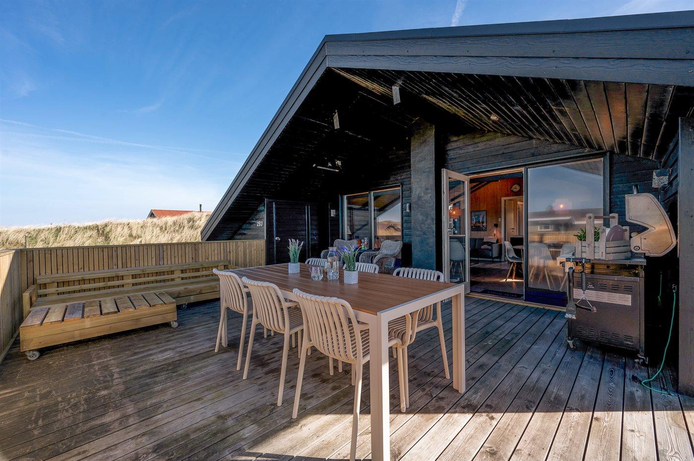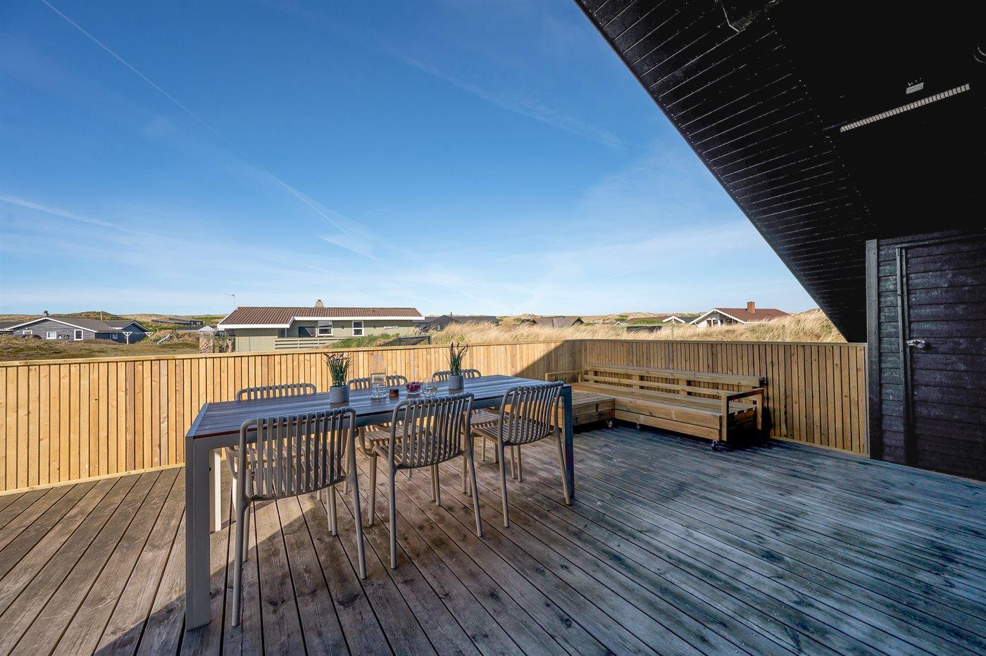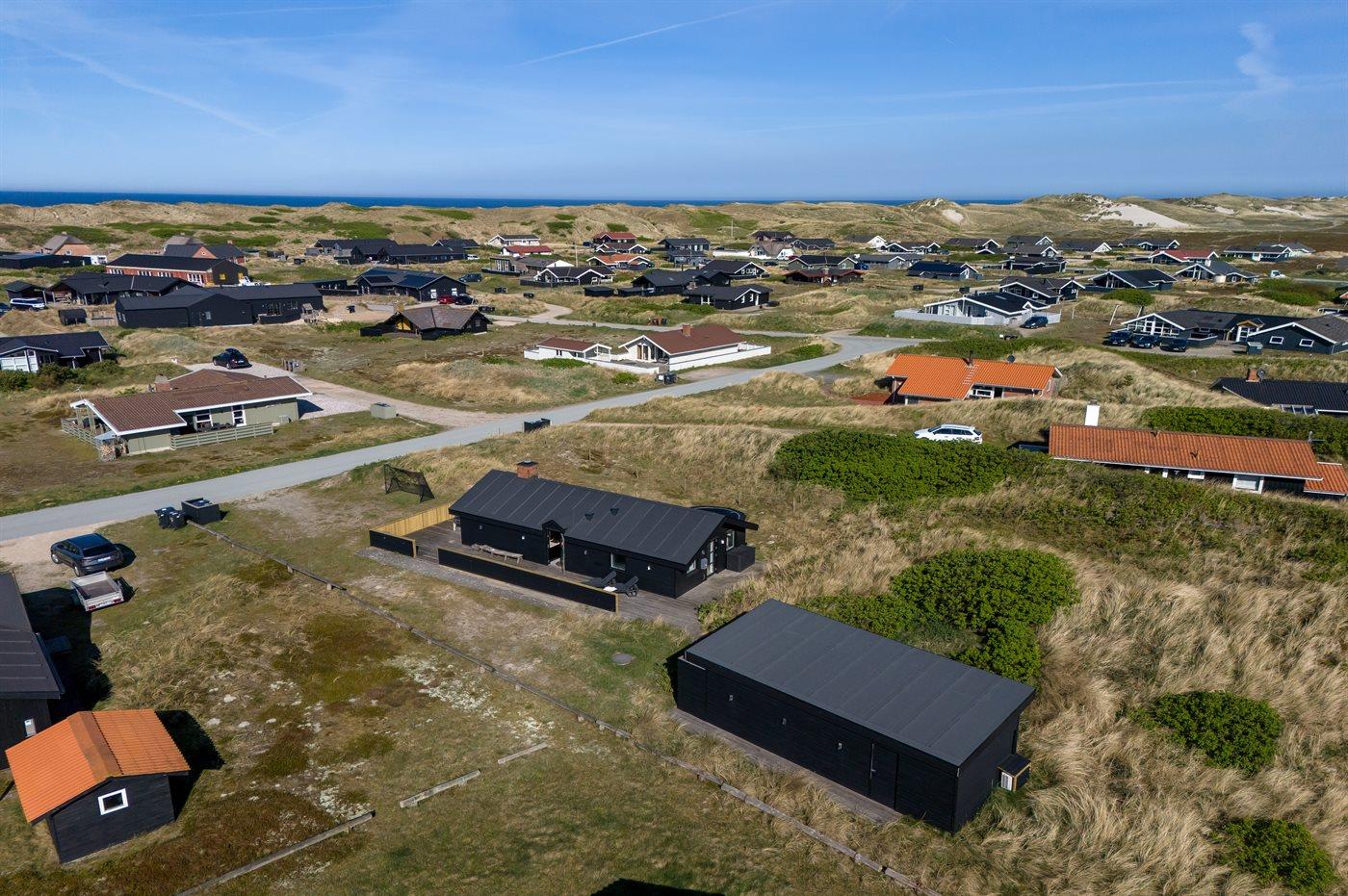 Modern vakantiehuis in Hvide Sande, dicht bij zee met luxe voorzieningen en ruime tuin.