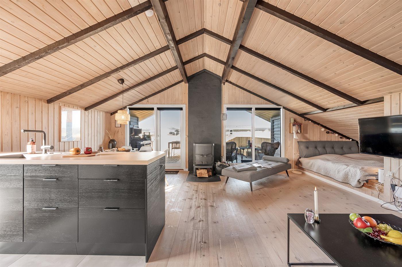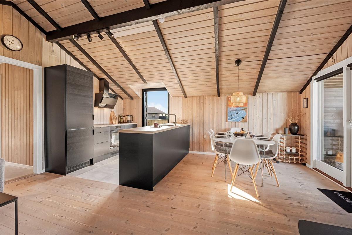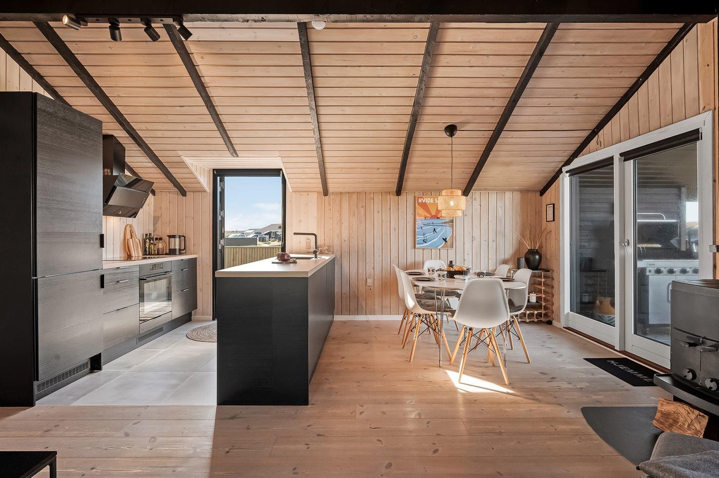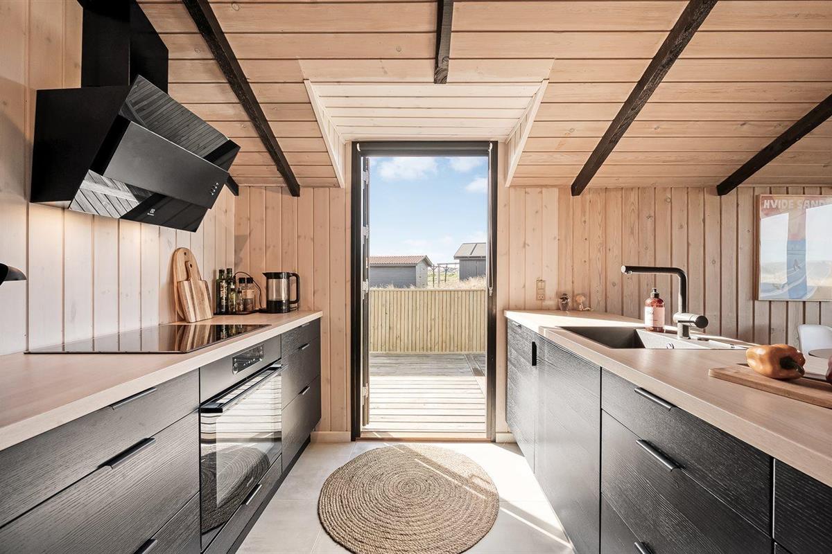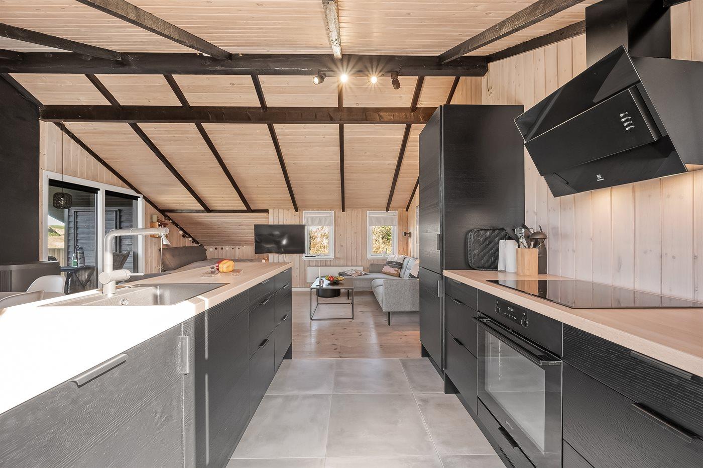 De keuken is uitgerust met koelkast Er is 4 inductiekookplaten, heteluchtoven en vaatwasser.