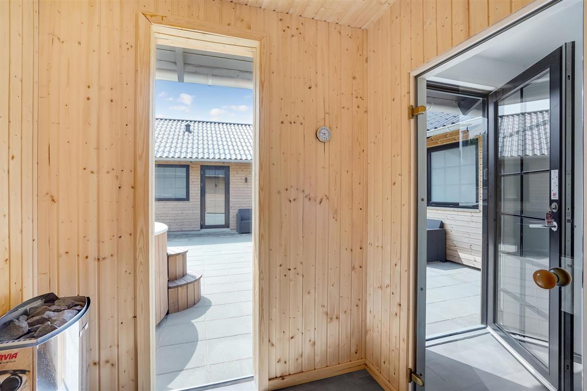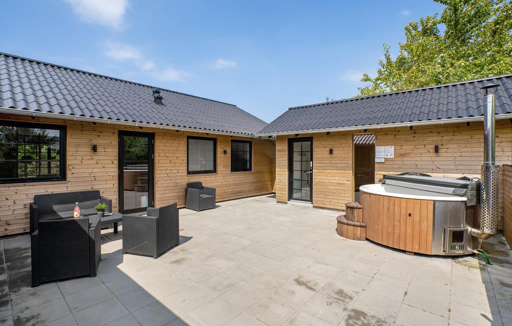 De terrassen in de tuin nodigen uit tot ontspanning. Hier staan ook een Fins houten bad, de sauna en een buitendouche tot uw beschikking.