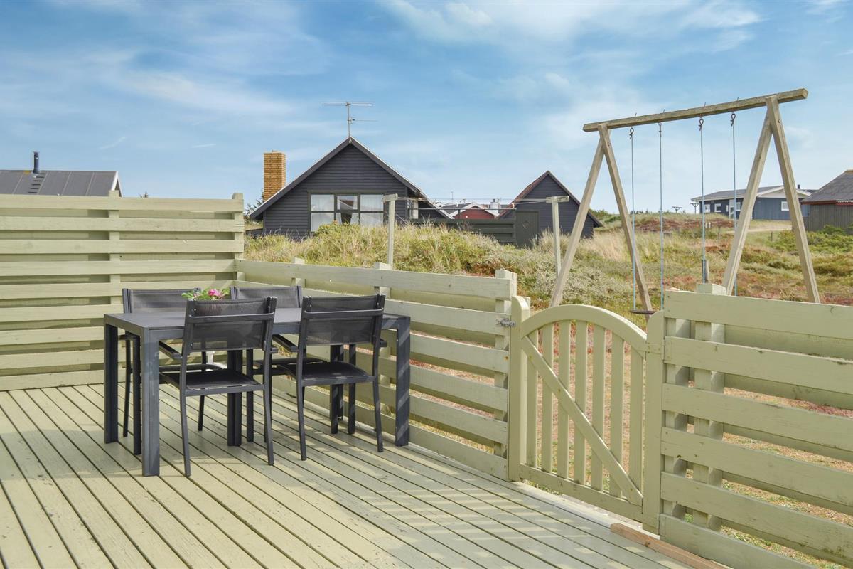 Een traditioneel Deens vakantiehuis dat u uitnodigt voor een mooie vakantie aan de Noordzee. Het ligt op een groot natuurgrondstuk in het populaire vakantiegebied Bjerregård, op slechts 300 van het strand. Familieleden met vier poten zijn hier welkom, maximaal twee huisdieren zijn toegestaan. Kinderen kunnen genieten van de schommel en zandbak, en volwassenen kunnen ontspannen op de ligstoelen.
