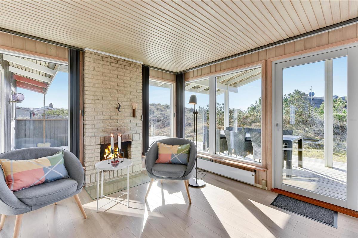 In het huis zijn de keuken, woonkamer en eetkamer direct met elkaar verbonden. De open haard in de woonkamer is de kers op de taart voor een gezellige sfeer om een mooie dag af te sluiten.